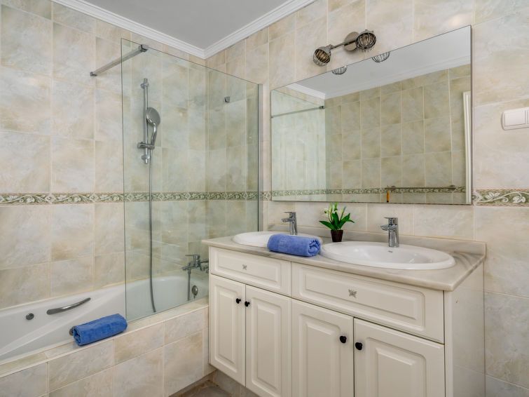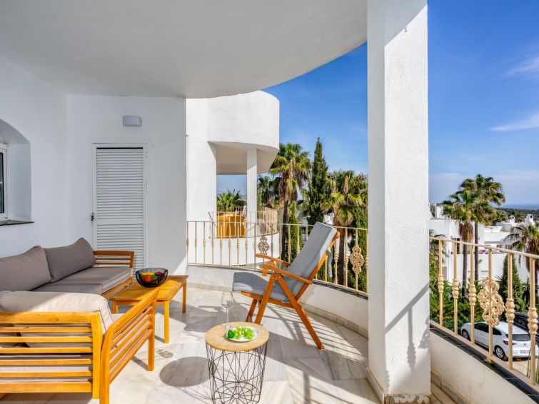 "Las Brisas Estepona Golf", 3-room apartment 139 m2, on the upper floor, south-west facing position. Object suitable for 4 adults. Bright, very practical furnishings: living/dining room with digital TV, air conditioning and forced-air heating. Exit to the terrace. 1 room with 2 beds (90 cm, length 190 cm), bath/shower/bidet/WC and double hand-basin (private) electric heating.
