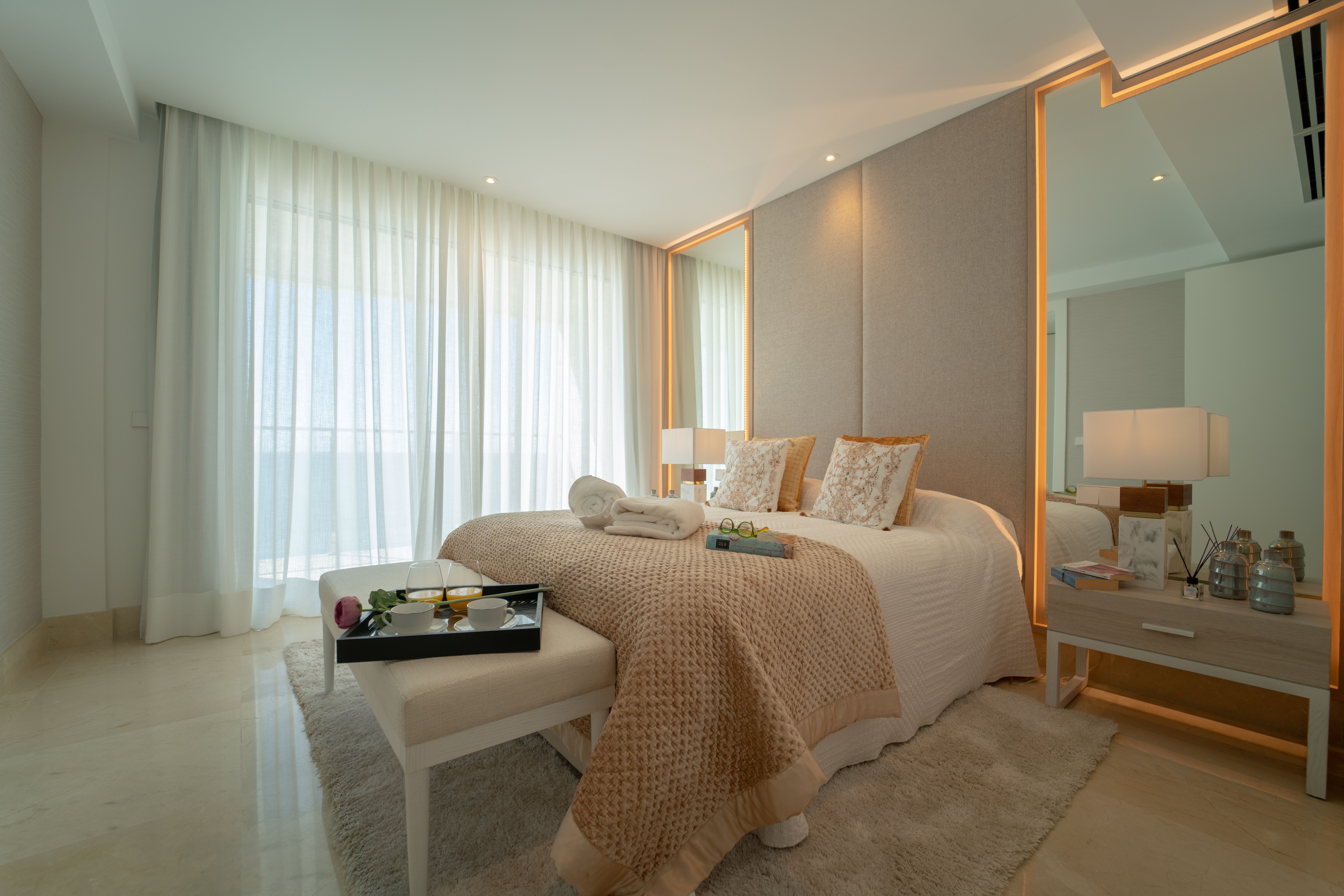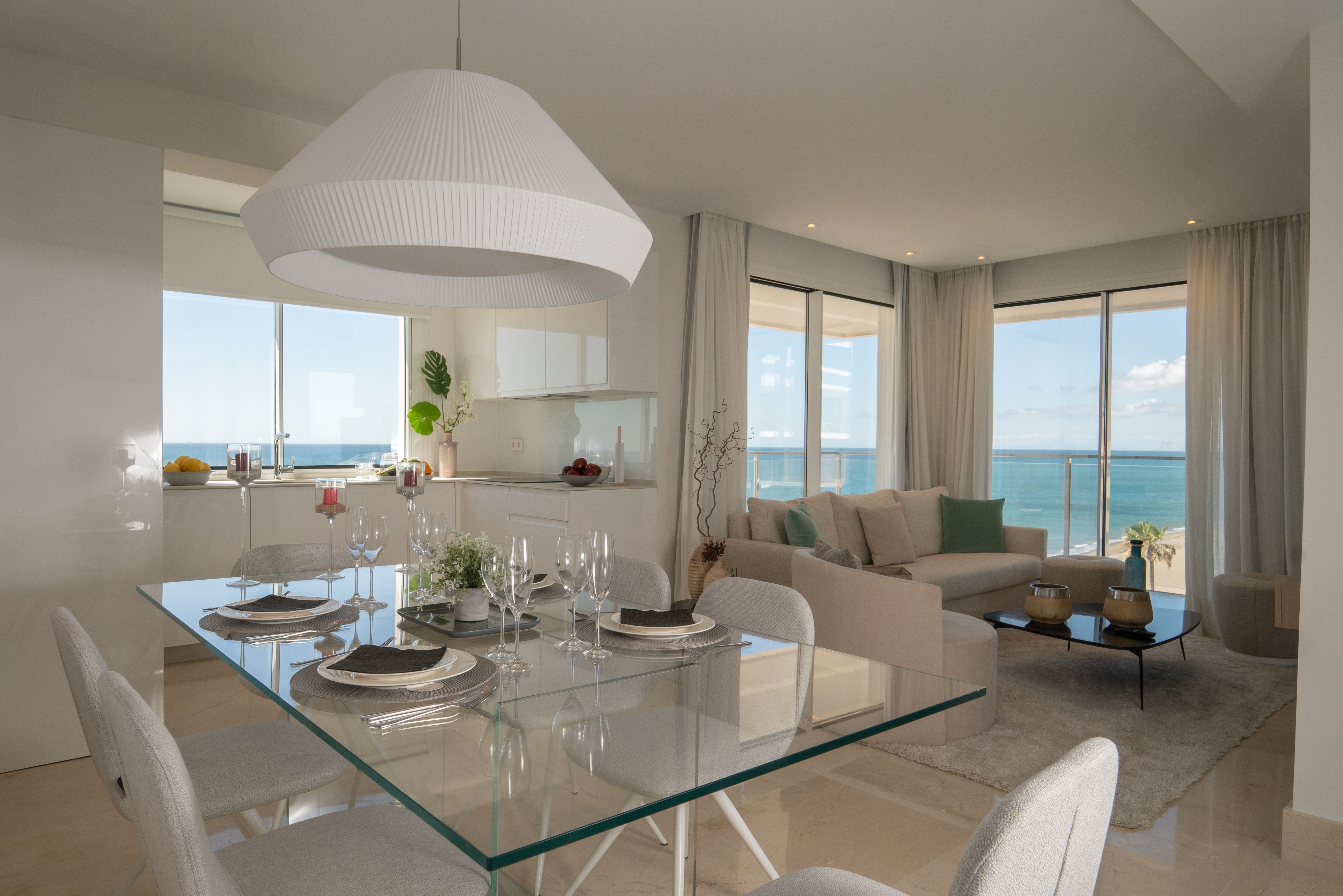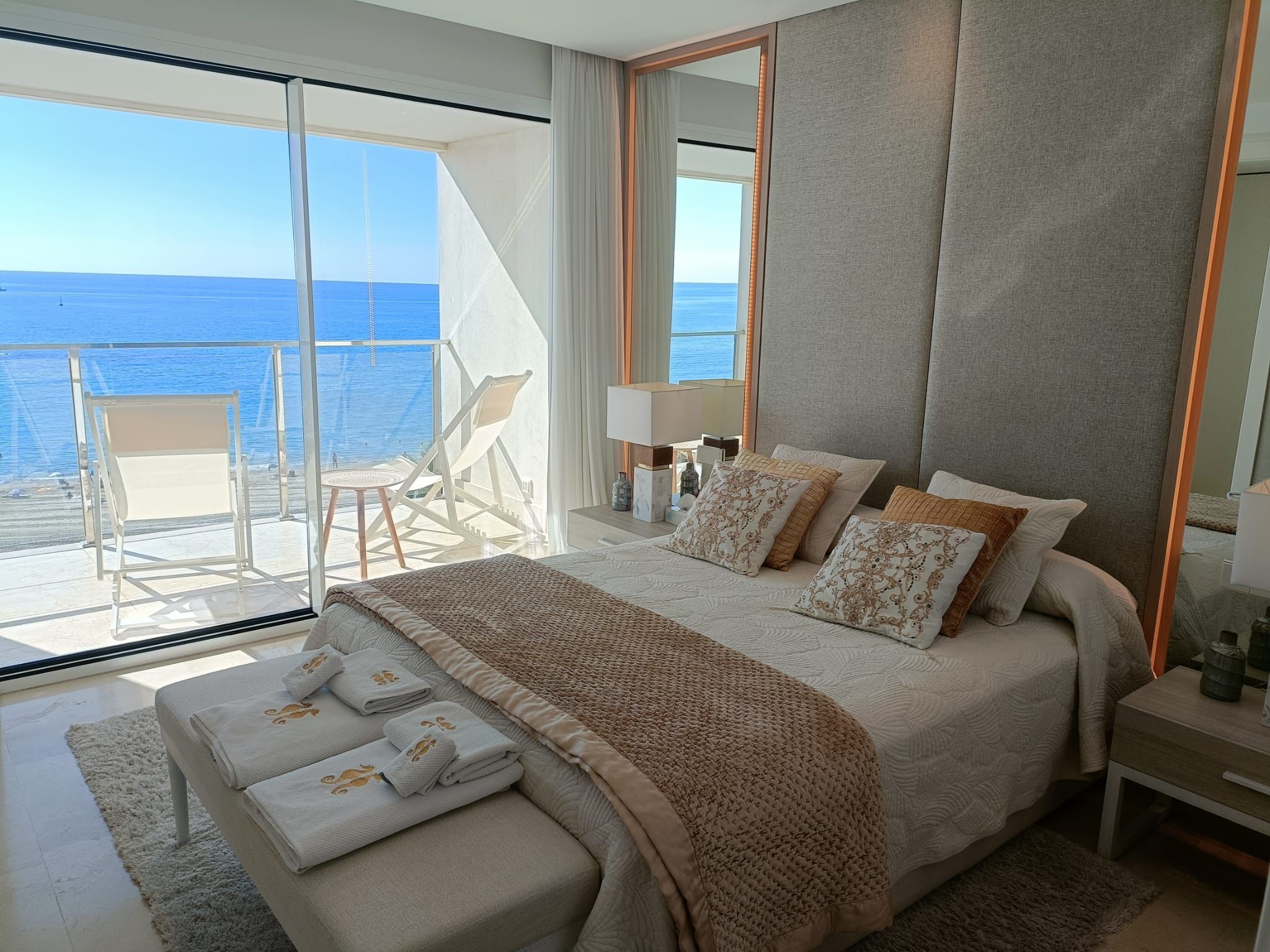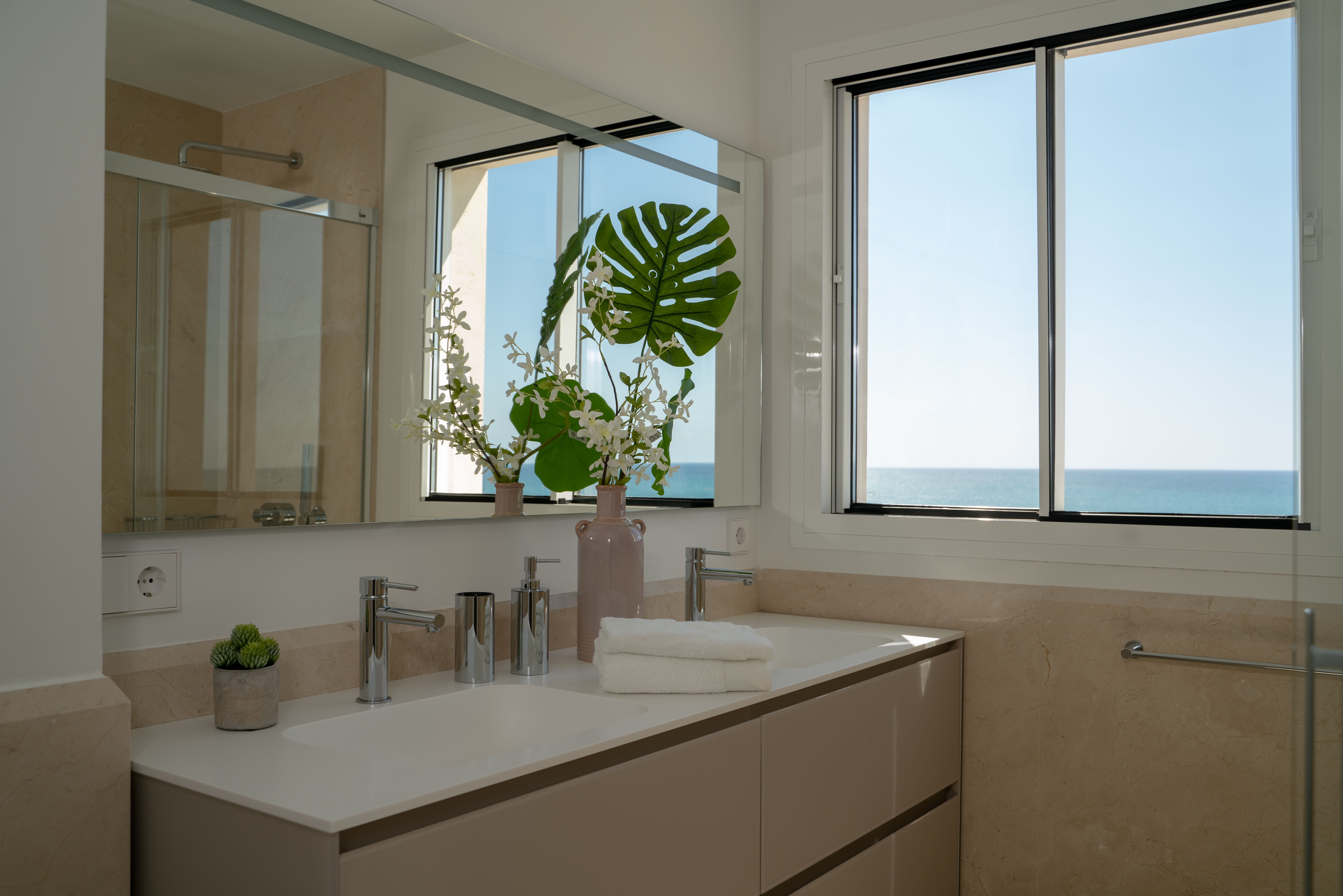 Sun, sea, and sand are the name of the game here. This attractive apartment is on the promenade of Estepona’s La Rada beach, facing the Mediterranean Sea and out to the Strait of Gibraltar. It’s in downtown Estepona, close to beach bars, boutiques, and museums, with all the sights of the town within walking distance. The apartment is modern and oh-so-stylish, having been furnished by a prestigious interior designer. Sea views dominate thanks to floor-to-ceiling windows and sliding doors leading to the balcony, but there’s plenty of interesting art to admire too.