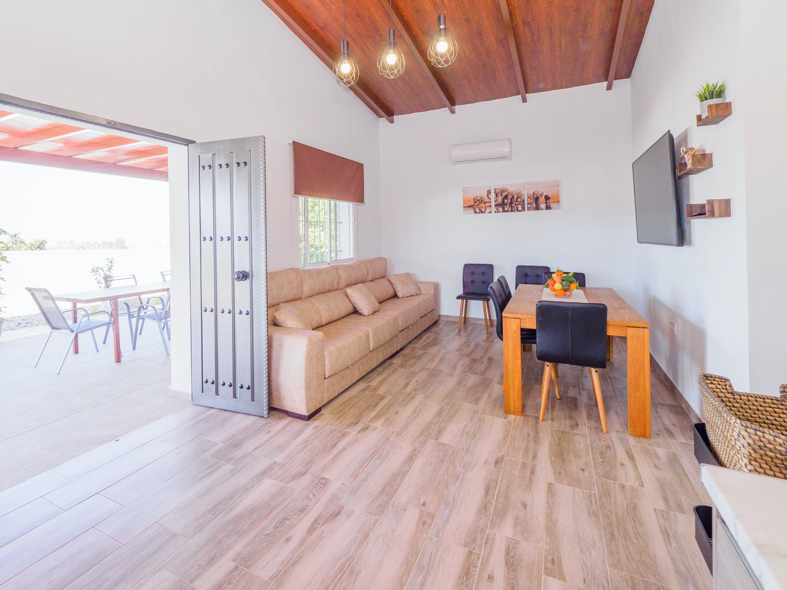 Surrounded by countryside, this villa is the ideal place for a family to enjoy some downtime in the Spanish sunshine. Cártama is the closest town, less than 6 kilometres away, and Malaga is reached in around thirty minutes by car. The interior style won’t be everyone’s cup of tea, and there are racks for hanging clothes rather than wardrobes in the bedrooms. But with a private pool and a dining terrace at your disposal, we think you’ll spend most of your time outside anyway.