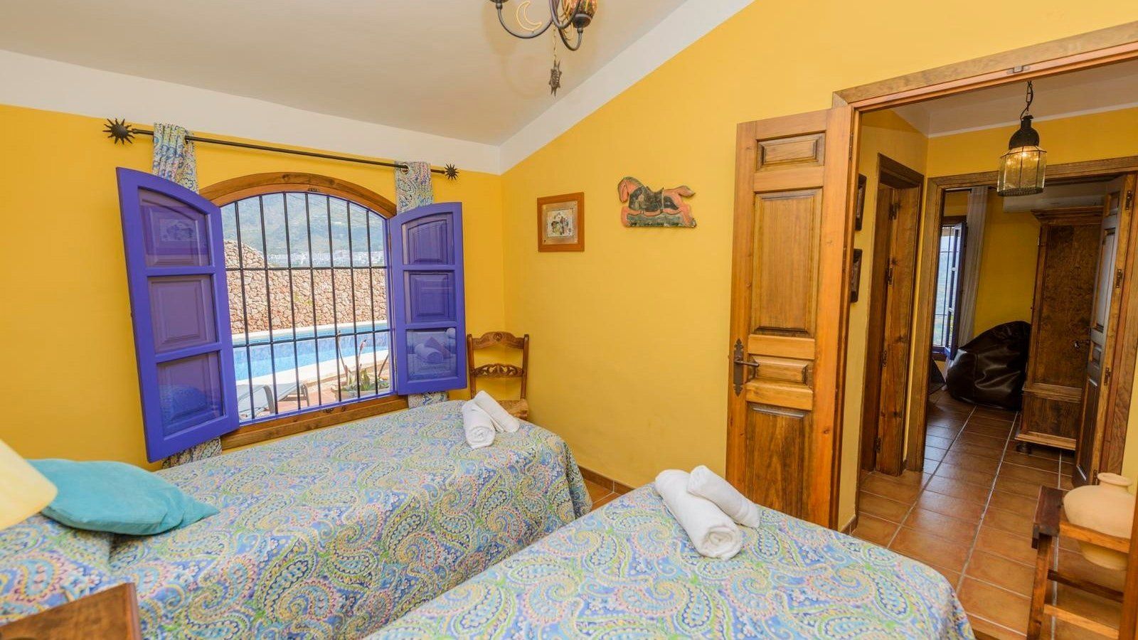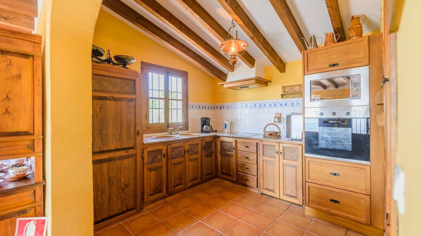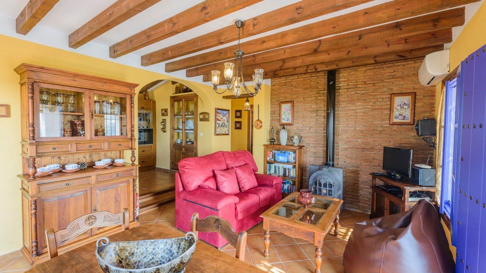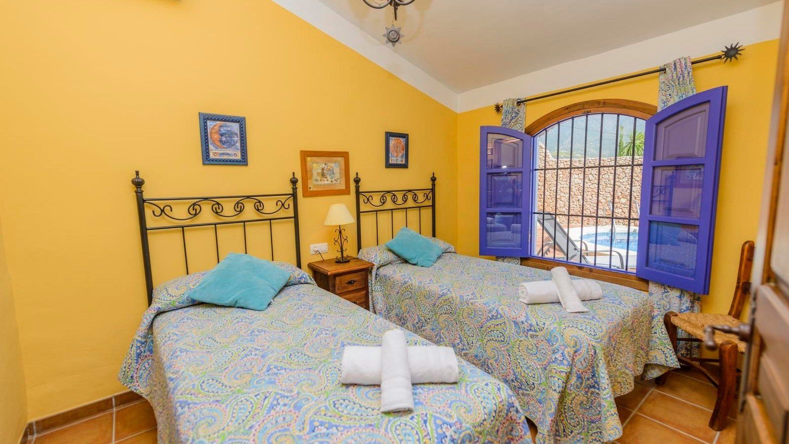 At this villa, we imagine you'll be taking refreshing soaks in your plunge pool and enjoying barbecue picnics on the lawn. The white pillars of your balcony will frame sunsets like a postcard, just don't forget to sip some Sangria as you snap a few photos of the scenery. Inside, you'll be greeted by canary-coloured walls and wood beams in a traditional living space. If you're staying in the winter months, what could be better than snuggling up around the fireplace on a chilly night after stargazing?