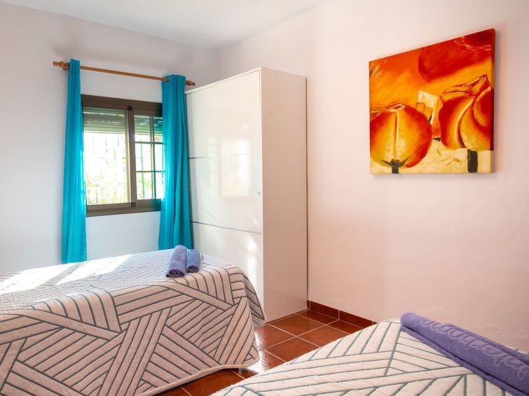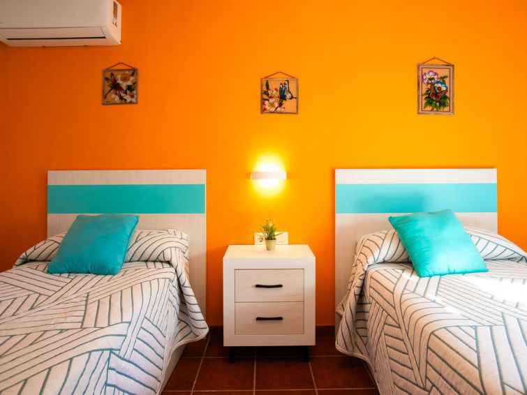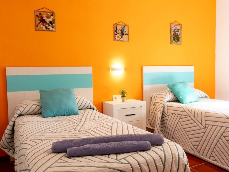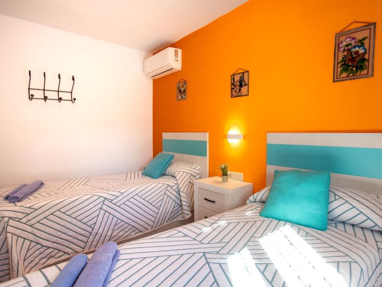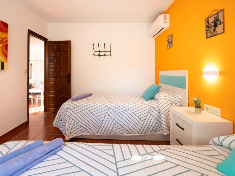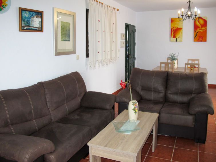 "La Era", 3-room bungalow 80 m2. Comfortable and cosy furnishings: living/dining room with open-hearth fireplace, dining table, satellite TV and CD-player. Exit to the terrace. 1 room with 1 french bed (150 cm, length 200 cm), air conditioning and forced-air heating. 1 room with 2 beds (90 cm, length 190 cm), air conditioning and forced-air heating.