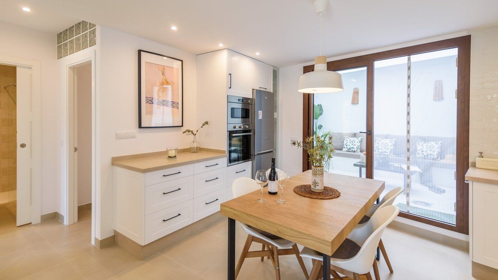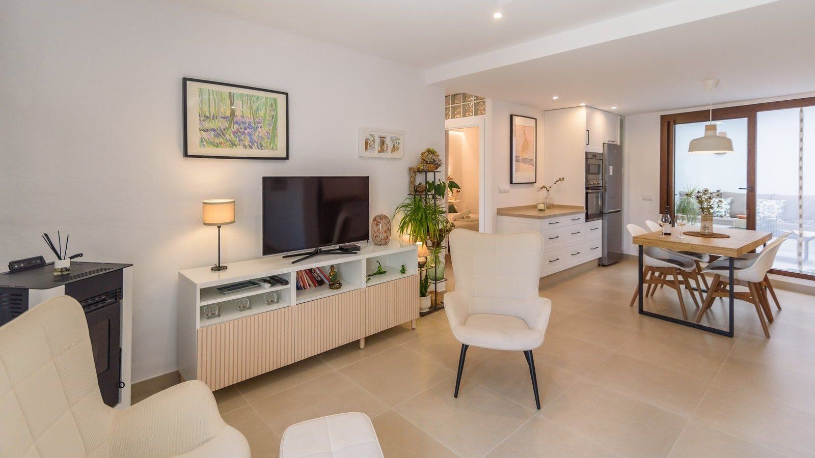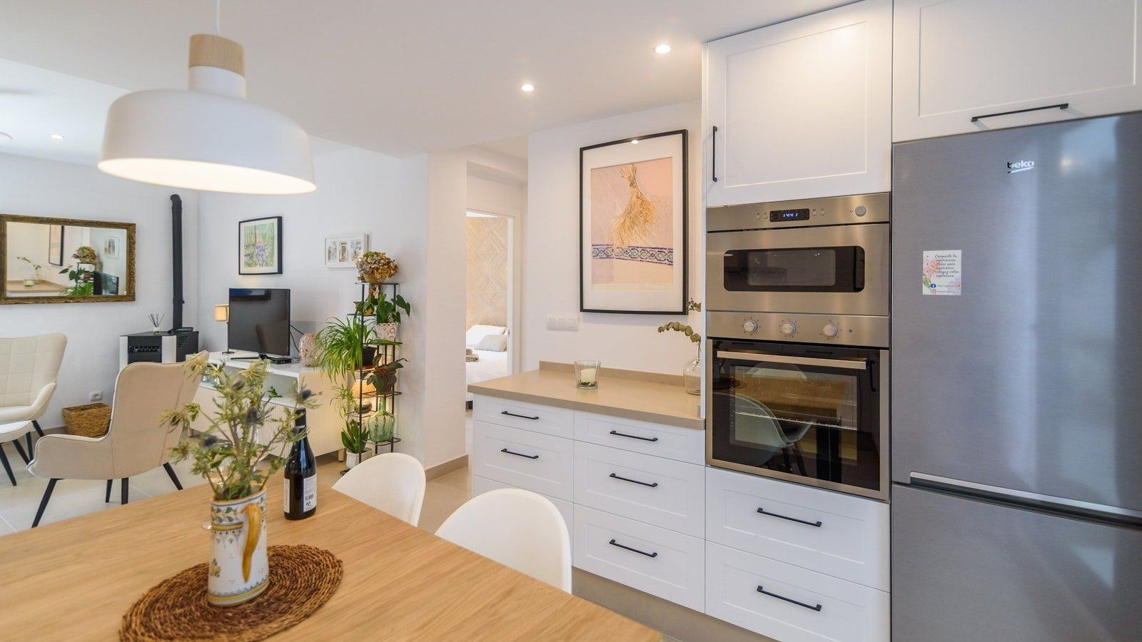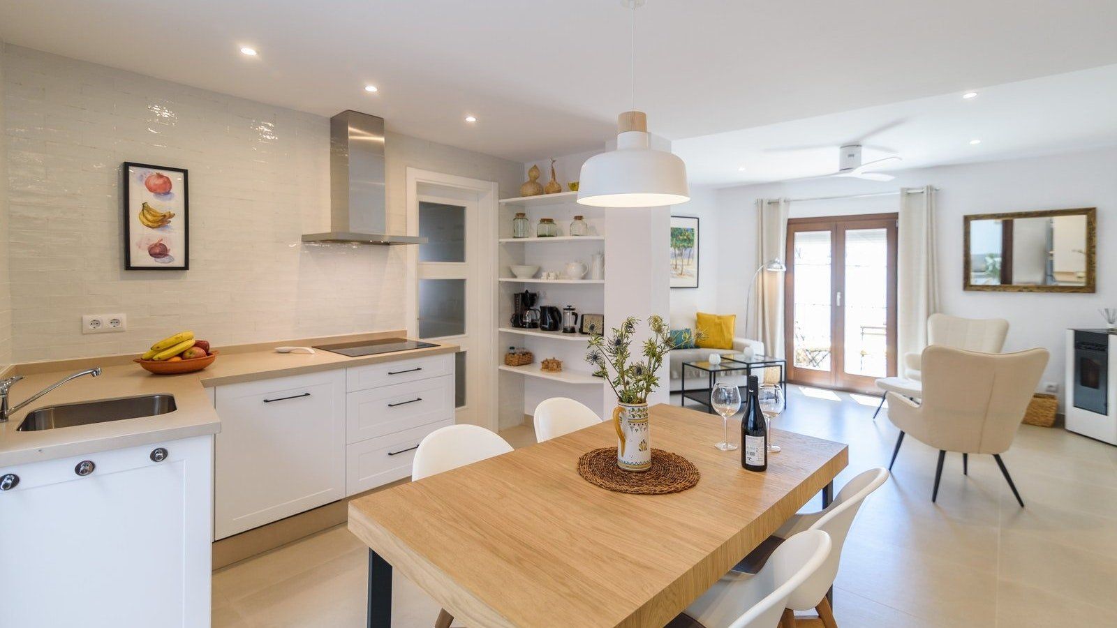 If ever there was a home to welcome you in with bucketloads of charm, this is it. Nestled in the quiet streets of Frigiliana, you’ll feel relaxation wash over you from the moment you step inside and set your suitcase down. The atmosphere created is one of tranquillity, with whites, light wood, green and ochre running throughout every space. We love the interior patio here – such a unique feature where it’s easy to imagine many hours spent with a good book and a glass of wine in this little piece of paradise. With a quaint kitchen packed with everything you could need to rustle up a homemade feast, you can cook a delicious dinner and gather around the table with your loved ones to enjoy good food and quiet conversation.