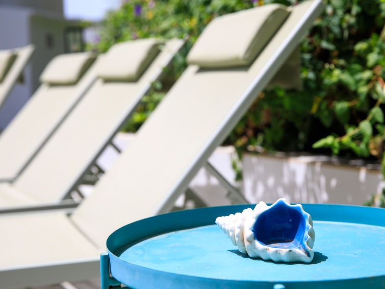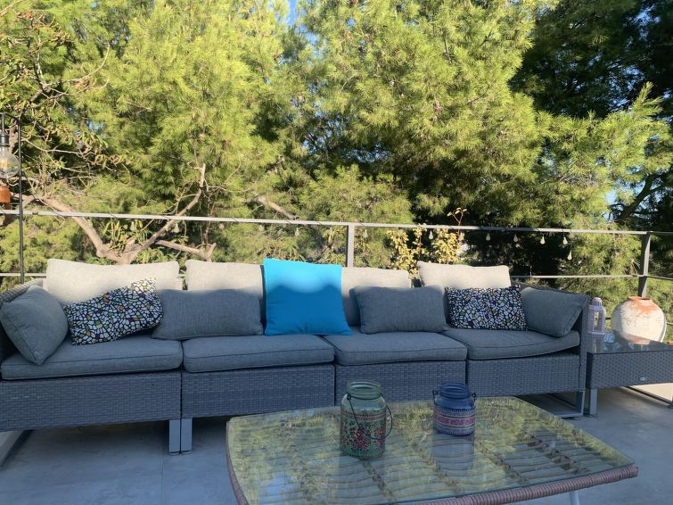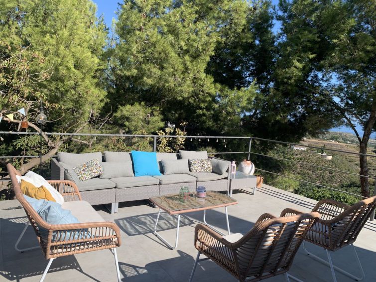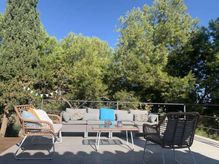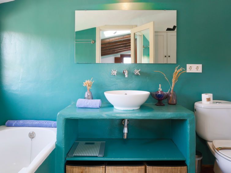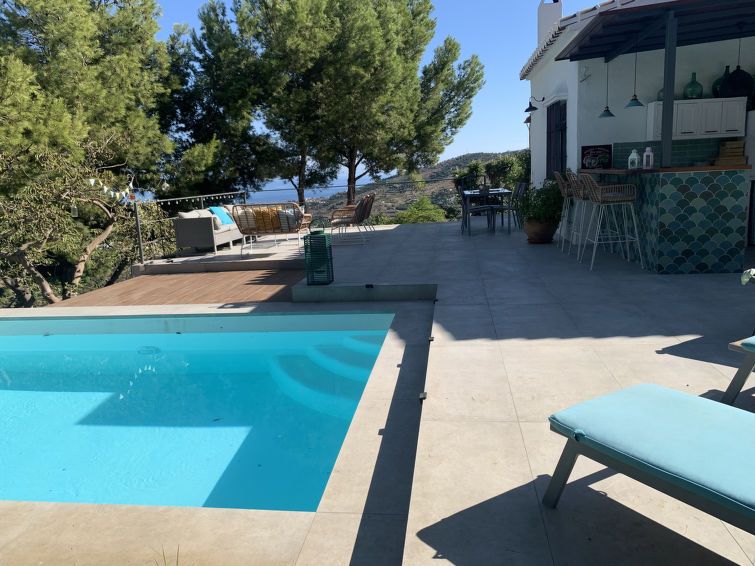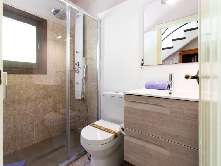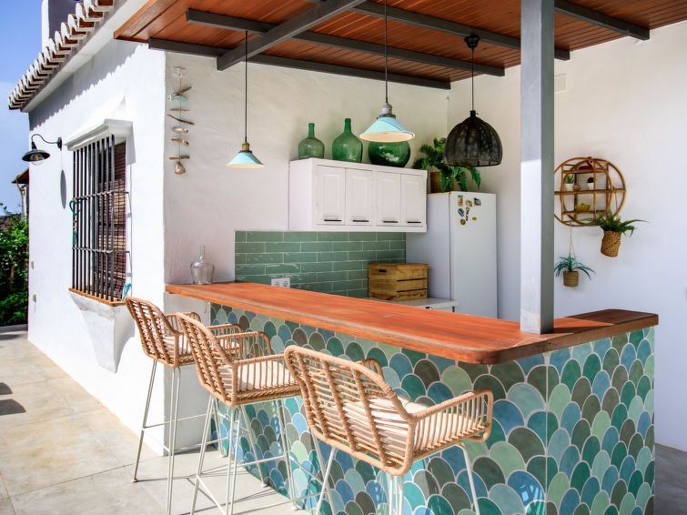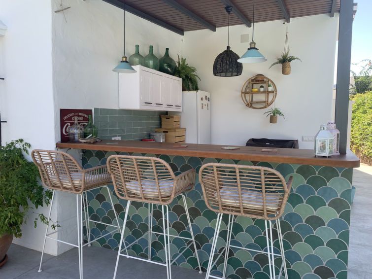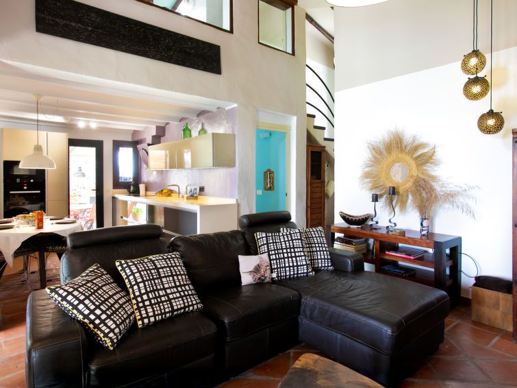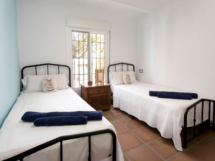 "Villa Mar y Luna", 3-room cottage 85 m2 on 2 levels. Spacious and bright, comfortable and beautiful furnishings: living/dining room with dining table, TV, air conditioning and forced-air heating. Exit to the garden, to the terrace. 1 room with 2 beds (90 cm, length 190 cm), fan with shower/WC.