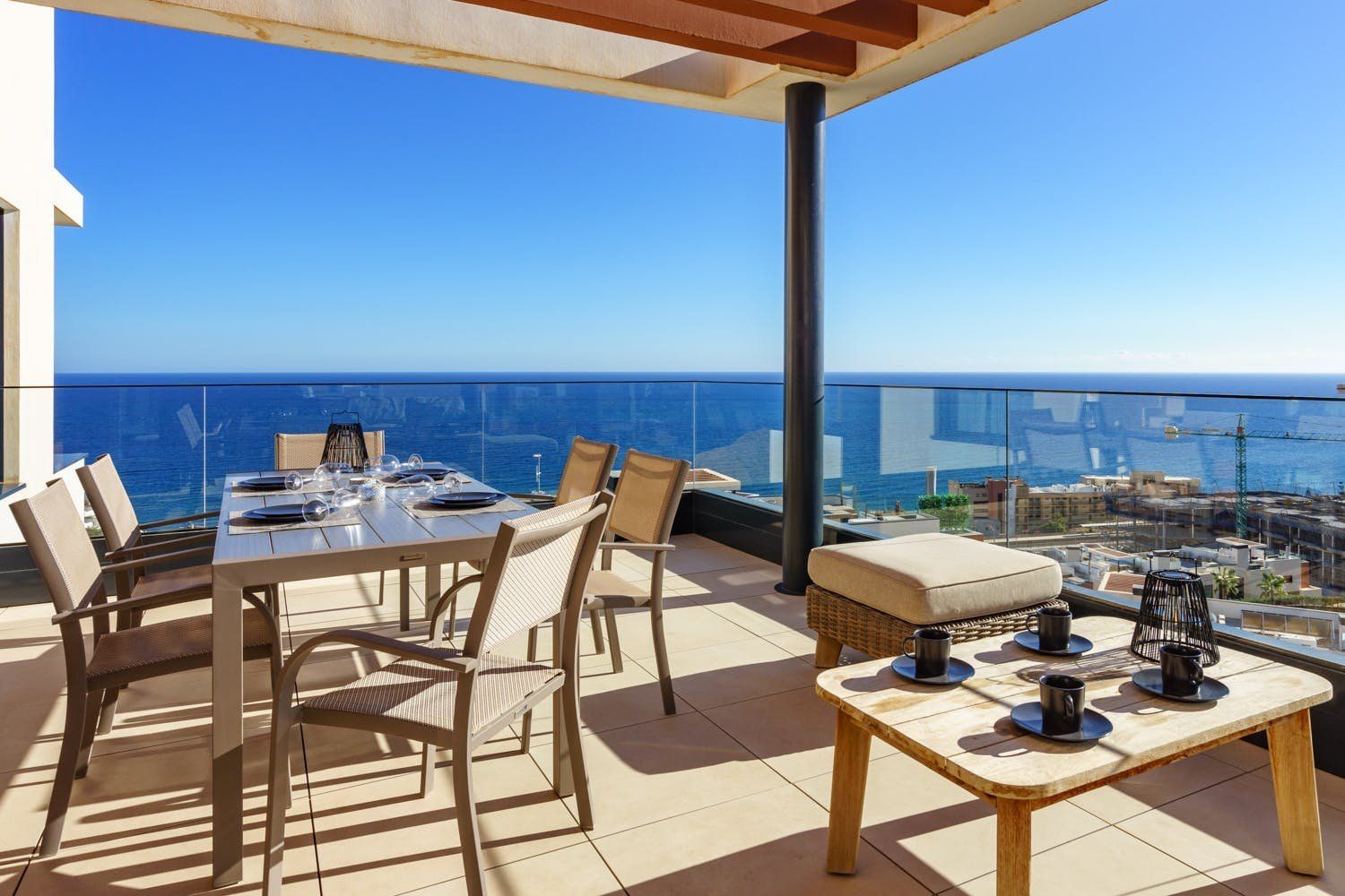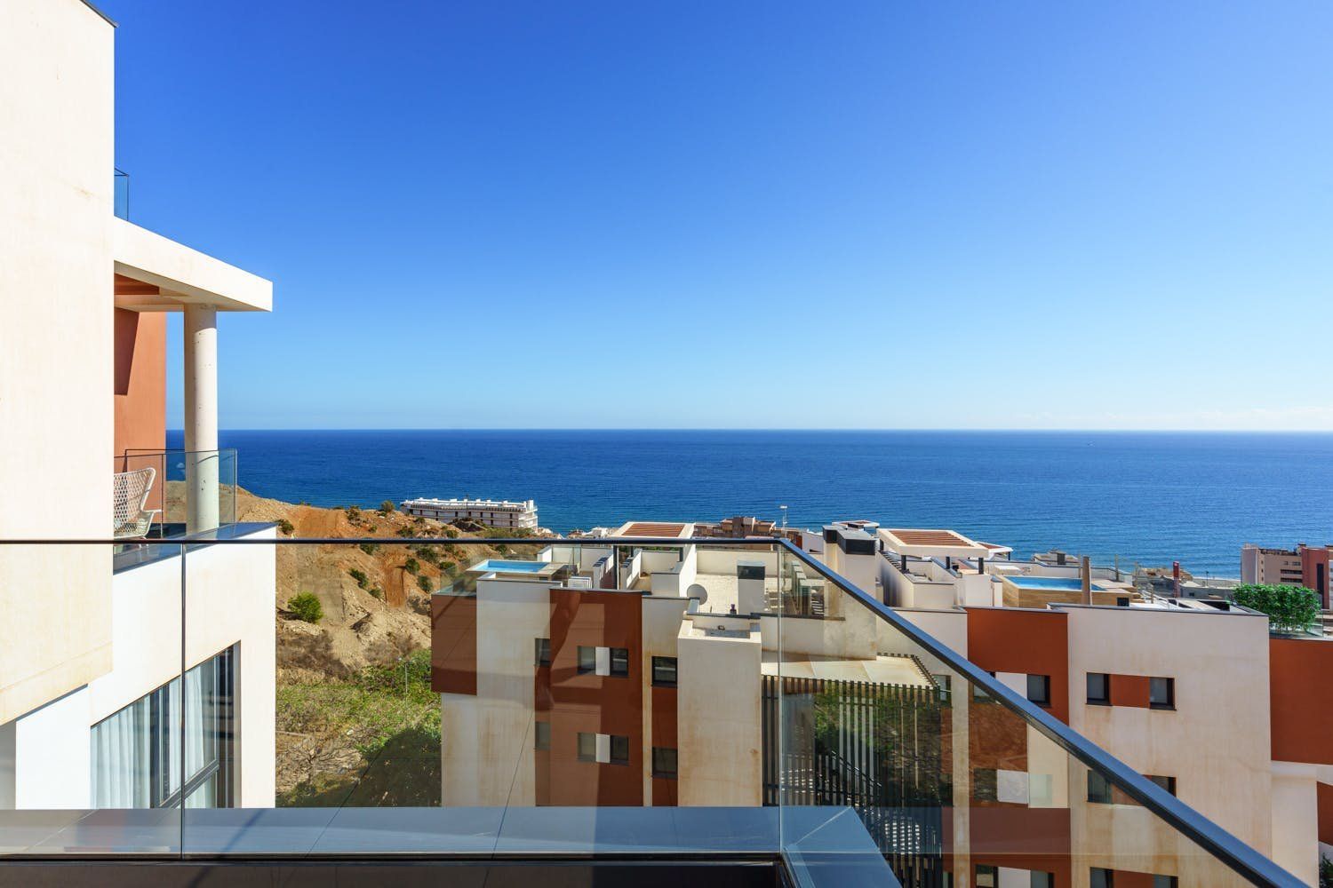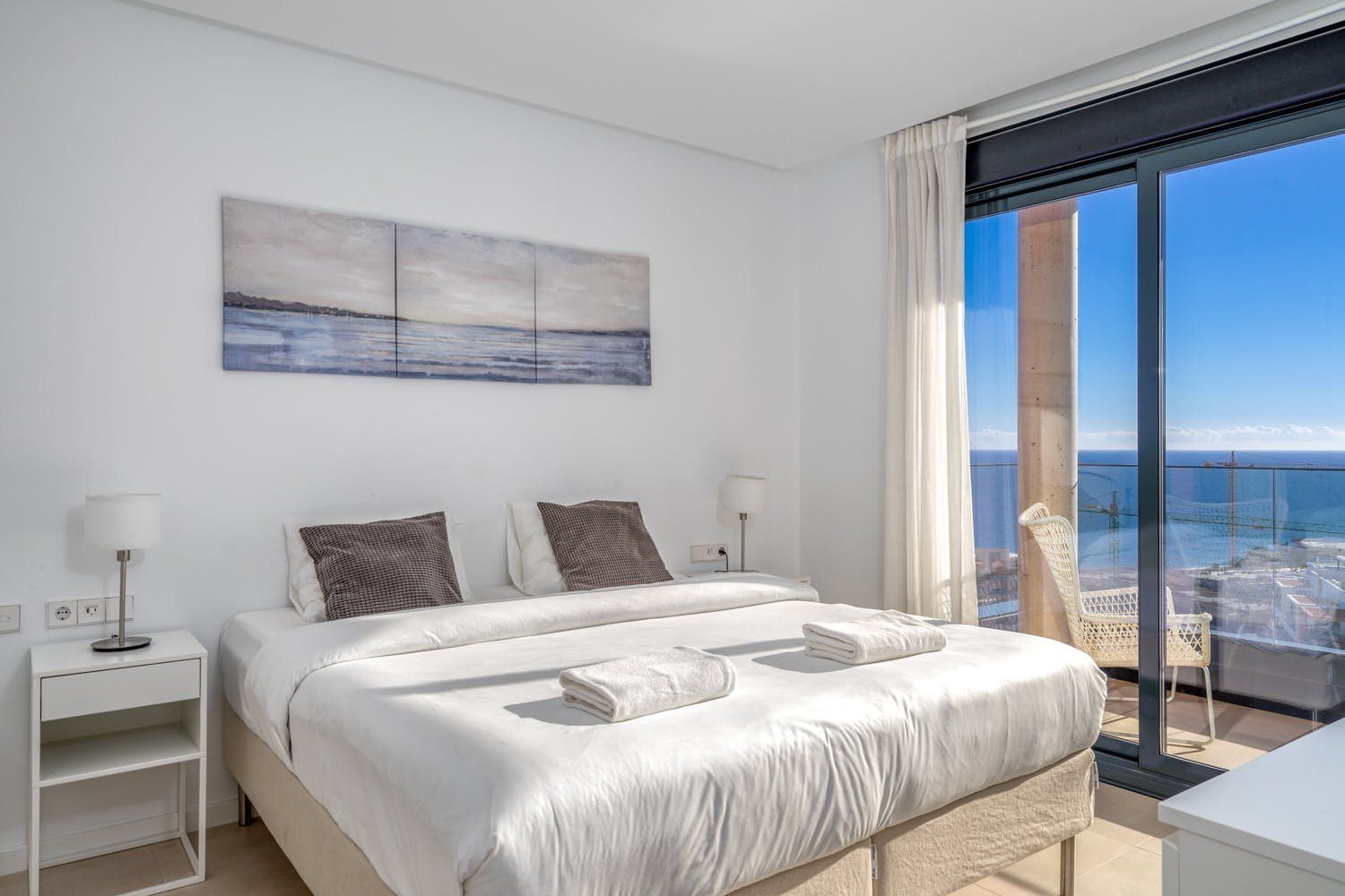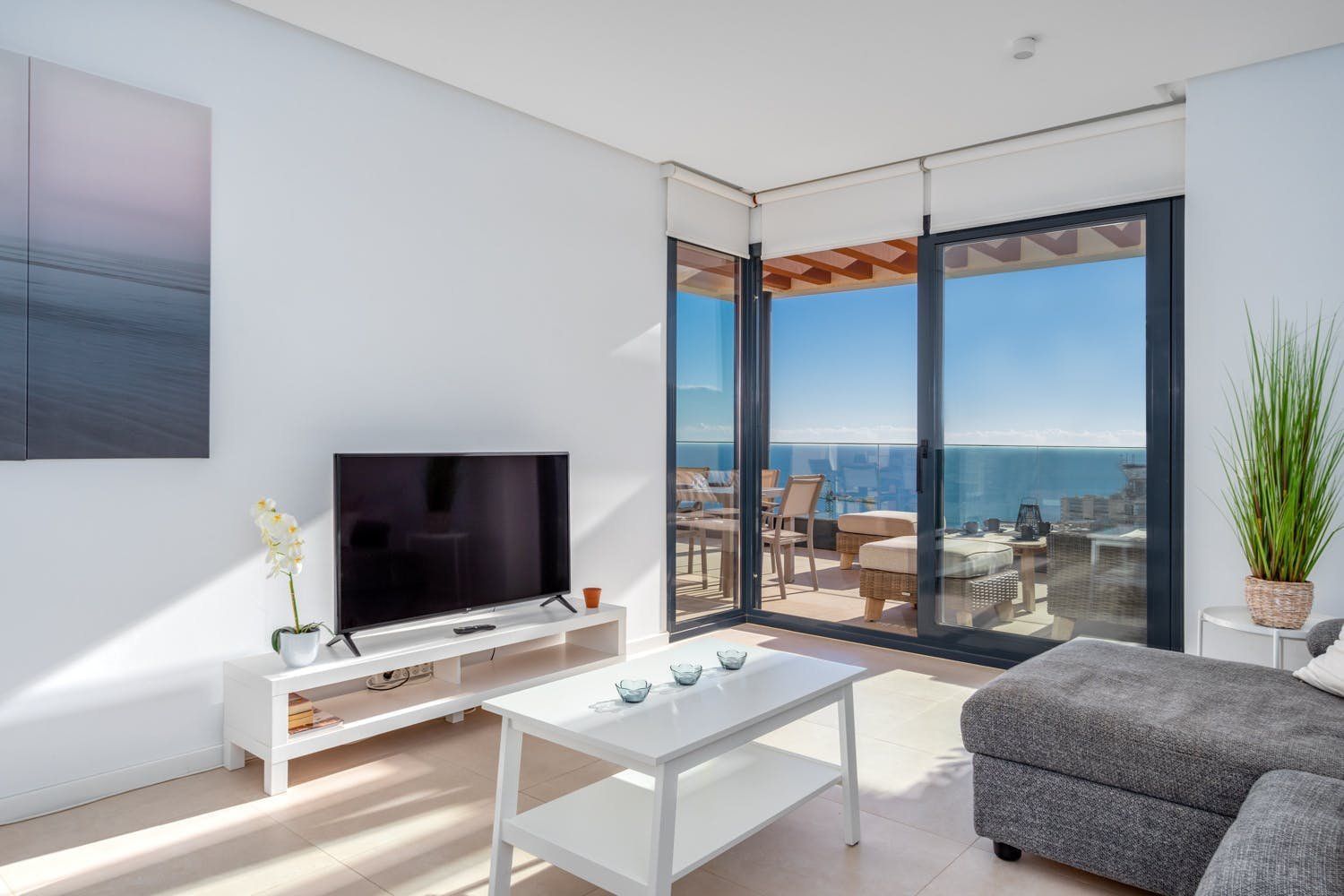 Just a five-minute walk from the beach and promenade of Fuengirola, this luxury penthouse boasts a prime location by the sea. The home's most impressionable highlight rests on the terrace where a panorama of blue paints an unforgettable setting. On-site there's a gym, a sauna and two swimming pools to enjoy, but with your own private sun terrace, you may prefer to relax in solitude before the views. With a highly functional and modern set-up inside the apartment, this spot is an ideal base for a small group of friends looking to discover the Malaga region between leisure activities. Please note, at full capacity, two guests will be sleeping on the sofa bed in the living room.