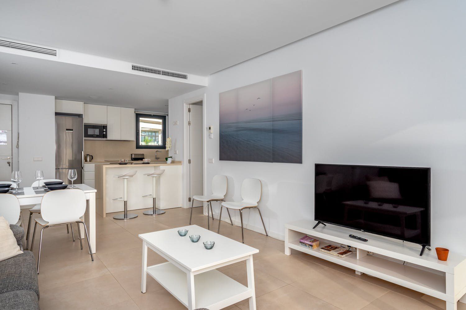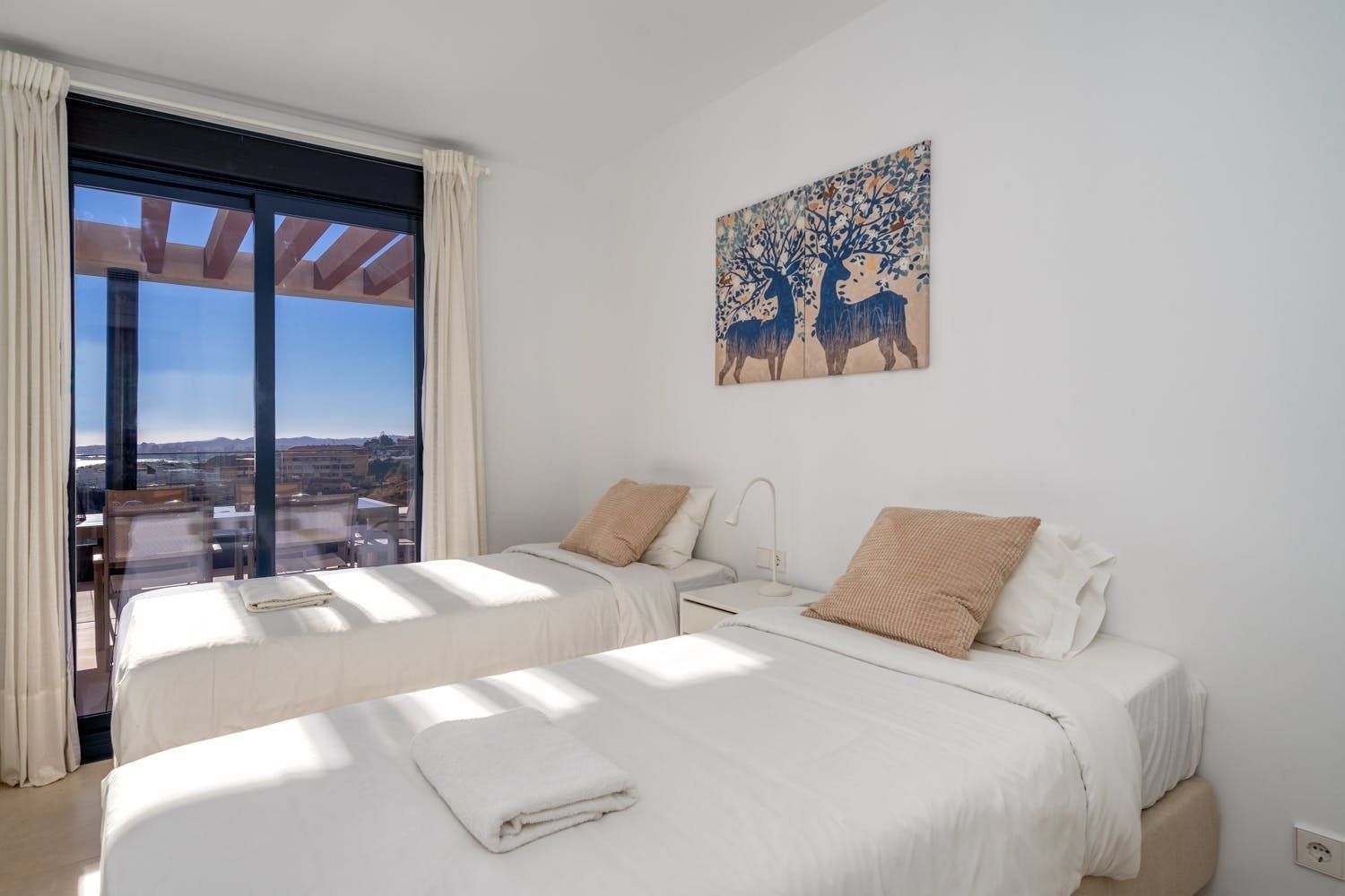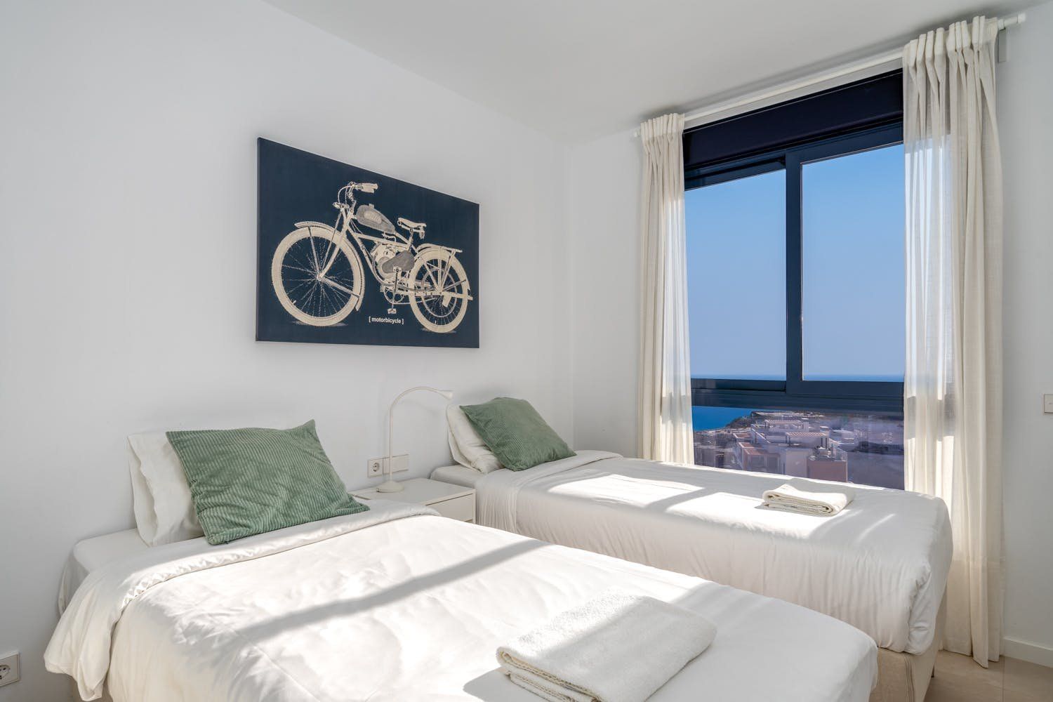 Just a five-minute walk from the beach and promenade of Fuengirola, this luxury penthouse boasts a prime location by the sea. The home's most impressionable highlight rests on the terrace where a panorama of blue paints an unforgettable setting. On-site there's a gym, a sauna and two swimming pools to enjoy, but with your own private sun terrace, you may prefer to relax in solitude before the views. With a highly functional and modern set-up inside the apartment, this spot is an ideal base for a small group of friends looking to discover the Malaga region between leisure activities. Please note, at full capacity, two guests will be sleeping on the sofa bed in the living room.