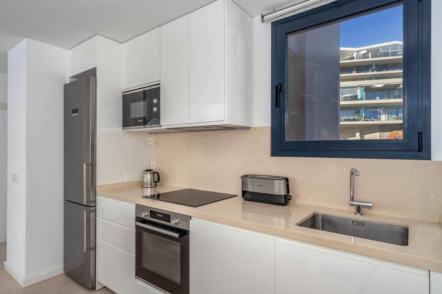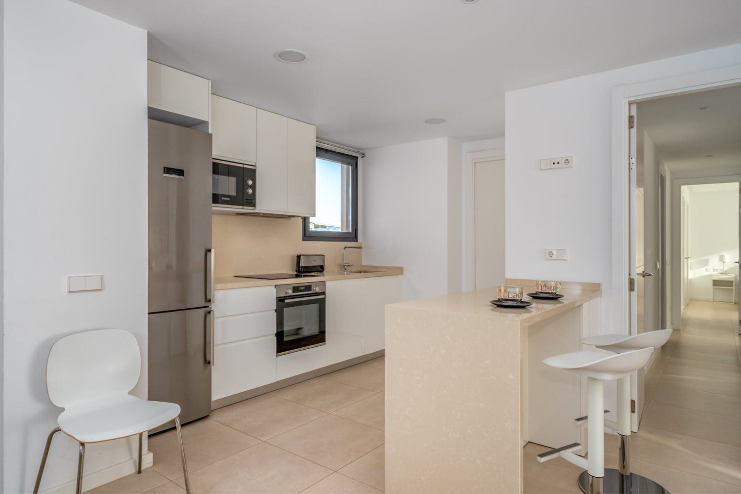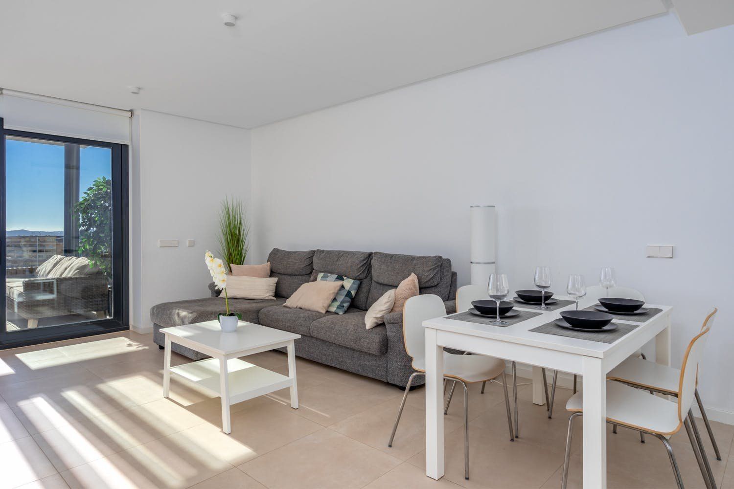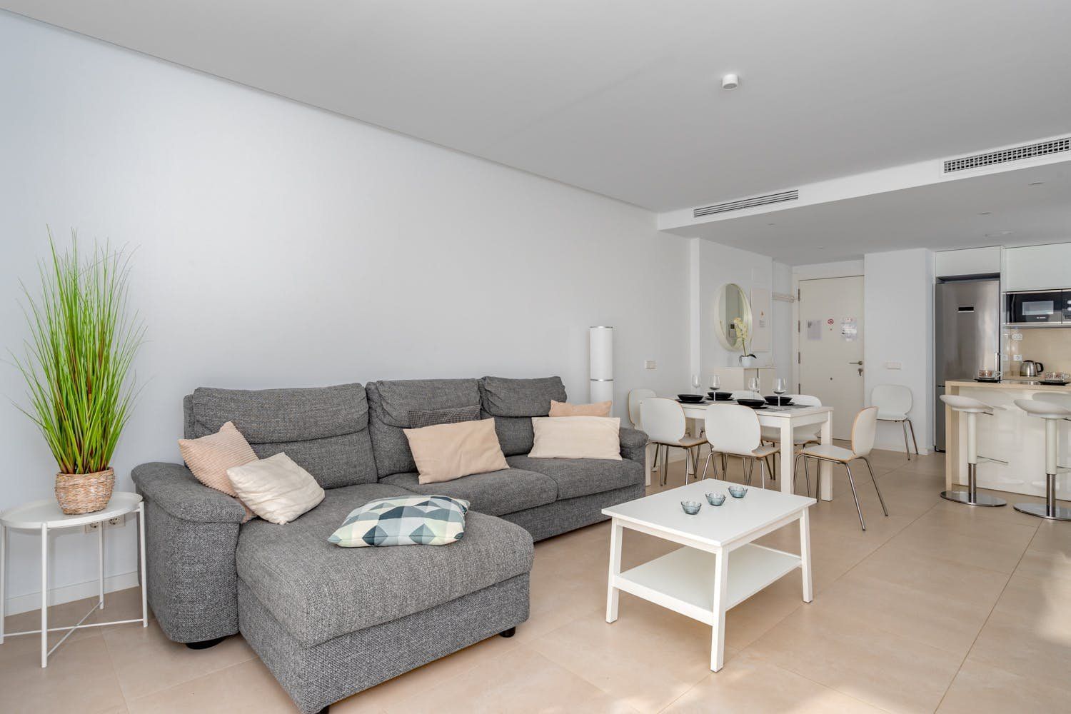 Just a five-minute walk from the beach and promenade of Fuengirola, this luxury penthouse boasts a prime location by the sea. The home's most impressionable highlight rests on the terrace where a panorama of blue paints an unforgettable setting. On-site there's a gym, a sauna and two swimming pools to enjoy, but with your own private sun terrace, you may prefer to relax in solitude before the views. With a highly functional and modern set-up inside the apartment, this spot is an ideal base for a small group of friends looking to discover the Malaga region between leisure activities. Please note, at full capacity, two guests will be sleeping on the sofa bed in the living room.