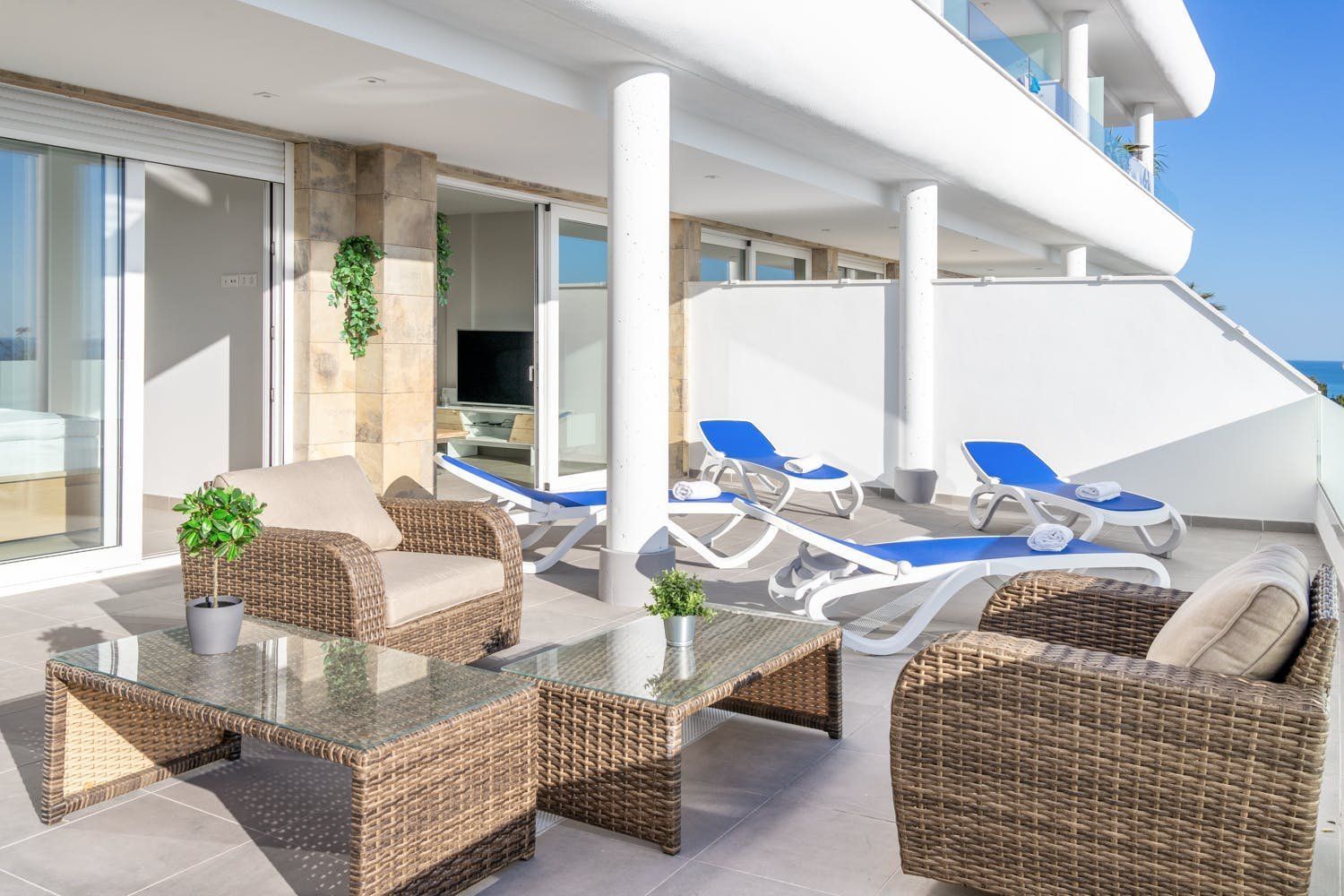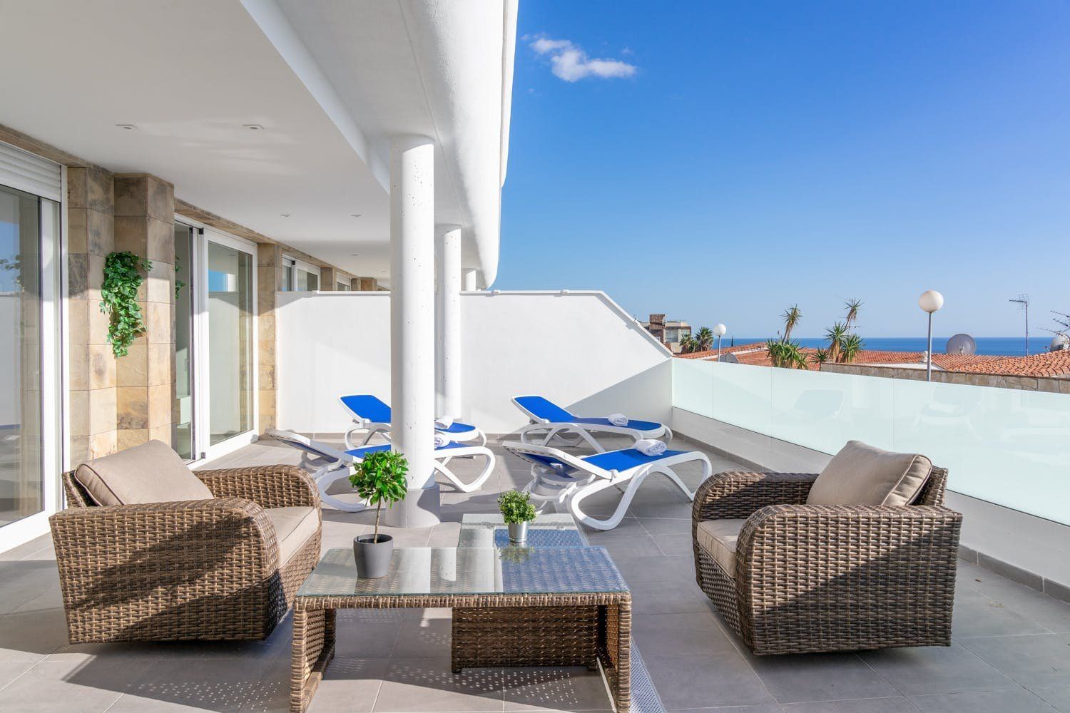 The communal pool and gardens may be the main attractions at this coastal apartment, although the highlight for us is definitely the large balcony. The apartment itself is modern and practical, but it lacks some character. That said, there’s a bright open-plan living room for relaxing and a lovely sea view to admire while you’re preparing a tapas dinner. We think this location makes for a great Costa del Sol base – golf courses, sandy beaches, and well-known beach restaurants are all within easy reach.