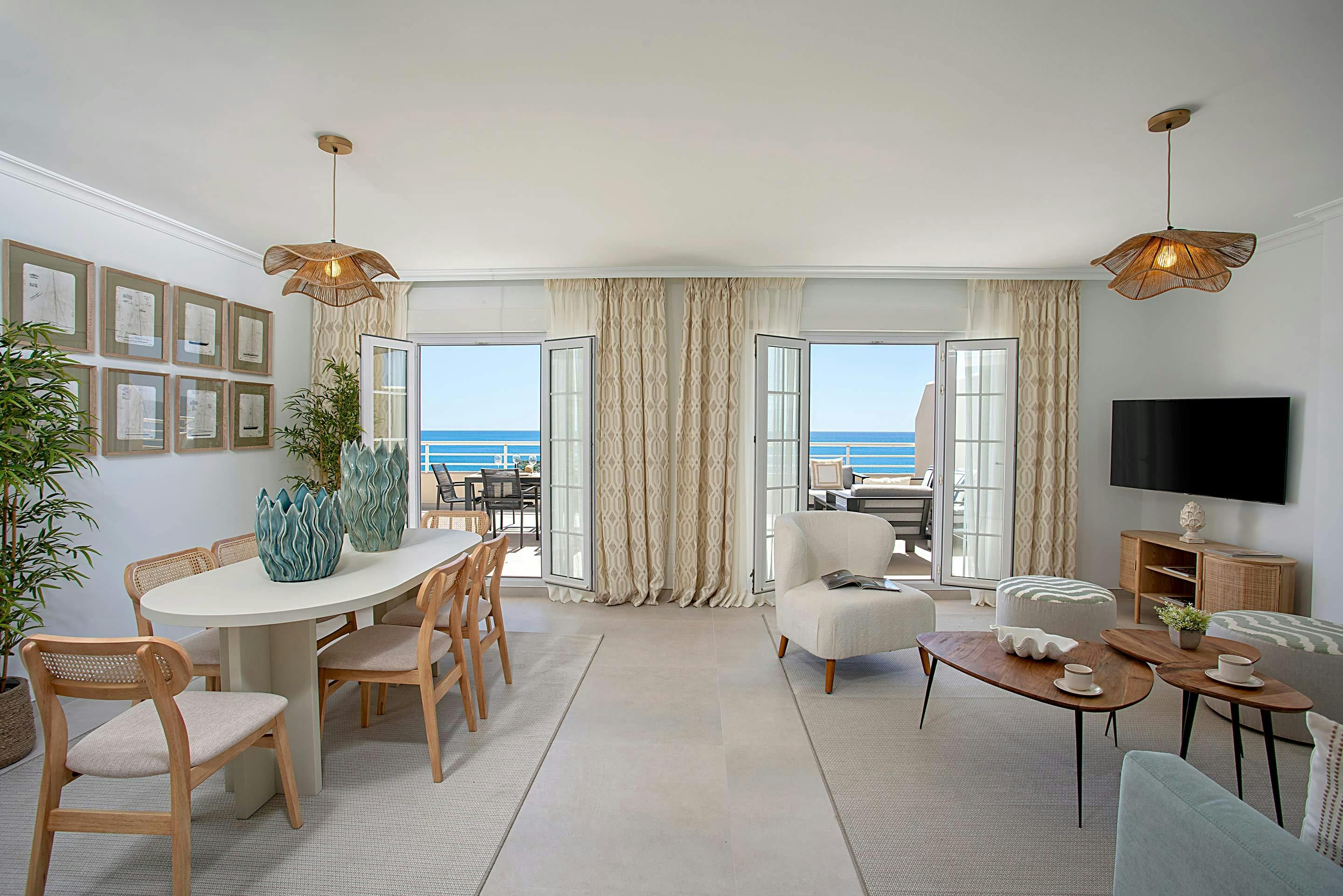 With panoramic views of the Mediterranean Sea from the private wraparound terrace, this penthouse apartment certainly delivers. Located on the eighth floor (don’t worry, there’s a lift), you can overlook the water as you relax on a lounger or dine alfresco. Inside, the living area and main bedroom share the same vistas as they both open out onto the terrace. And with a separate kitchen – complete with breakfast bar – there’s plenty of space for everyone to enjoy. Location-wise, you’re in the heart of popular Fuengirola, just a stone’s throw from a sandy beach.