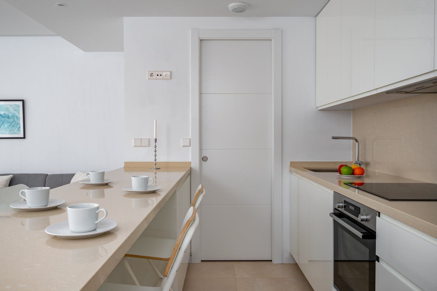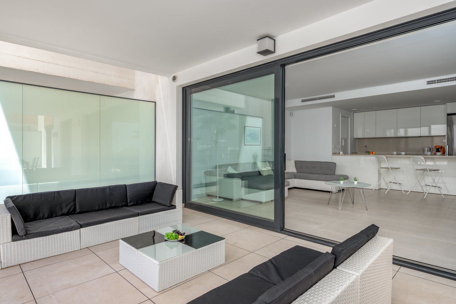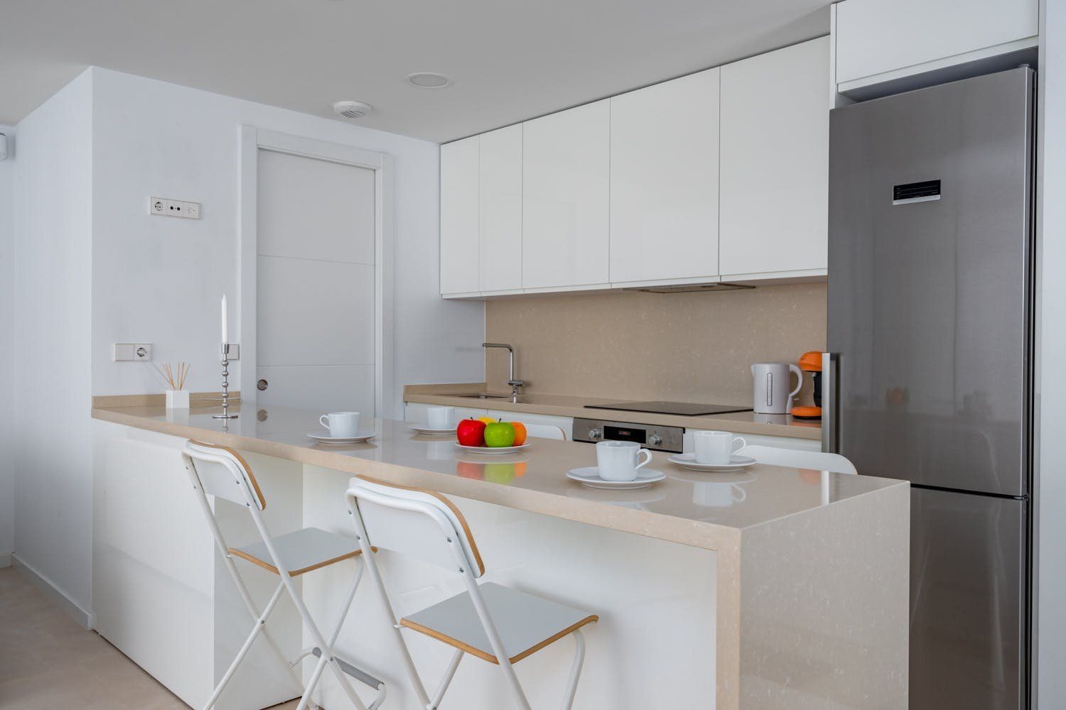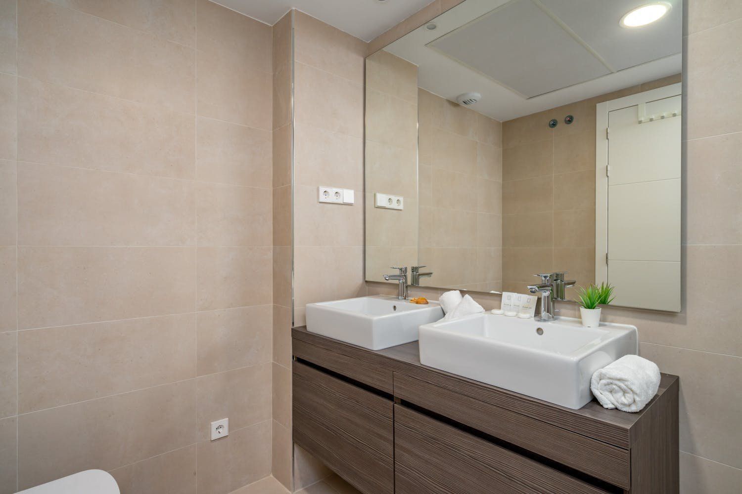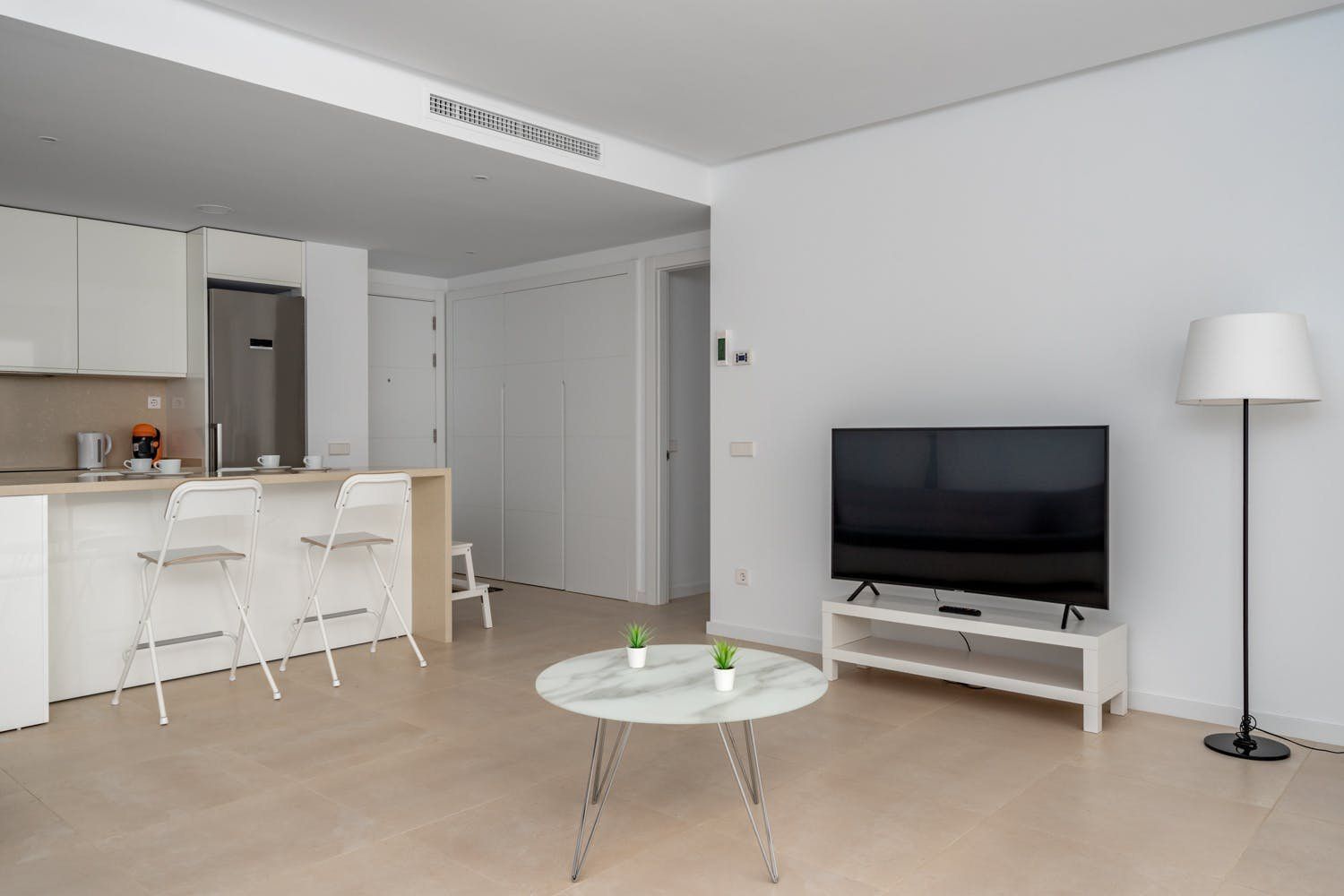 Just a short walk from the beach and seafront promenade, this apartment is the ideal sunny getaway. Open the sliding doors and let the sun and sea air in as you gather on the dining terrace for breakfast. The home can sleep up to five, but three people will be sleeping on a bunk bed in the second bedroom which is only suitable for younger children. Here, you'll also have shared access to the on-site swimming pools and gym, making it ideal for families.
