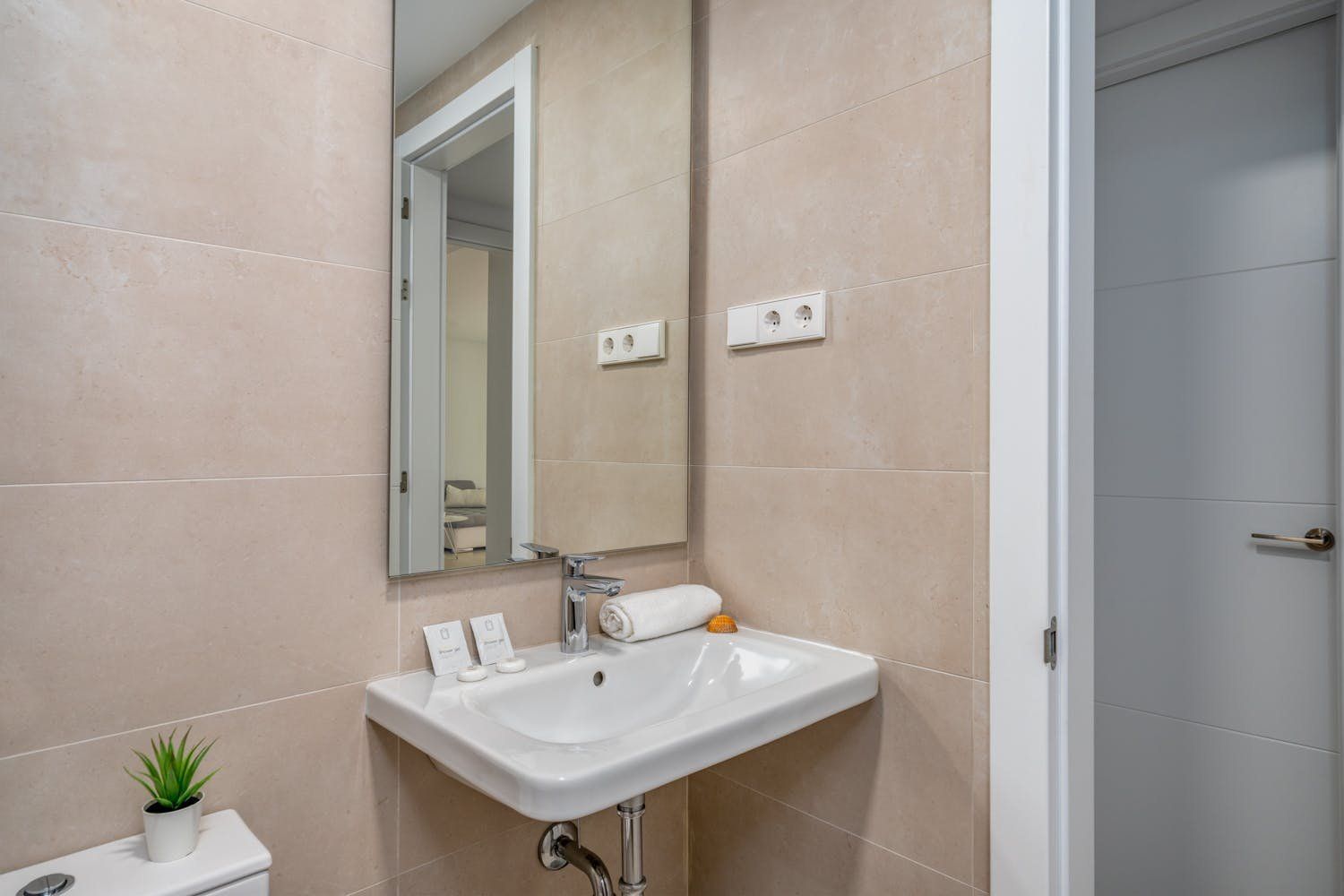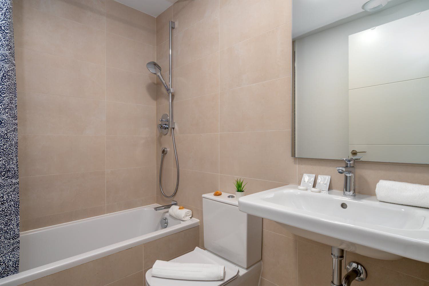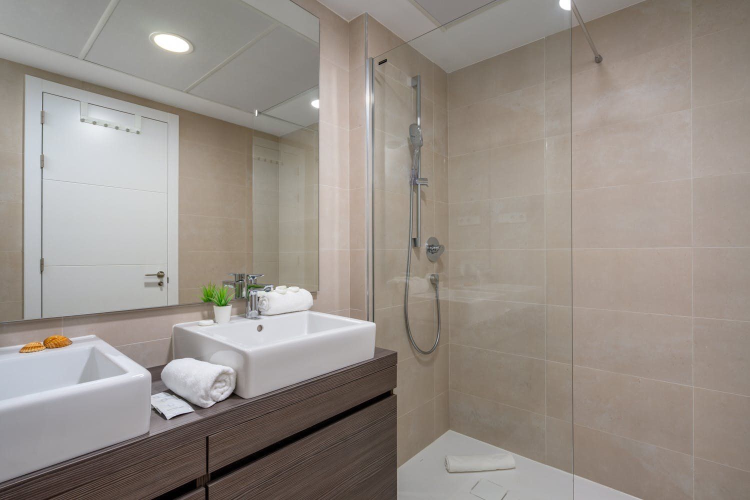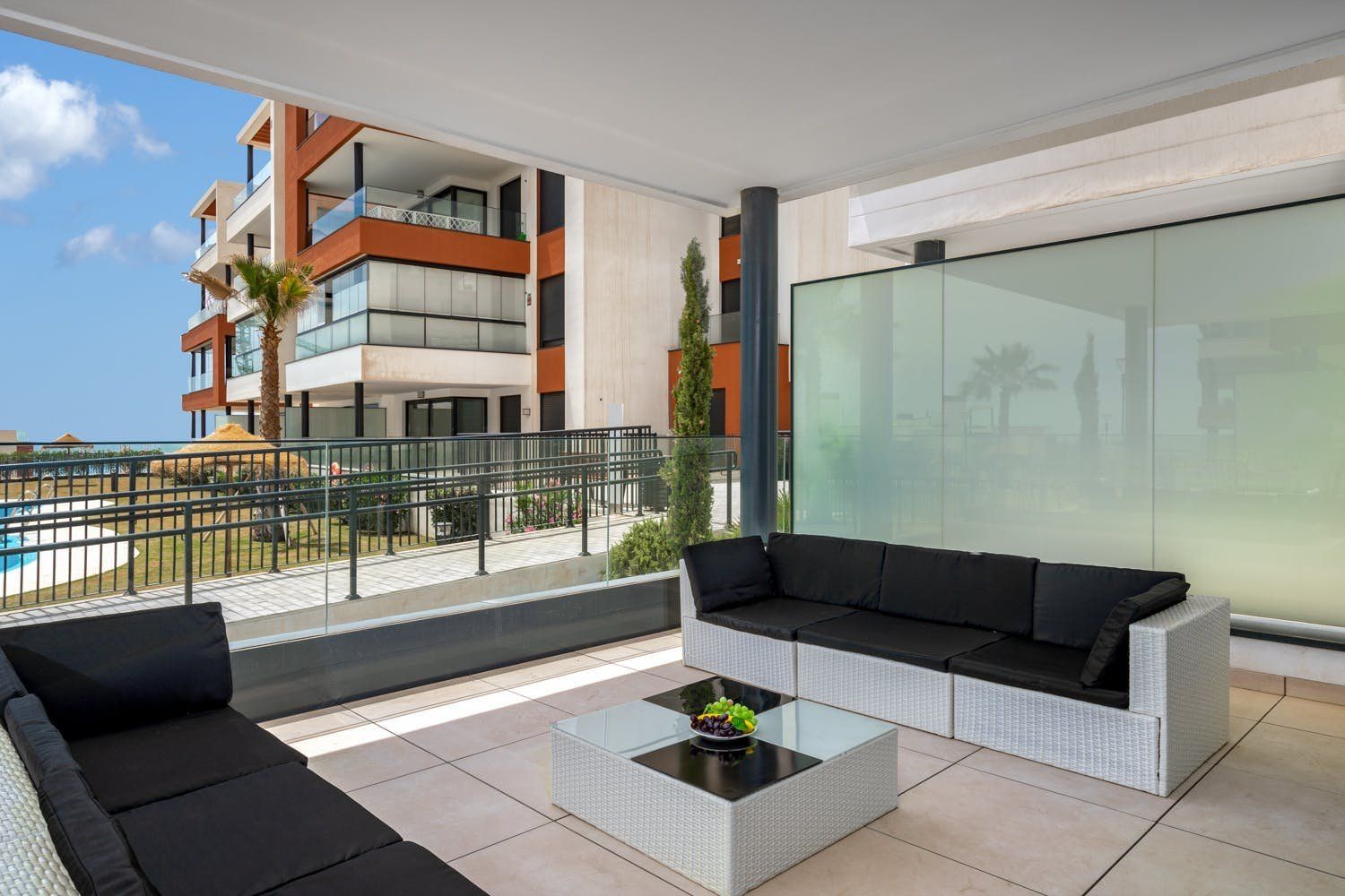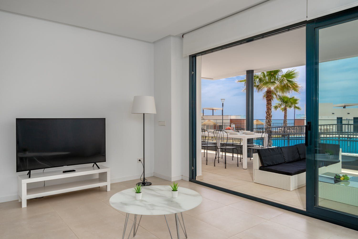 Just a short walk from the beach and seafront promenade, this apartment is the ideal sunny getaway. Open the sliding doors and let the sun and sea air in as you gather on the dining terrace for breakfast. The home can sleep up to five, but three people will be sleeping on a bunk bed in the second bedroom which is only suitable for younger children. Here, you'll also have shared access to the on-site swimming pools and gym, making it ideal for families.