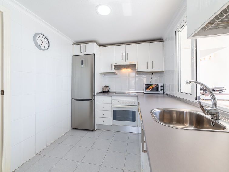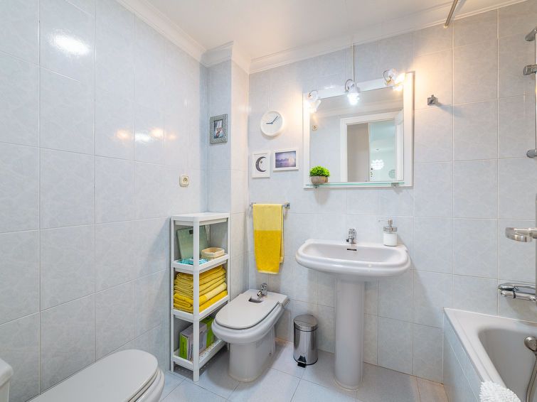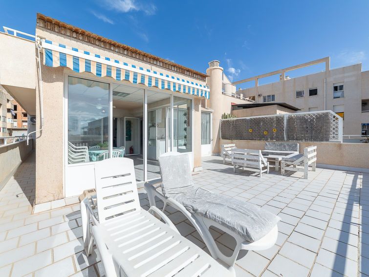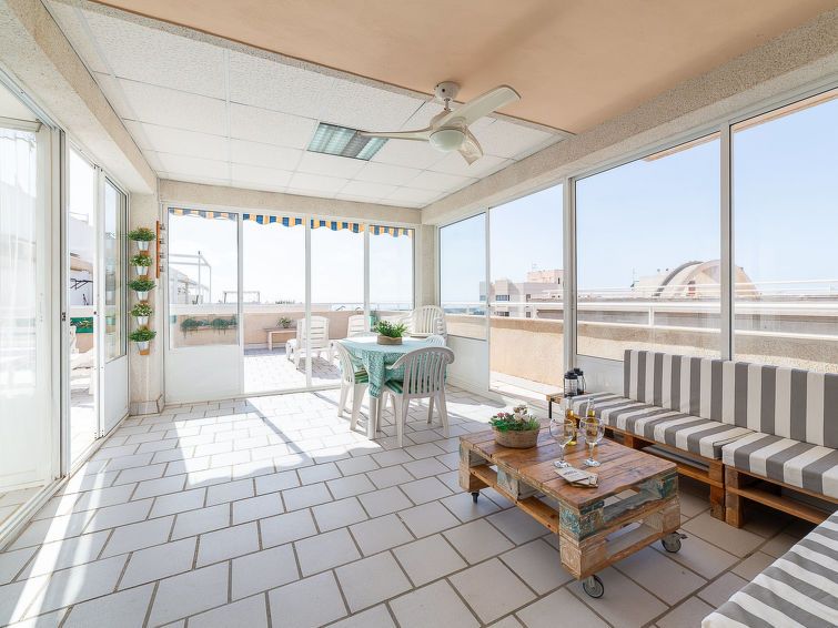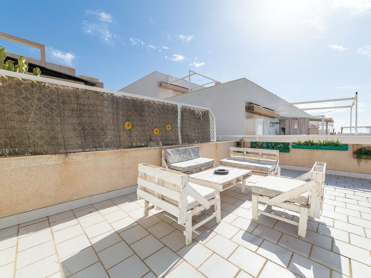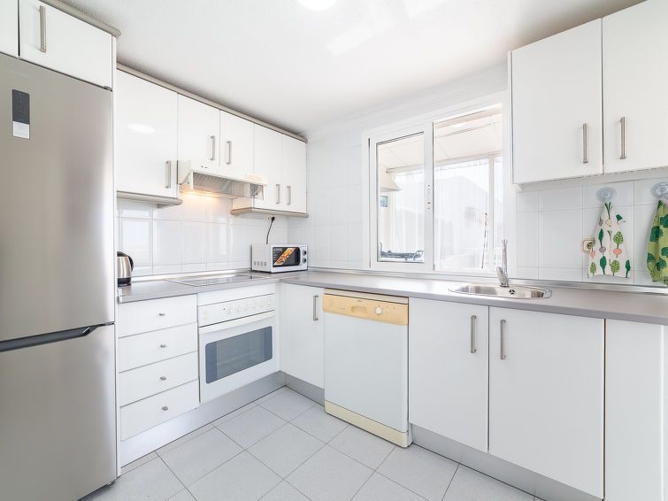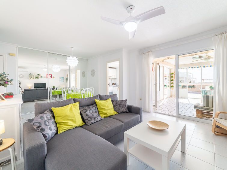 "Terrazas V", 3-room apartment 120 m2 on 4th floor. Practical and comfortable furnishings: living/dining room with dining table, digital TV, flat screen, air conditioning, fan and forced-air heating. Exit to the terrace. 1 room with 1 french bed (135 cm, length 190 cm), air conditioning, fan and forced-air heating.