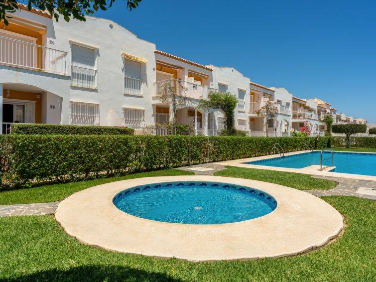 3-room apartment 70 m2 on 1st floor. Comfortable furnishings: living/dining room 20 m2 with digital TV, air conditioning and forced-air heating. 1 room with 1 french bed, bath/WC and air conditioning. 1 room with 1 pull-out bed (2 pers.). Open kitchen (4 hot plates, oven, microwave, freezer) with bar.