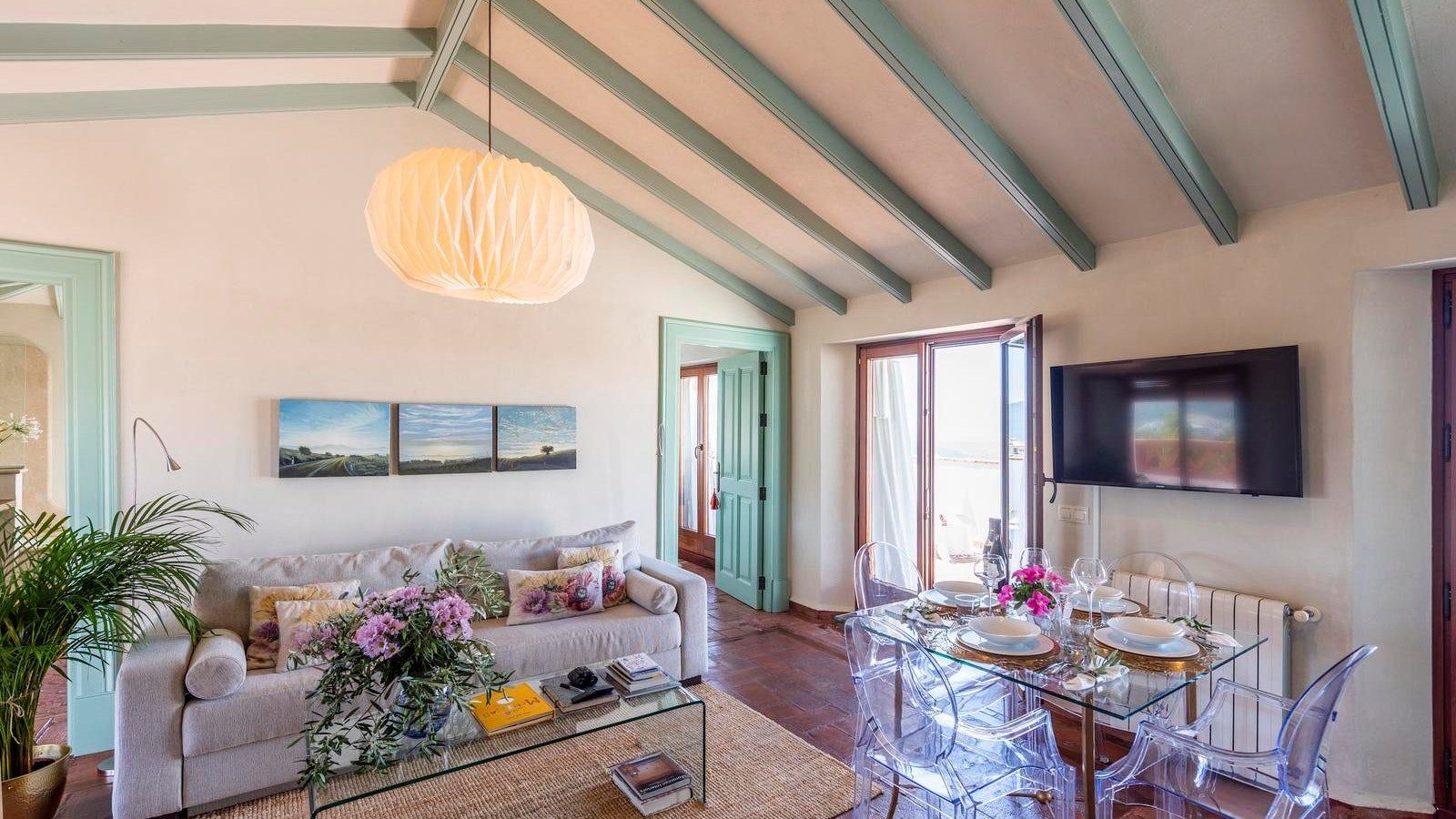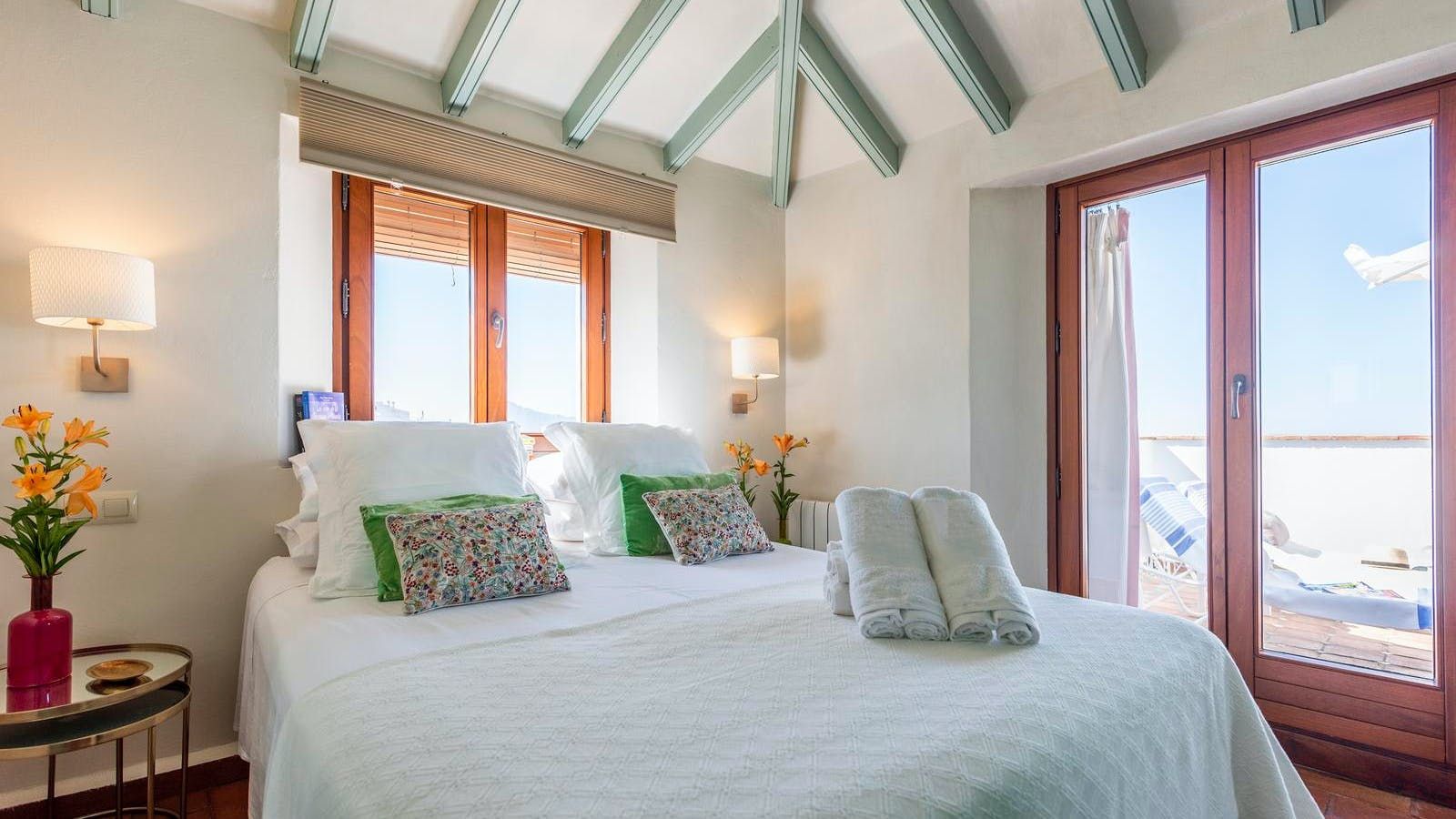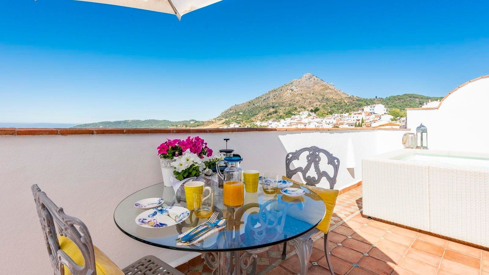 Located in the town of Gaucin, in the province of Malaga, Andalucia, this penthouse apartment offers some truly incredible panoramic views. Each morning, you will wake up in this bright home with its terracotta floors and Tiffany-blue doors and want to step out onto the terrace immediately to enjoy the soft breeze. On the southern terrace, you can admire views of the Mediterranean on the horizon and a valley that stretches out before you as you enjoy an alfresco breakfast, sipping fresh jugo de naranja.