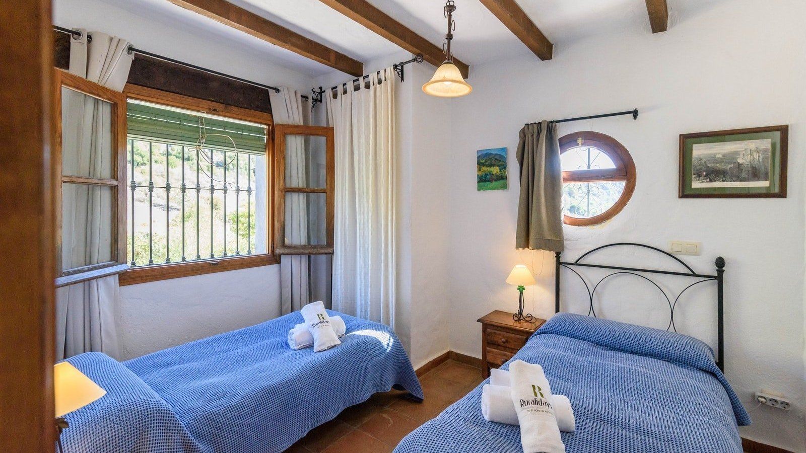 With its rustic interiors, tranquil garden and bucolic surroundings, this cosy villa is ideal for a family or group of friends looking to switch off and seriously relax. Inside the home, exposed stone and tiled floors help keep things cool on long, hot afternoons. Wake up feeling well-rested in the unfussy bedrooms then put together a breakfast spread in the farmhouse-style kitchen – we particularly loved the soothing cobalt and turquoise blue tones.