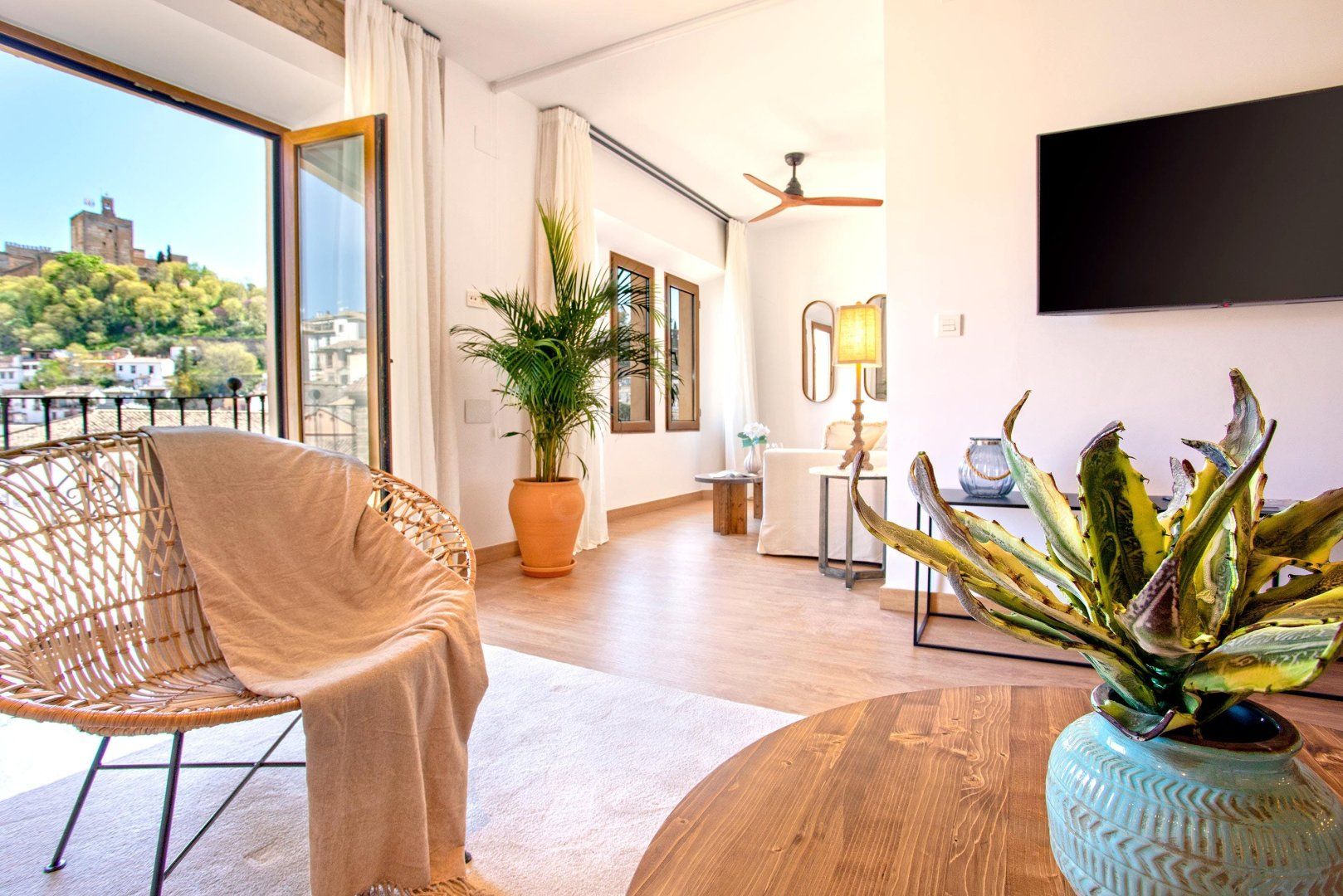 You can’t miss the majestic Alhambra during a visit to Granada – and you certainly won’t miss it when you stay here, as you can admire that Moorish marvel from your window. The apartment itself is just as lovely as the view, with a spacious, sunny living area and three comfortable bedrooms for a stylish siesta (plus a sofa bed that sleeps two). There’s also a small yet smartly-designed kitchen, but if we were staying, we’d spend our mealtimes touring nearby tapas spots – living (and eating) like a real local.