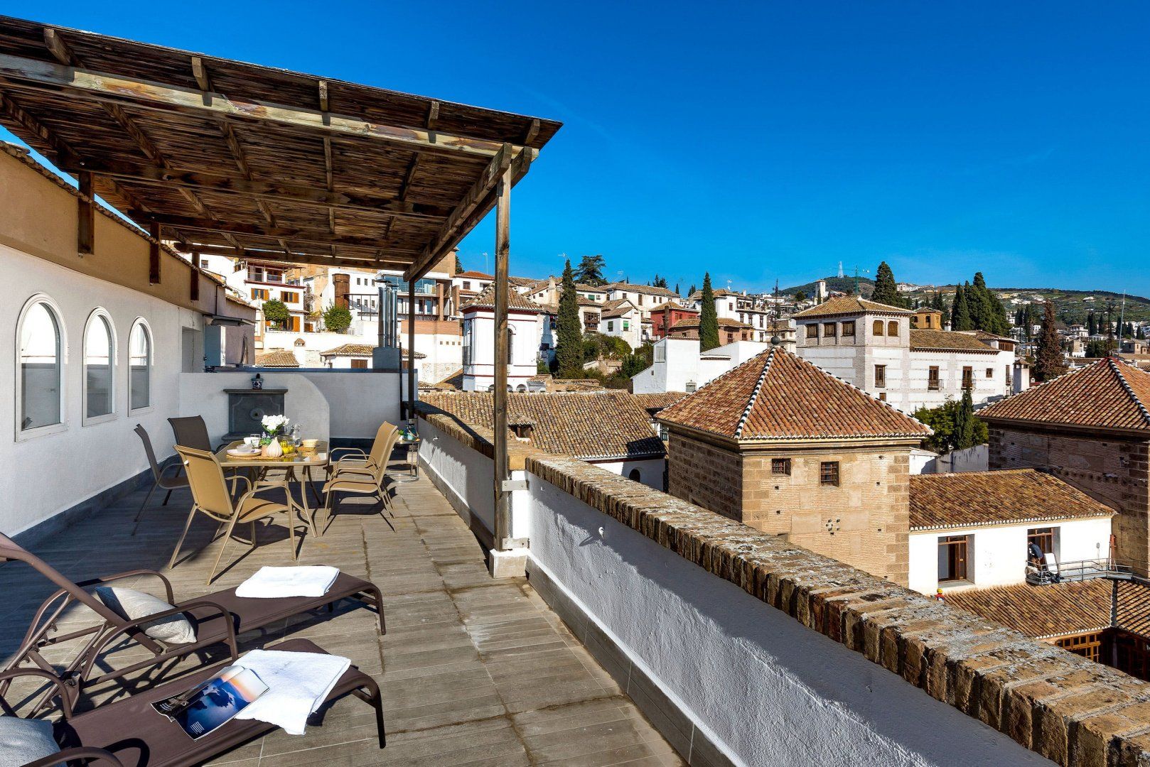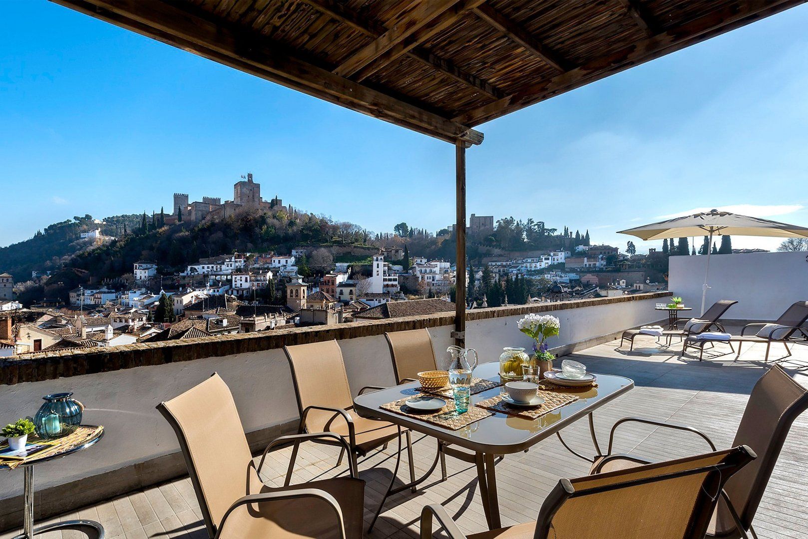 This stylish penthouse in the heart of Granada puts you just a short walk from the Cathedral, Plaza Nueva and the Albaicín. Inside, you’ll find a bright living space with modern furnishings and a fully equipped kitchen, perfect for cooking at home. Step outside to the private terrace, complete with a wooden pergola, where you can take in views of the Alhambra and the city rooftops. With its unbeatable location and thoughtful details, it’s a smart choice for making the most of Granada on foot.