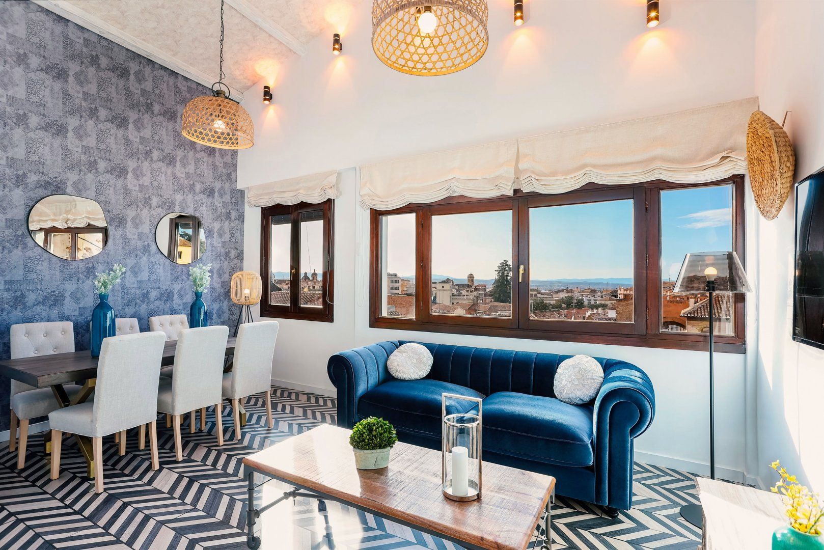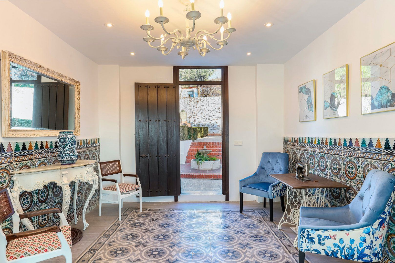 Spread across a single storey, the intricate tiling in the kitchen, hallways and dining area immediately draws the eye, while the eclectic collection of antique furnishings adds character, too. It's not all historic though – contemporary flourishes come in the shape of chic lighting and minimalist bedrooms.