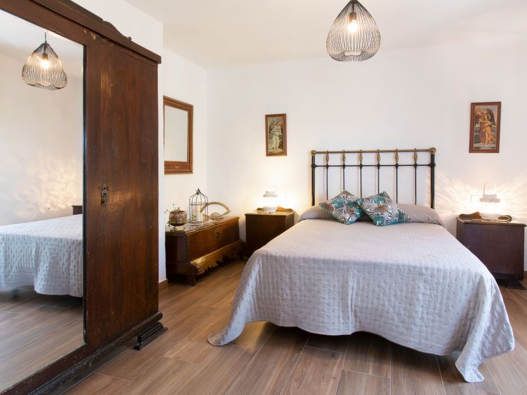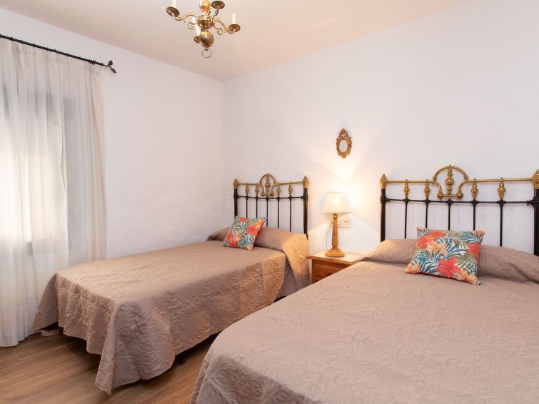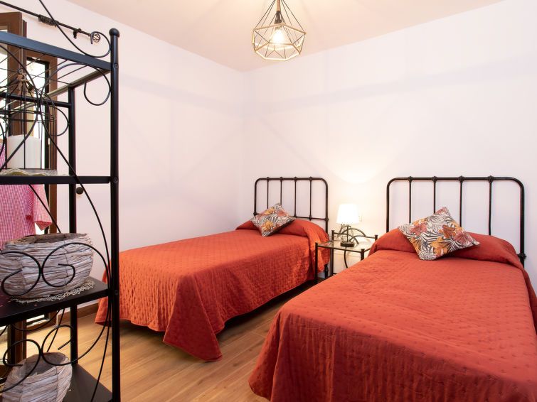 "Patio de las Granadas", 6-room semi-detached house 175 m2. Practical and rustic furnishings: living/dining room with heating stove. Exit to the terrace. 1 room with 2 beds (90 cm, length 190 cm). Kitchen (oven, dishwasher, 4 ceramic glass hob hotplates, toaster, kettle, microwave, freezer, grill, electric coffee machine).