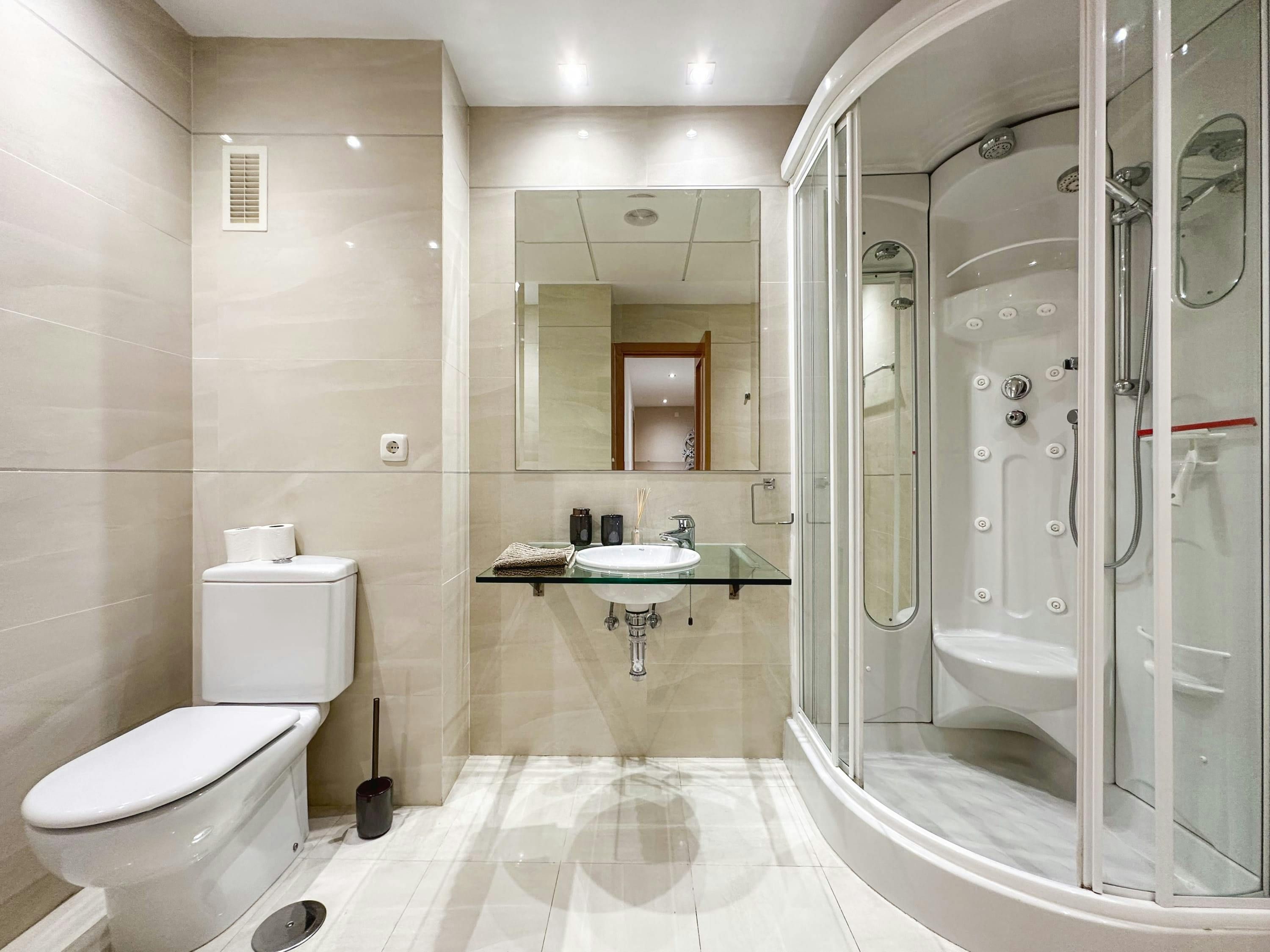 *You’ll have access to shared facilities here, including the swimming pools, gym, spa, sauna and tropical gardens. The indoor swimming pool is closed during summer.