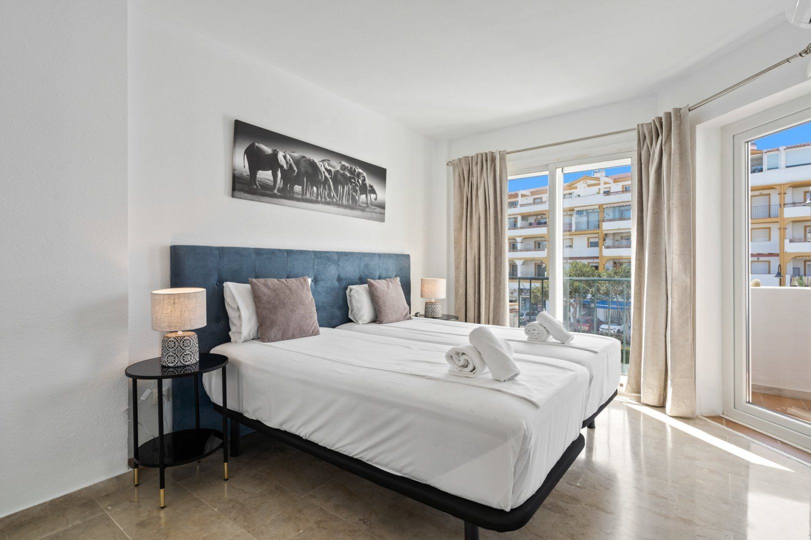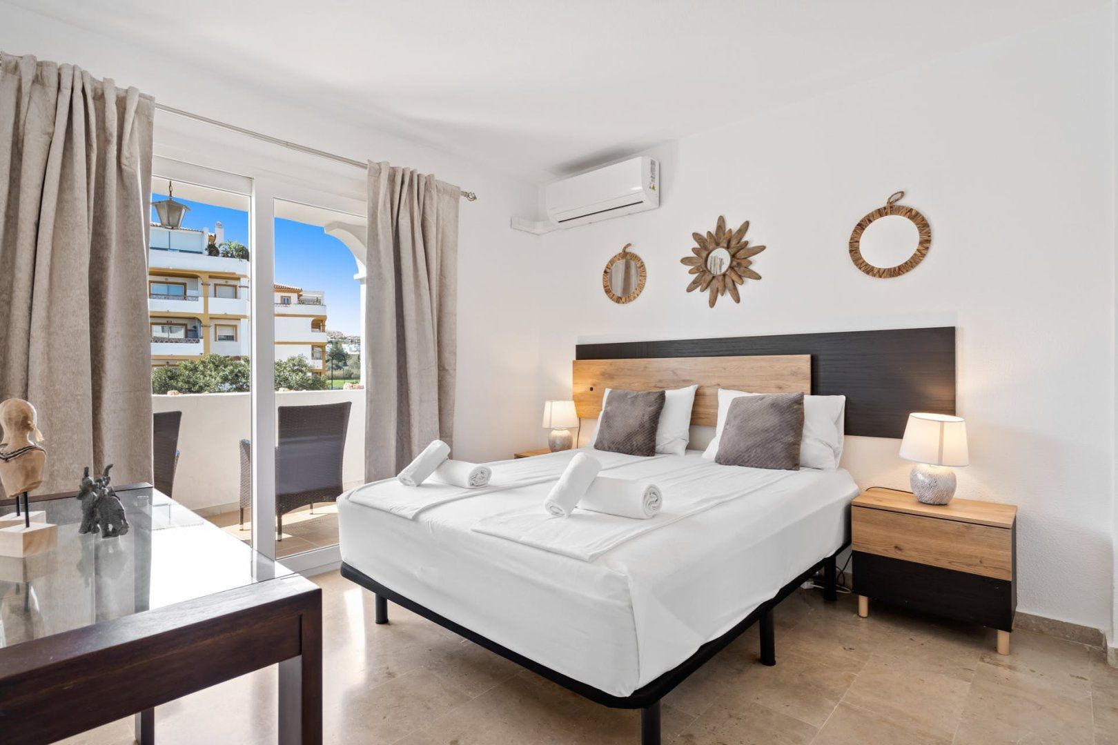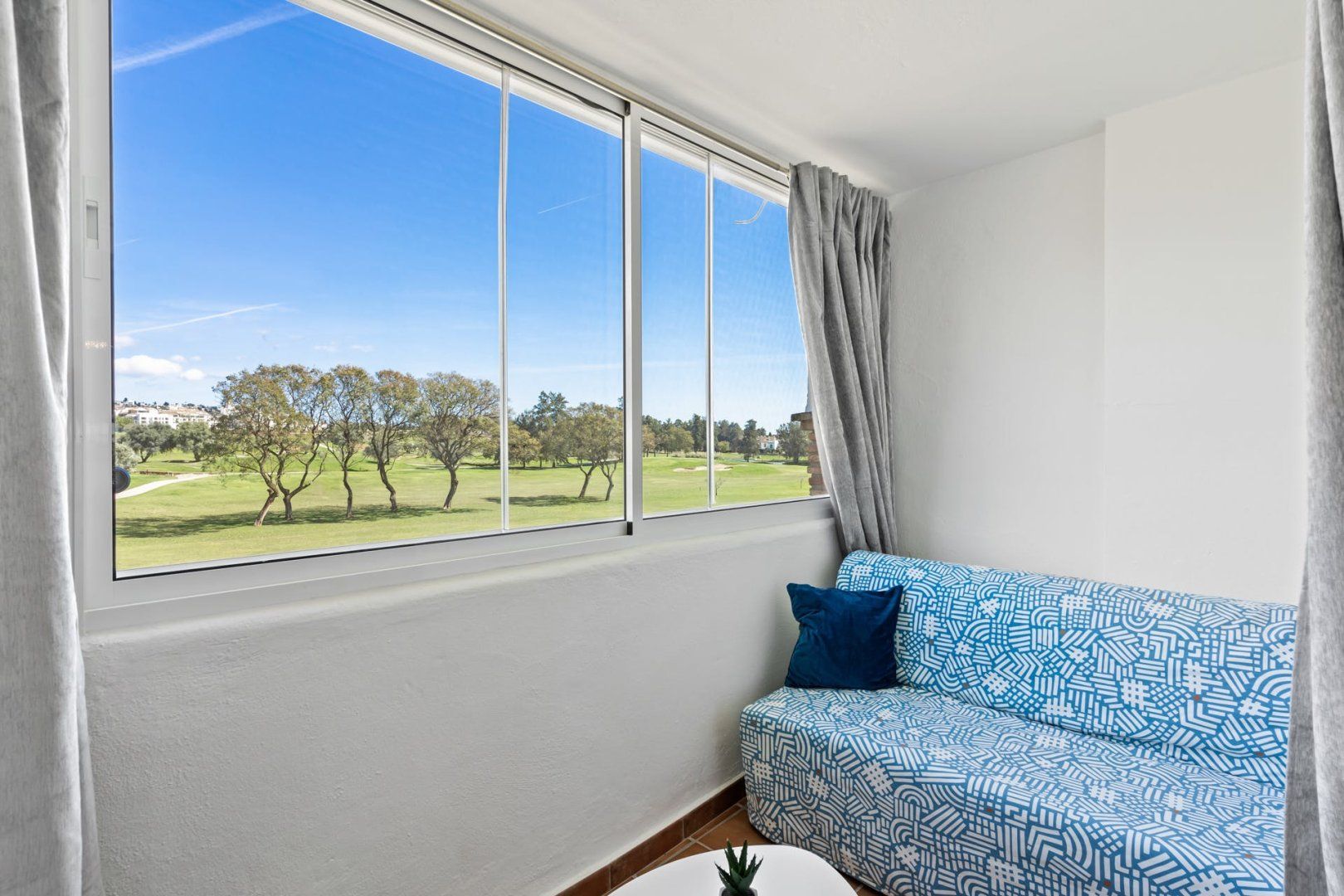Positioned a short drive from Boliches Beach and the bars and restaurants of Fuengirola, this no-fuss apartment with golf course views is a great choice for all types of travellers. The private balcony encourages dining or relaxing alfresco, and when you need to cool off, there’s a communal pool on the premises. At capacity, two guests will sleep on the sofa bed in the living area – something to note if you are looking for a place with ample room for socialising.
