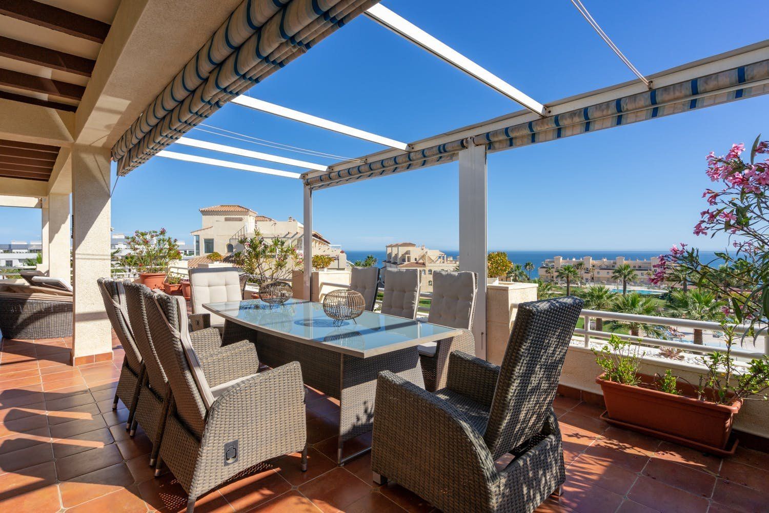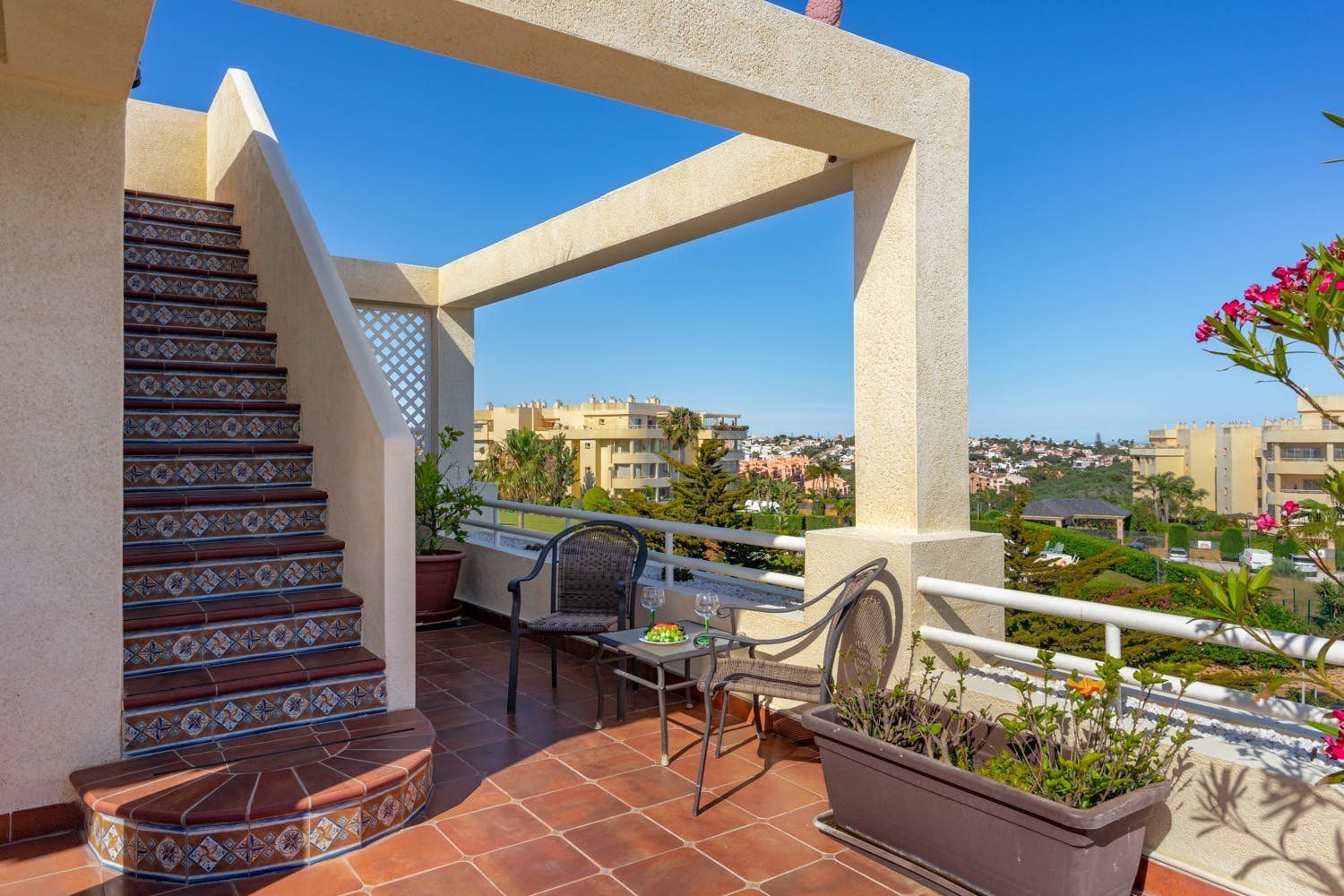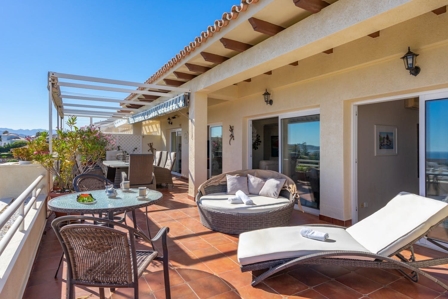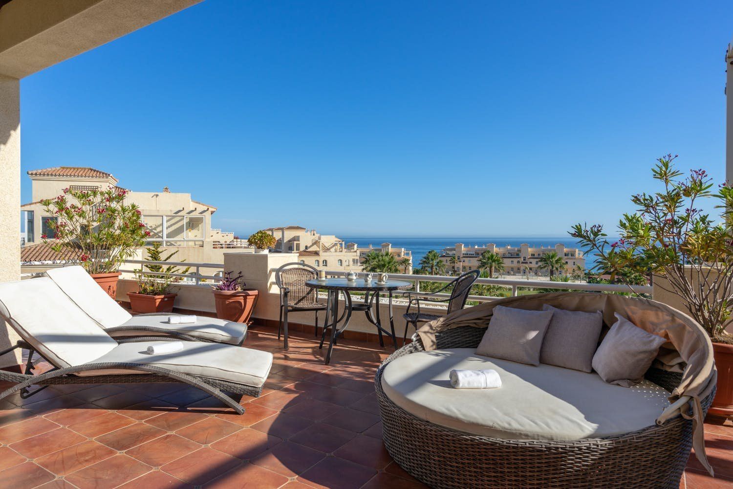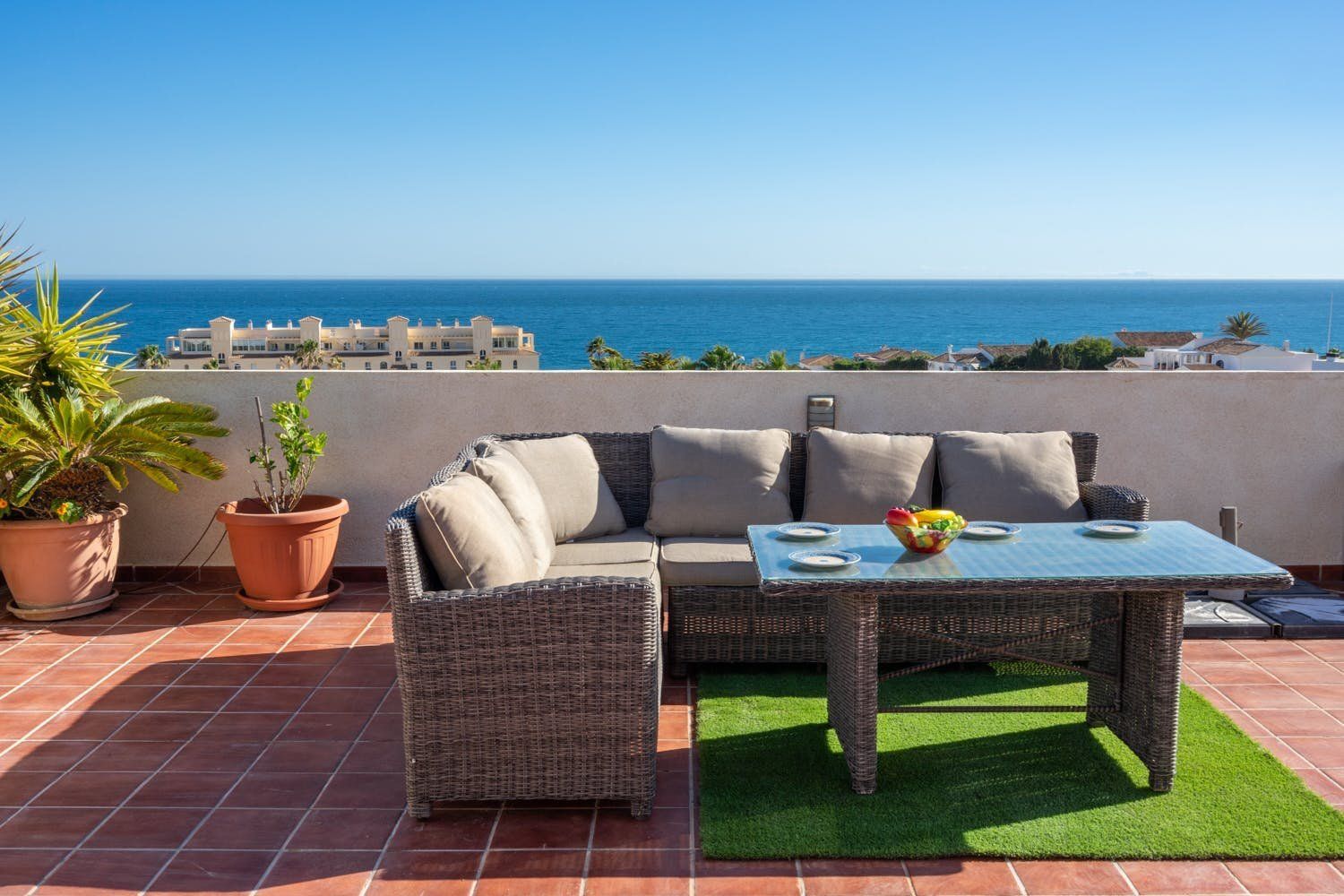 You could never tire of the sea views seen from the rooftop terrace of this penthouse in El Faro. Perfect for a family seeking a base in the heart of the Costa del Sol – Fuengirola, La Cala de Mijas, and Marbella are within easy reach. Or keep things local – numerous restaurants, shops and beach bars are within walking distance. It's worth noting that you'll share a swimming pool and pool bar at this small holiday resort. We also think some of the home's interiors are a touch dated. But those two private sun terraces more than make up for that.