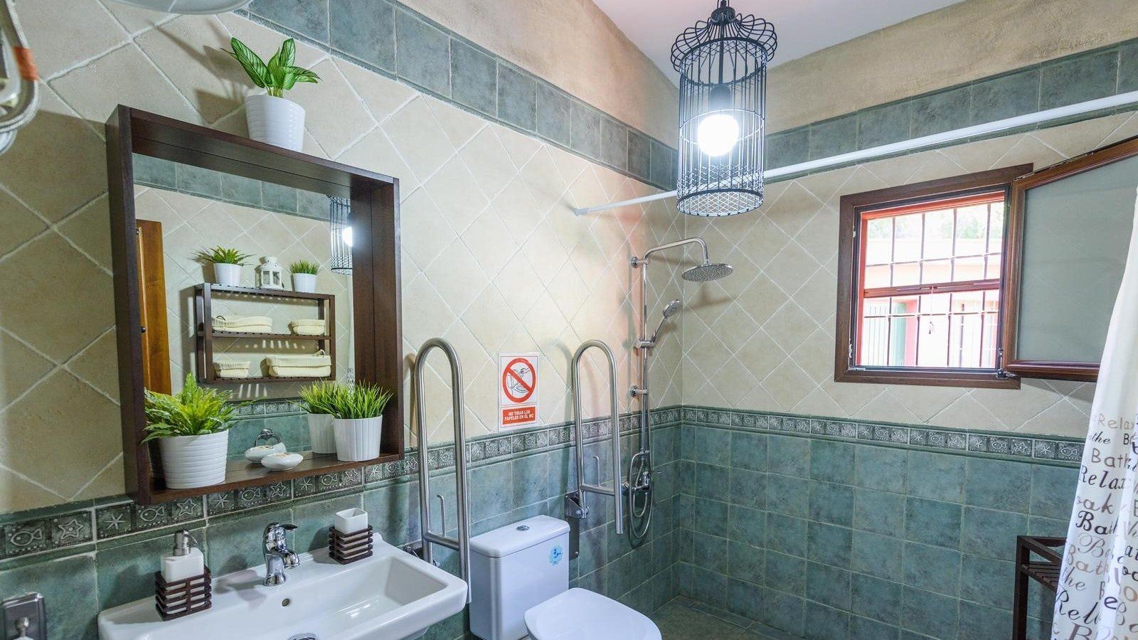 This south-facing home sits 150 metres above sea level, promising scenic views stretching far over the countryside to the distant shoreline. Inside and out, this villa has been designed for travellers with reduced mobility – offering an adapted rain shower and pool lift. Make a Spanish breakfast in the kitchen and spend your mornings beneath high ceilings in this bright living room. Whether you want to sunbathe on the lawn, play foosball on your terrace, or barbecue in the evening, this place truly considers what makes a happy holiday for everyone.