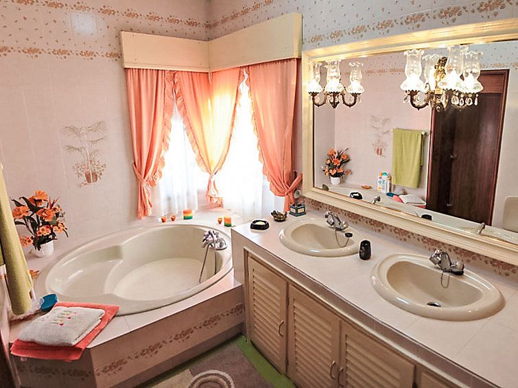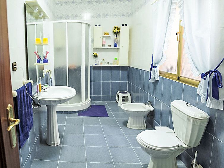 "Finca La Poza", 6-room house 300 m2. Spacious: dining room with TV and DVD. Living room with open-hearth fireplace. 1 room with 1 french bed (135 cm, length 190 cm), bath/bidet/WC (private). 1 room with 1 french bed (135 cm, length 190 cm). 1 room with 2 beds (90 cm, length 190 cm).