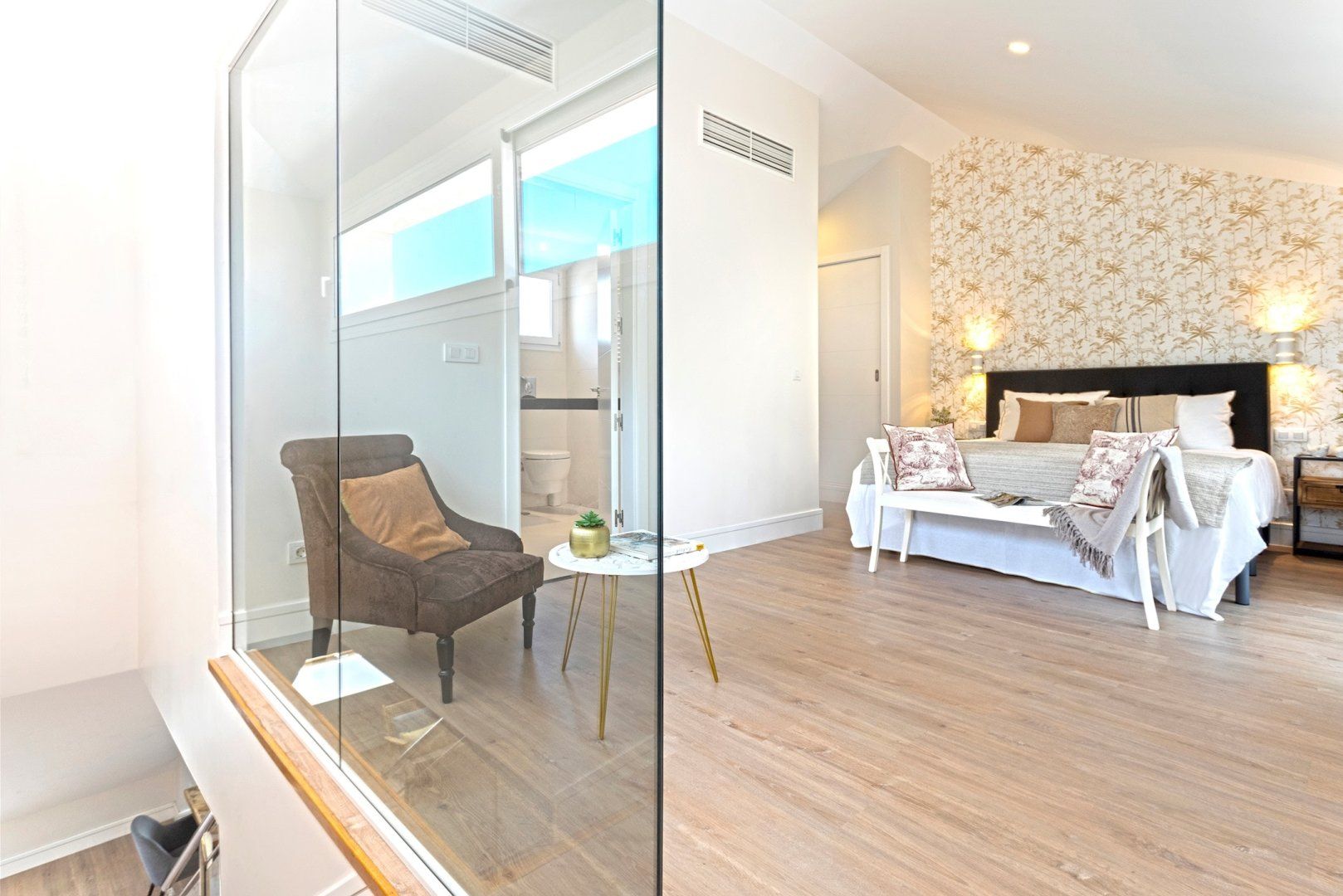 Inside the home, bright white walls let the contemporary furnishings, natural textures and botanical-inspired prints do the talking. There’s an open-plan living space with a comfy couch and a kitchen with everything you need for rustling up your favourite meals. When the sun starts to set, head out onto your private terrace with a platter of nibbles and a well-deserved glass of wine.