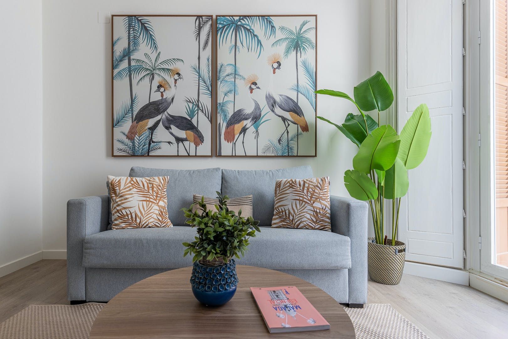 Home truths: *At full occupancy, two guests will be sleeping on the sofa bed in the living area. Bear in mind that it might feel a bit cramped with all four guests. *Given the home's central spot, expect to hear some street noise throughout your stay. *The bed linen and towels are changed every 7 days. *Your host doesn't accept groups of young people under 21. *Parking in Malaga can be tricky, so we recommend sticking to the easily accessible public transport where possible. It's also a very walkable city, with the main tourist attractions just a few steps away.