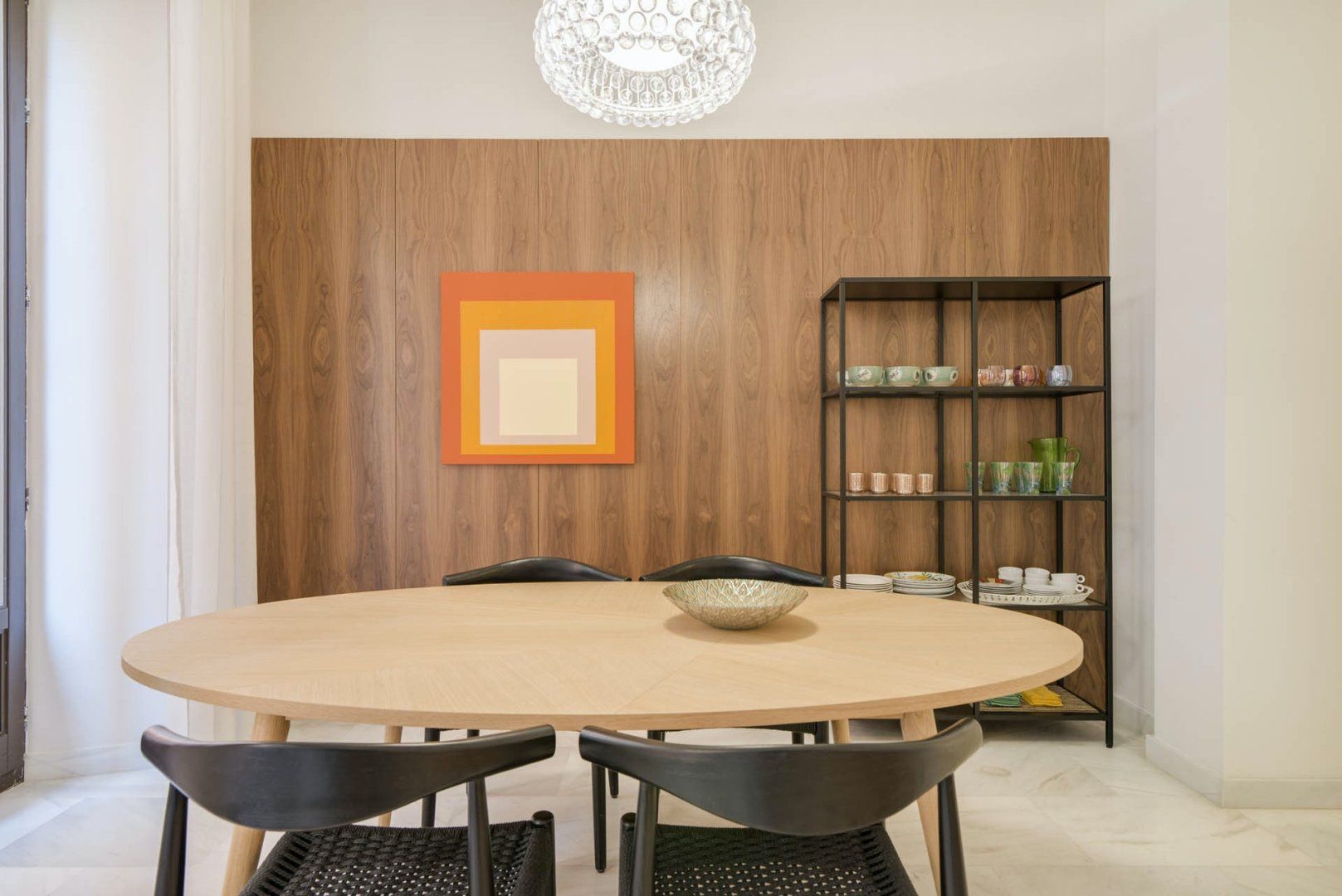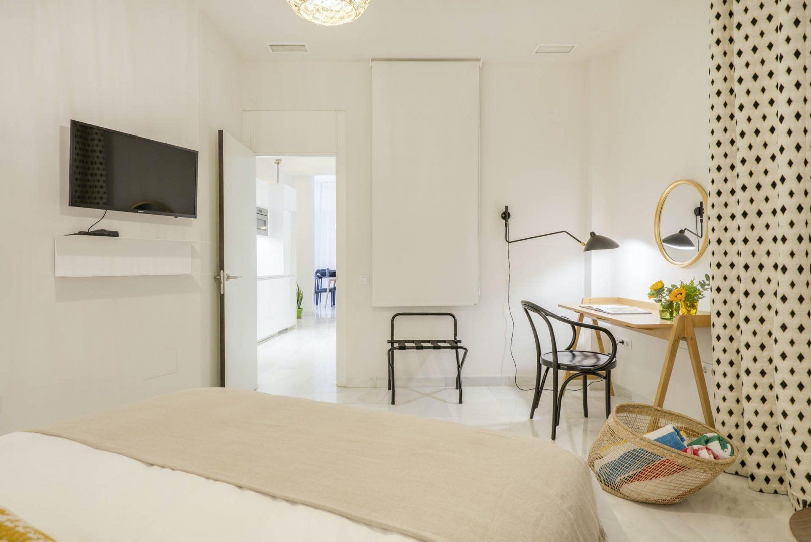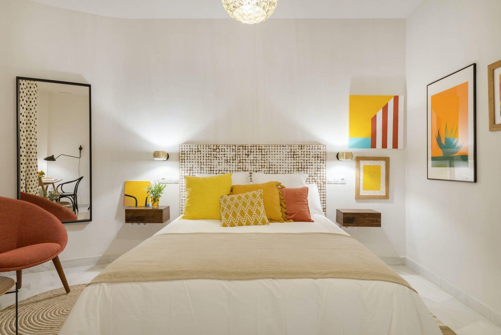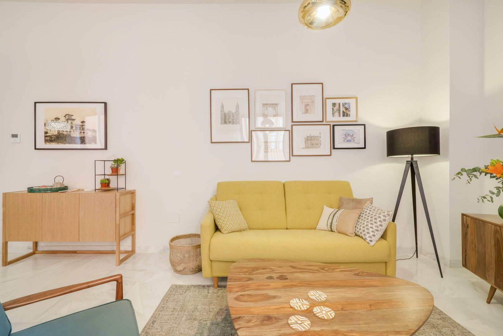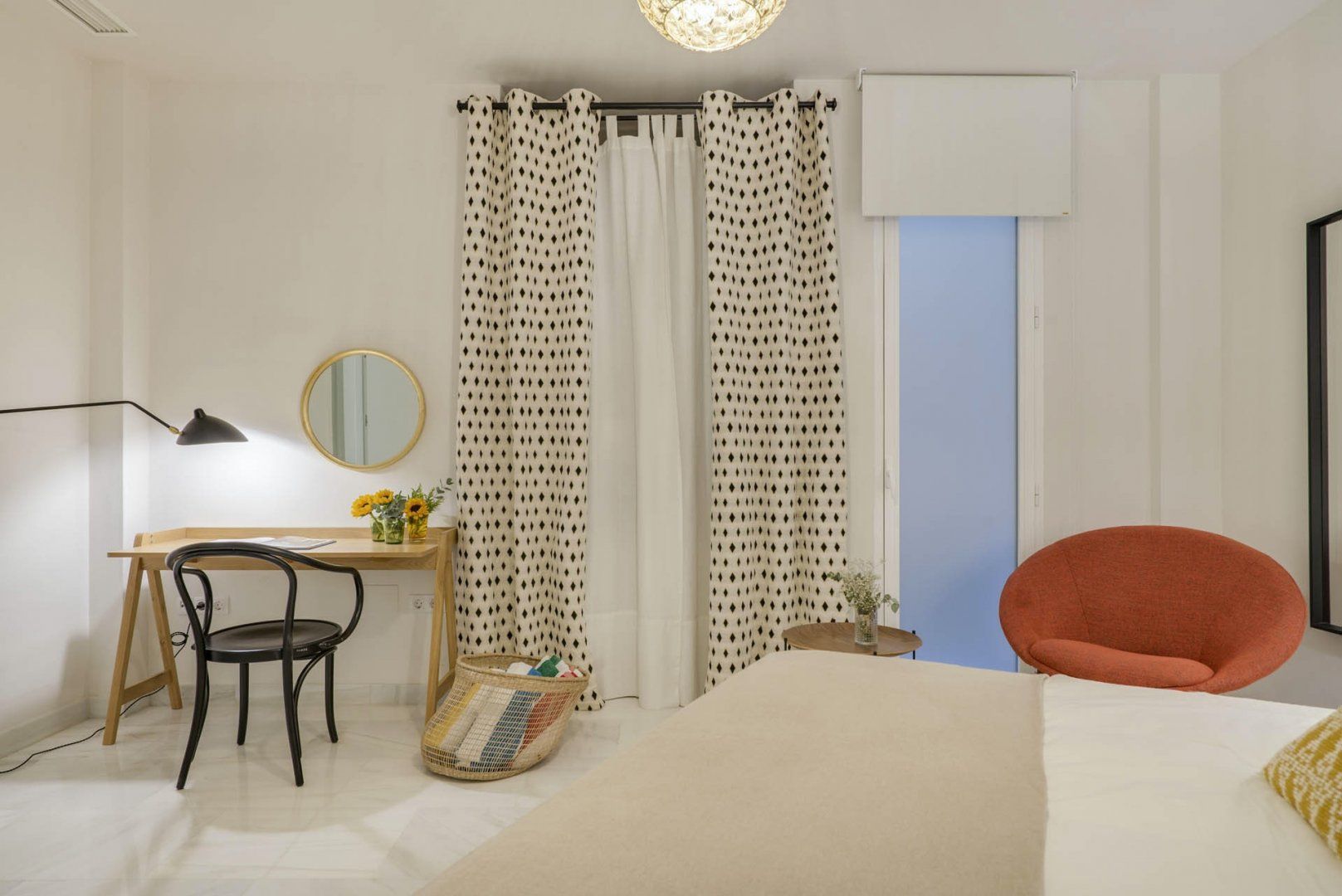 Back at home, chill out on the yellow sofa and rest weary legs after your busy day. Sunlight spills into the apartment from the quintessentially Andalusian floor-to-ceiling doors, which lead out onto quaint Juliet balconies. Although there's nowhere to sit, the view of the Cathedral's dome and spire is worth standing for.