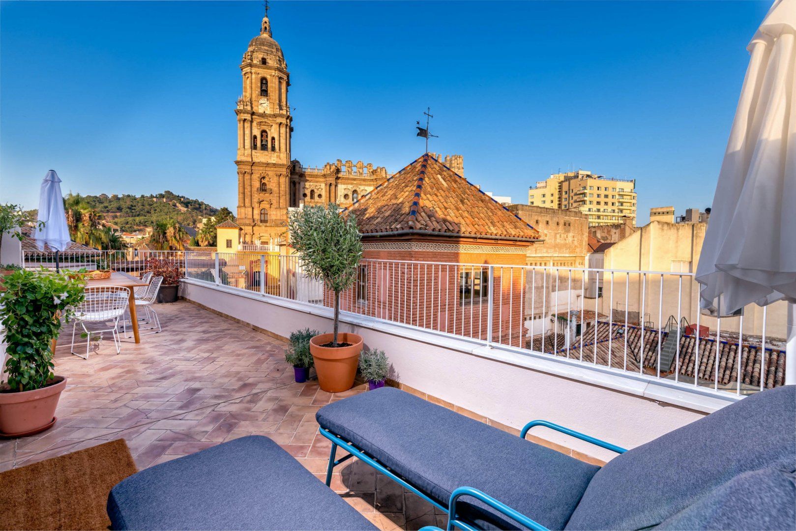 If you choose this charming penthouse apartment in Málaga's centre, you'll likely spend most of your time on the spectacular rooftop. Boasting views over the city and fully decked out with inviting seating and a dining table, this outdoor oasis will make you feel on top of the world – literally. We can't imagine a dreamier spot to soak up the Spanish sun.