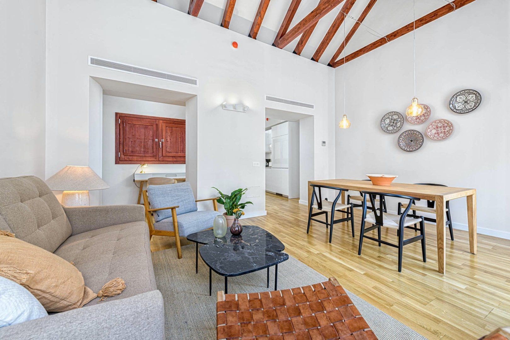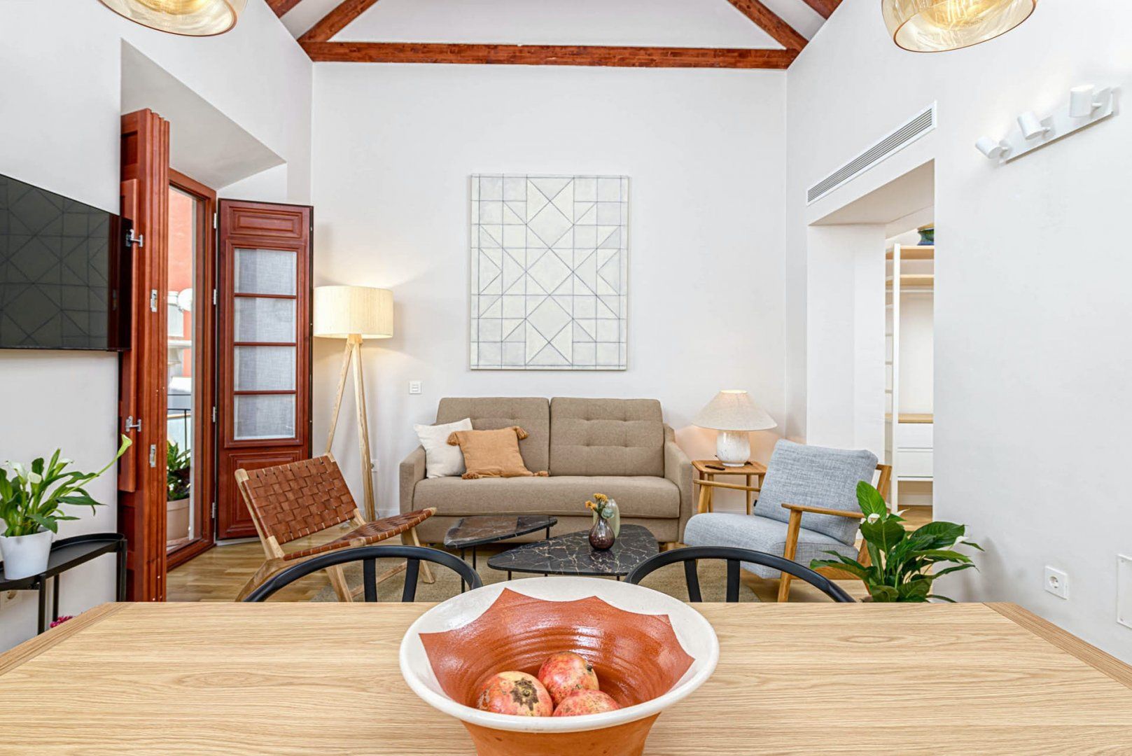 Come inside through the traditional Andalusian floor-to-ceiling doors to admire the exposed beams and vaulted ceilings as you sink into the sofa. Grab a bite in the compact kitchenette before handling a few work emails at the little workstation and head out after to explore the beautiful city. The Alcazaba fortress with lush gardens and a sea view is only a ten minute walk away. Stop off there for a backdrop to the perfect holiday group photos and head to the beach after for salty surf and sandy beaches.