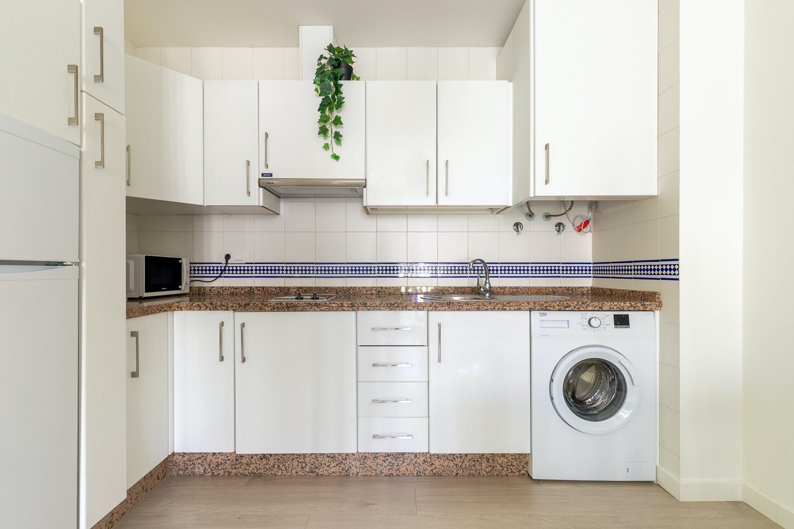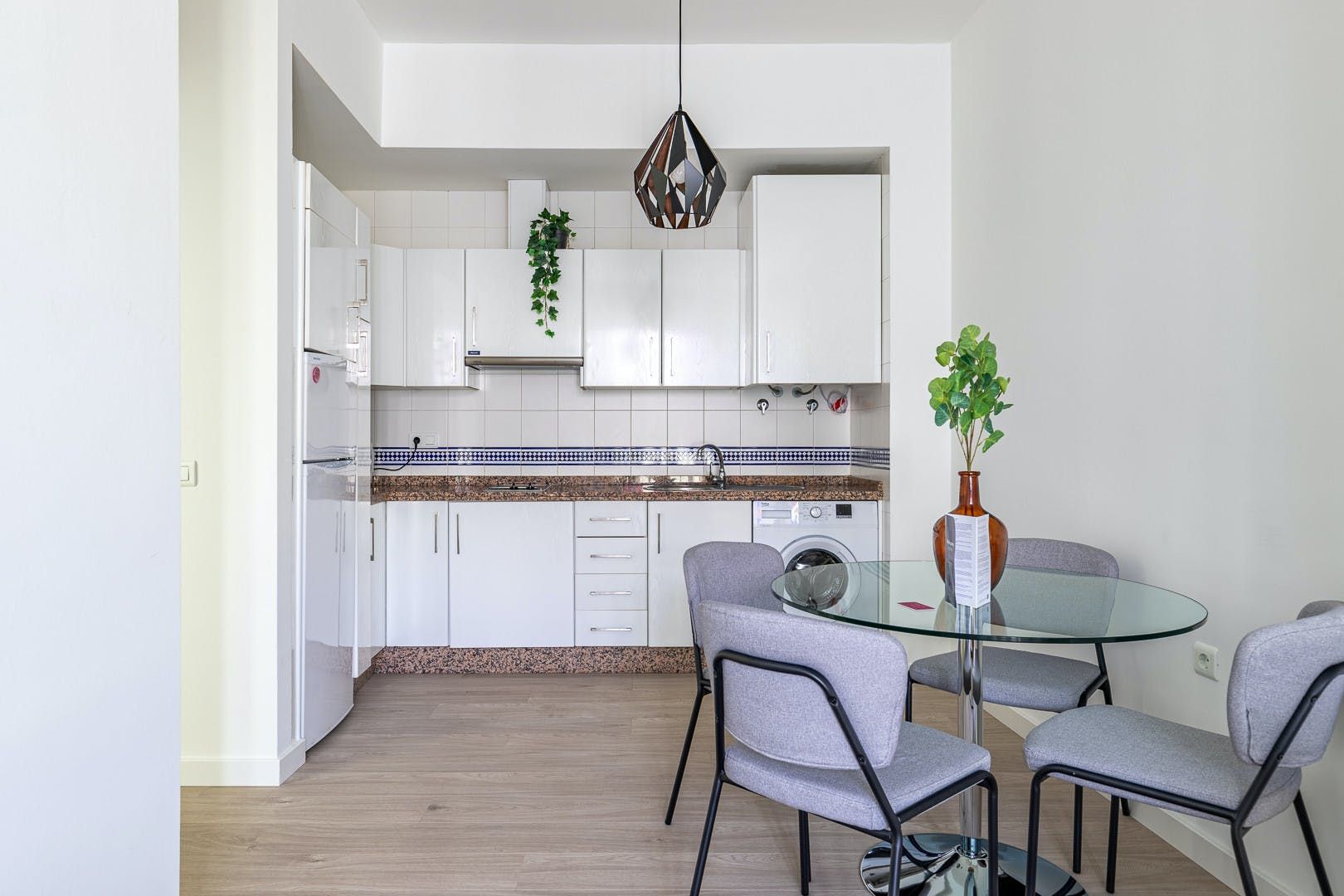 Home truths: *Parking in Malaga can be tricky, so we recommend sticking to the easily accessible public transport where possible. *This home is located within an apartment building with a shared entrance. *Given the home's central spot, expect to hear some street noise throughout your stay. *This home sleeps six guests, with the last two guests sharing a double sofa bed in the lounge space – if you’d like ample space for socialising, we’d recommend this home for four guests. *You won't find an oven here – though there is a hob. We think the kitchen is better suited to prepping lighter bites. *This apartment does not accept groups of young people (up to 21 years).