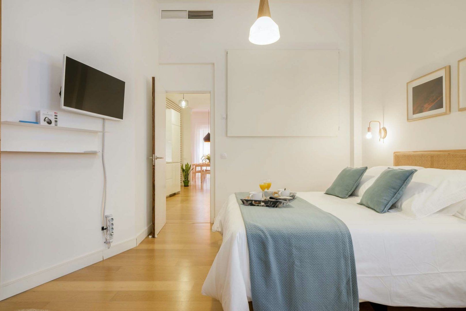 Back at home, the open-plan living area is the perfect place to unwind after a busy day of sightseeing. Throw open the French doors and breathe in the fresh air as you relax on the sofa, a book in one hand and a cool glass of wine in the other. There’s plenty of space to socialise here but if you need some peace and quiet, the master bedroom’s got you covered. Snuggle up under the bedsheets and treat yourself to a well-deserved nap before re-joining the party on the standing balcony, where views of the Cathedral are sure to make your night one to remember.