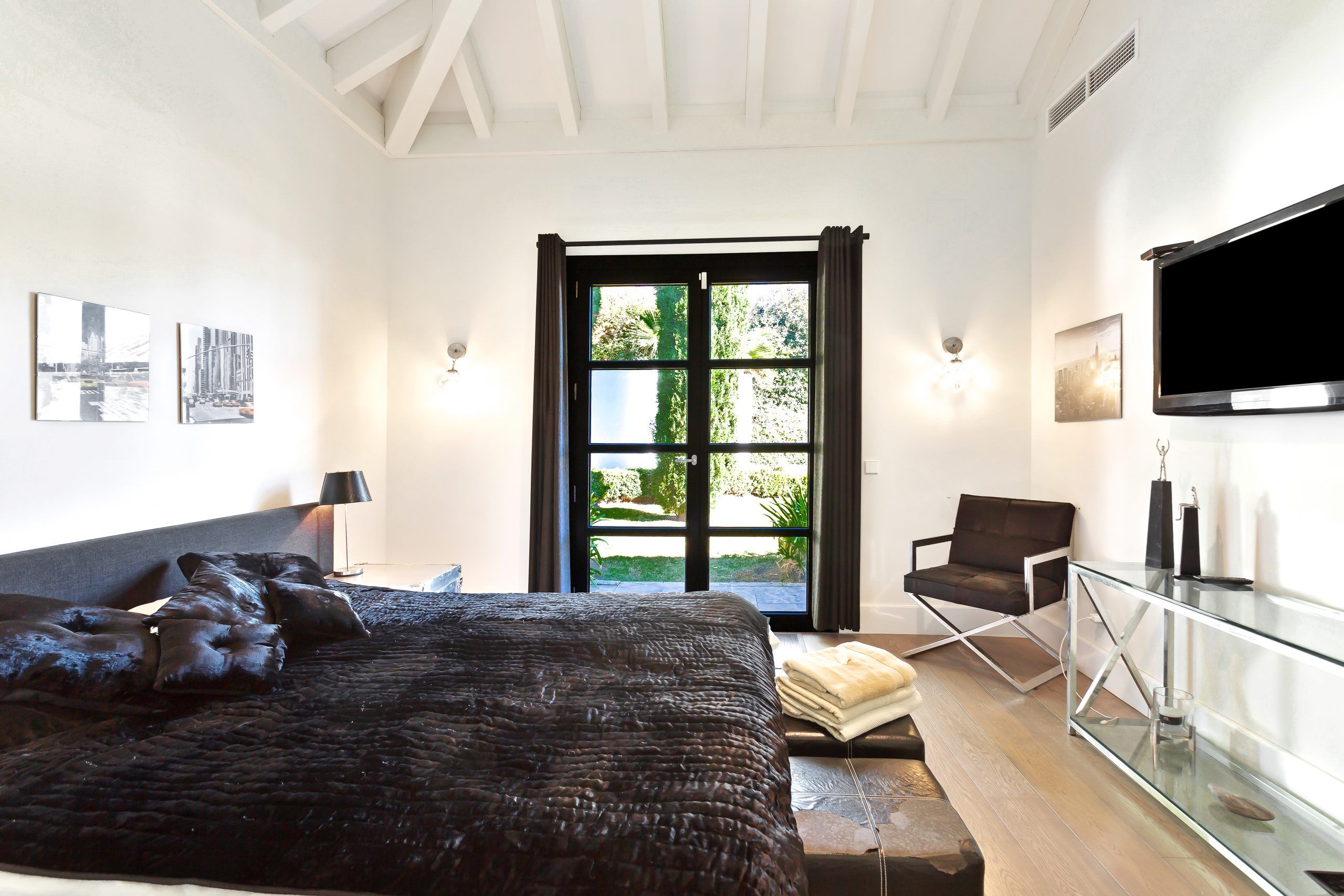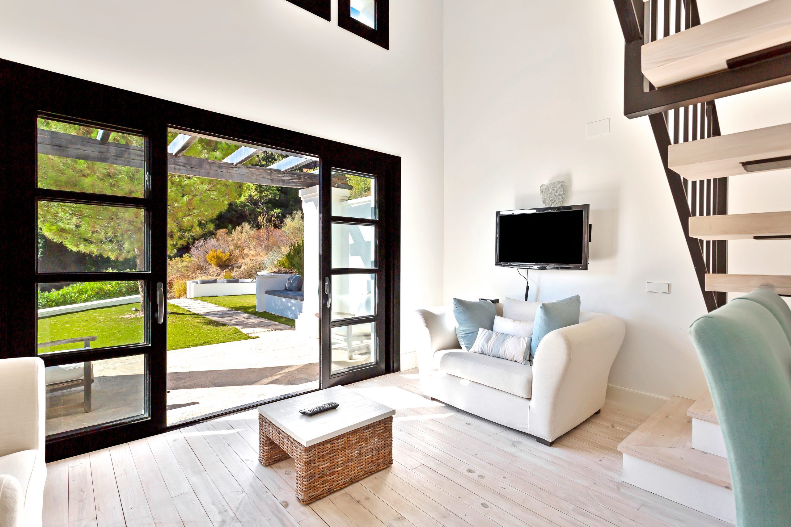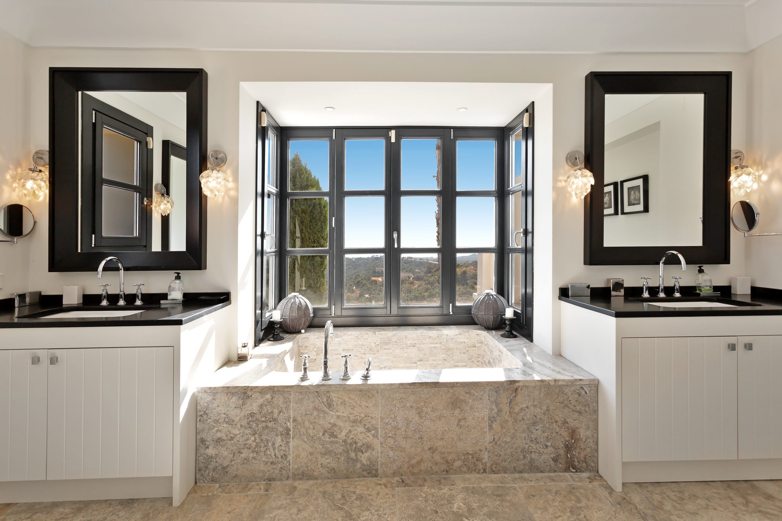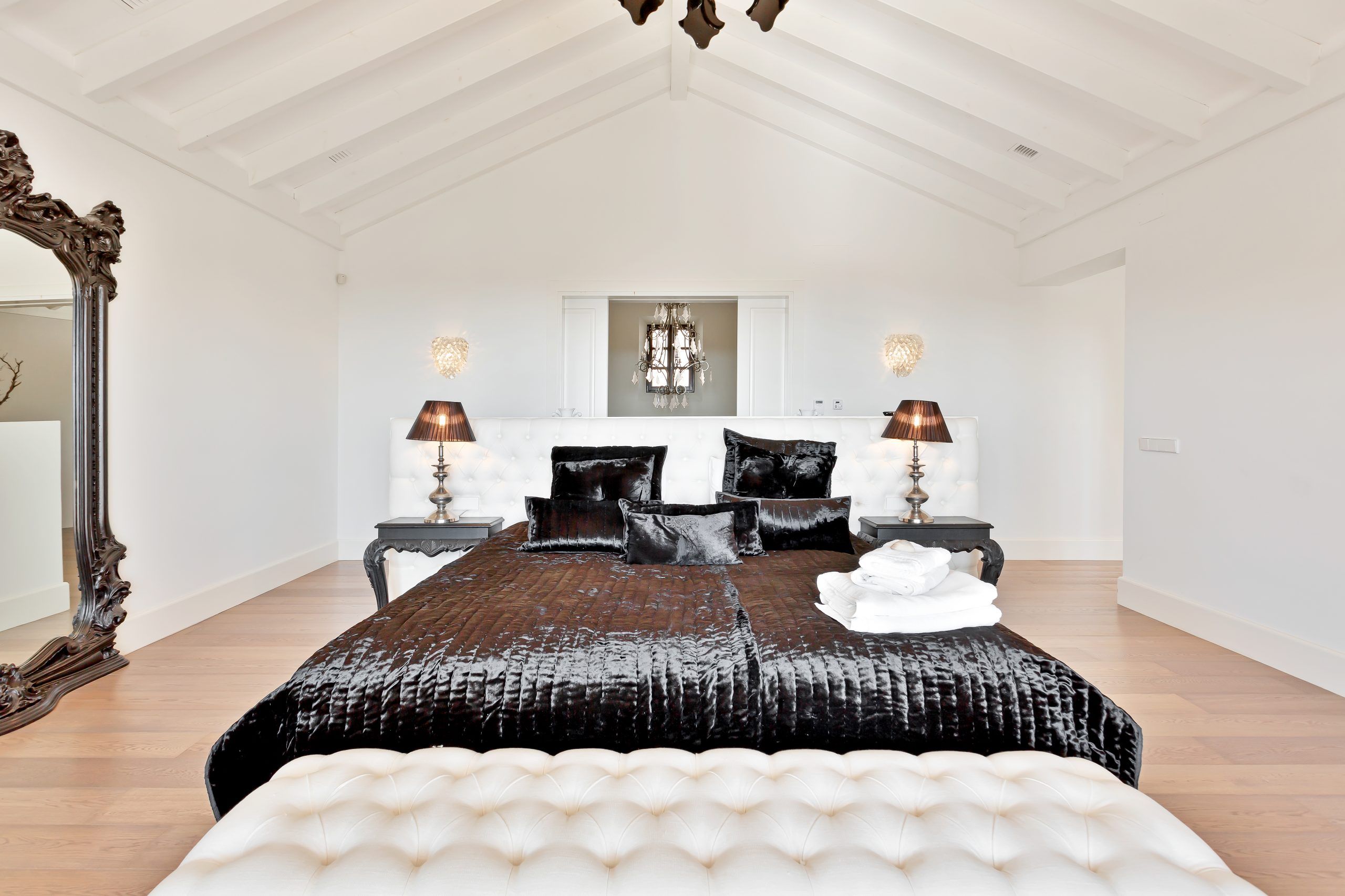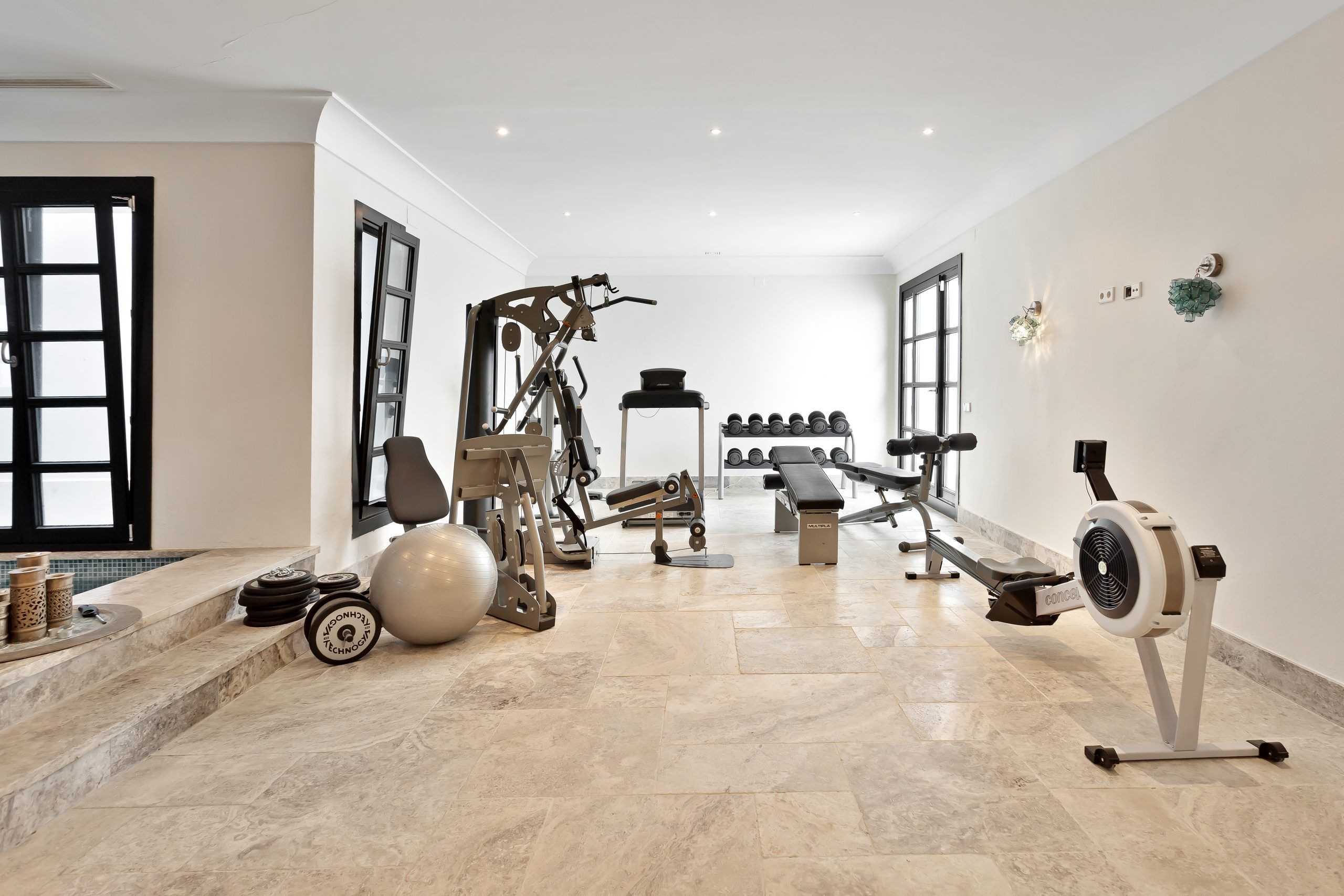 From the sea view terraces of this exclusive villa, you can see North Africa on a clear day. And in the south of Spain, clear sunny days are plentiful. It's a fifteen-minute drive to the coast for beaches and the glitzy centre of Marbella is twenty-five minutes in the car. This villa has so many luxurious touches that you might just stay put. Palm-fringed gardens are home to a lagoon-shaped infinity pool looking out over the mountains to the sea and there are myriad dining spots and terraces in the shade. While the main lounge inside is a grand affair with its upright piano and open fireplace, the highlight is the lower floor. Down here, there's a Moroccan-style cocktail bar, indoor swimming pool with a Jacuzzi, sauna and a yoga and fitness room. The casual cinema room with day beds just tops it all off.