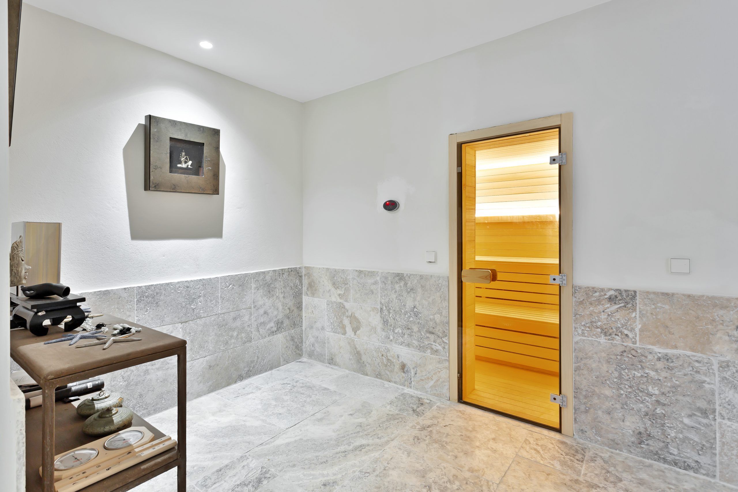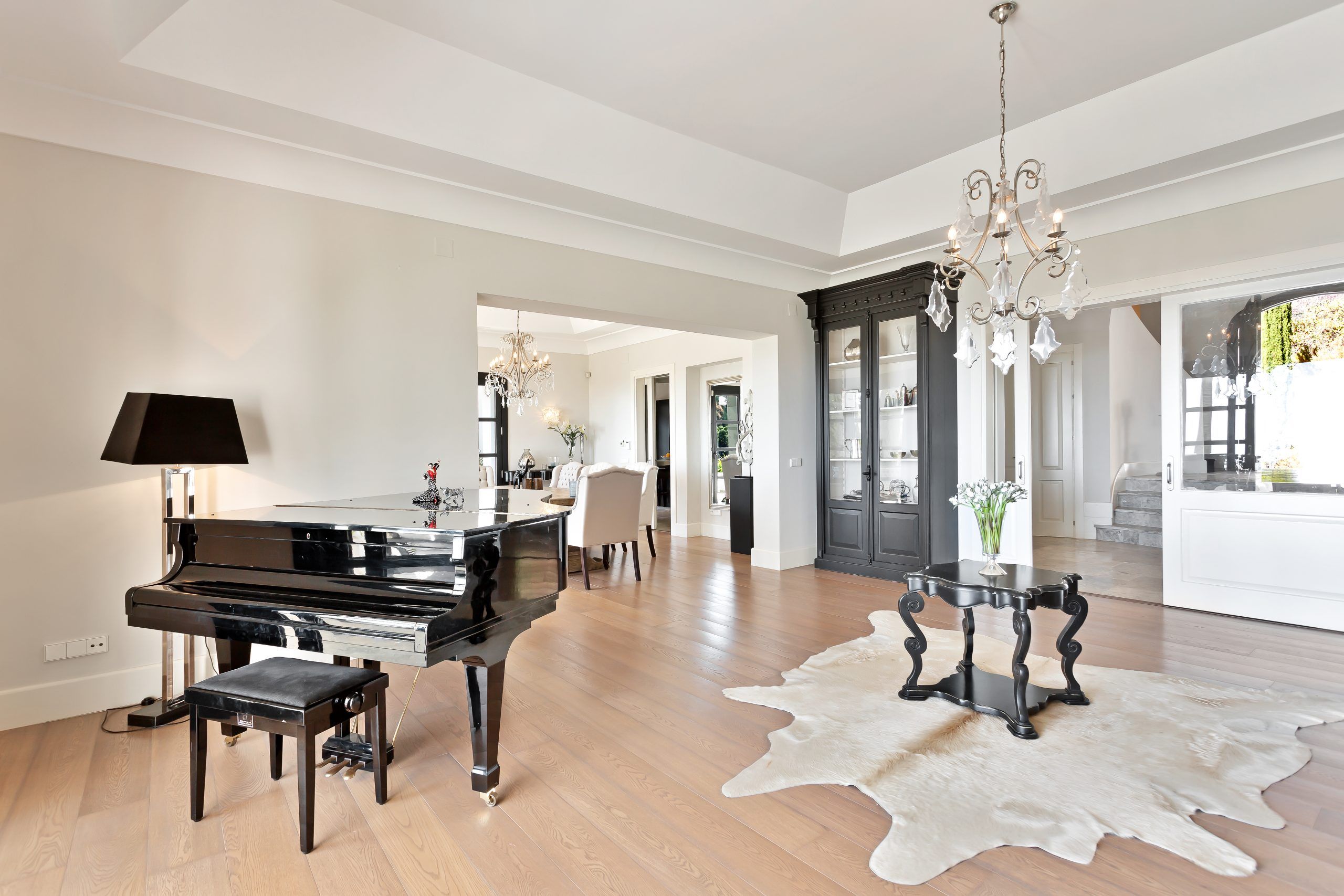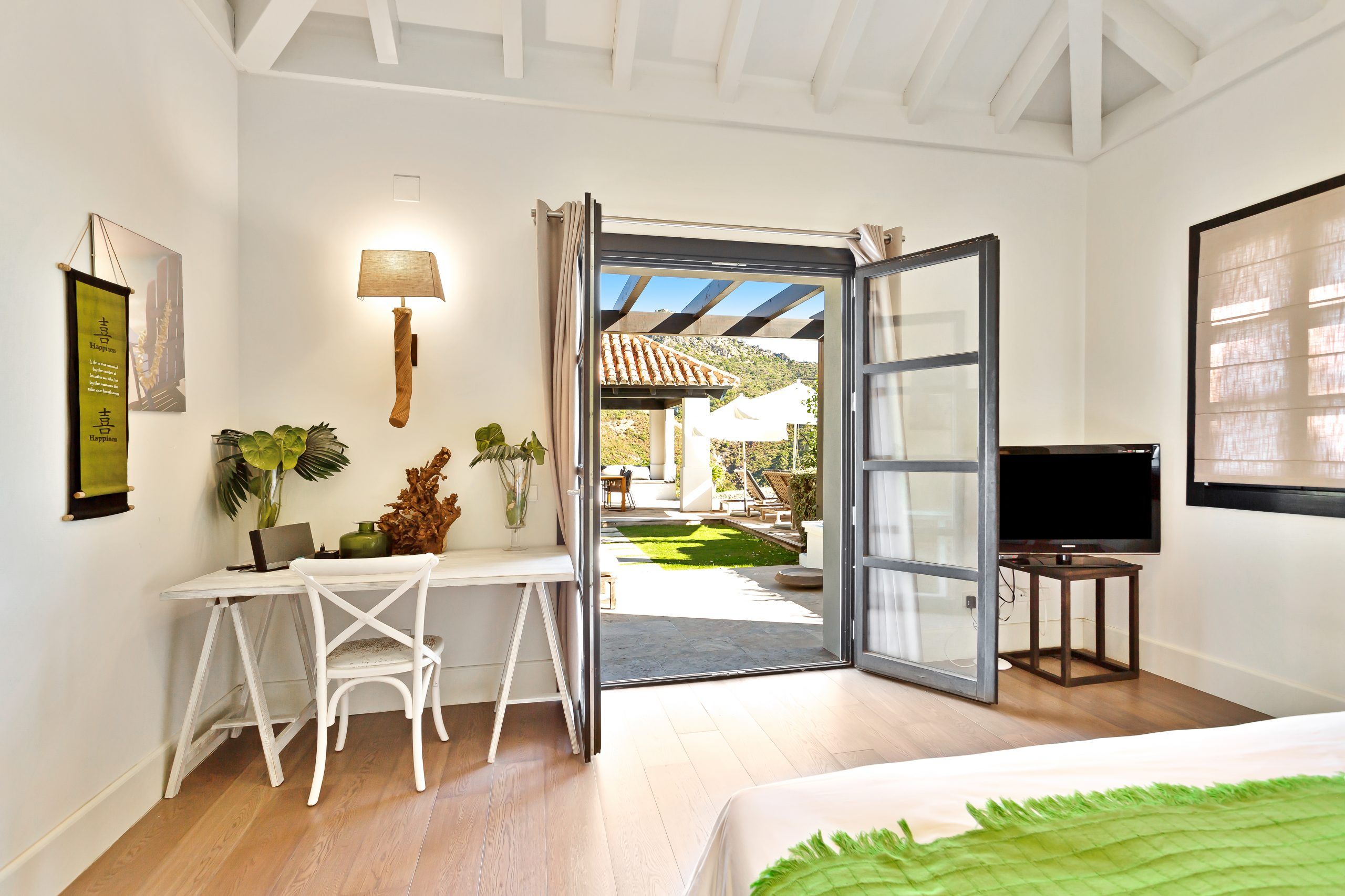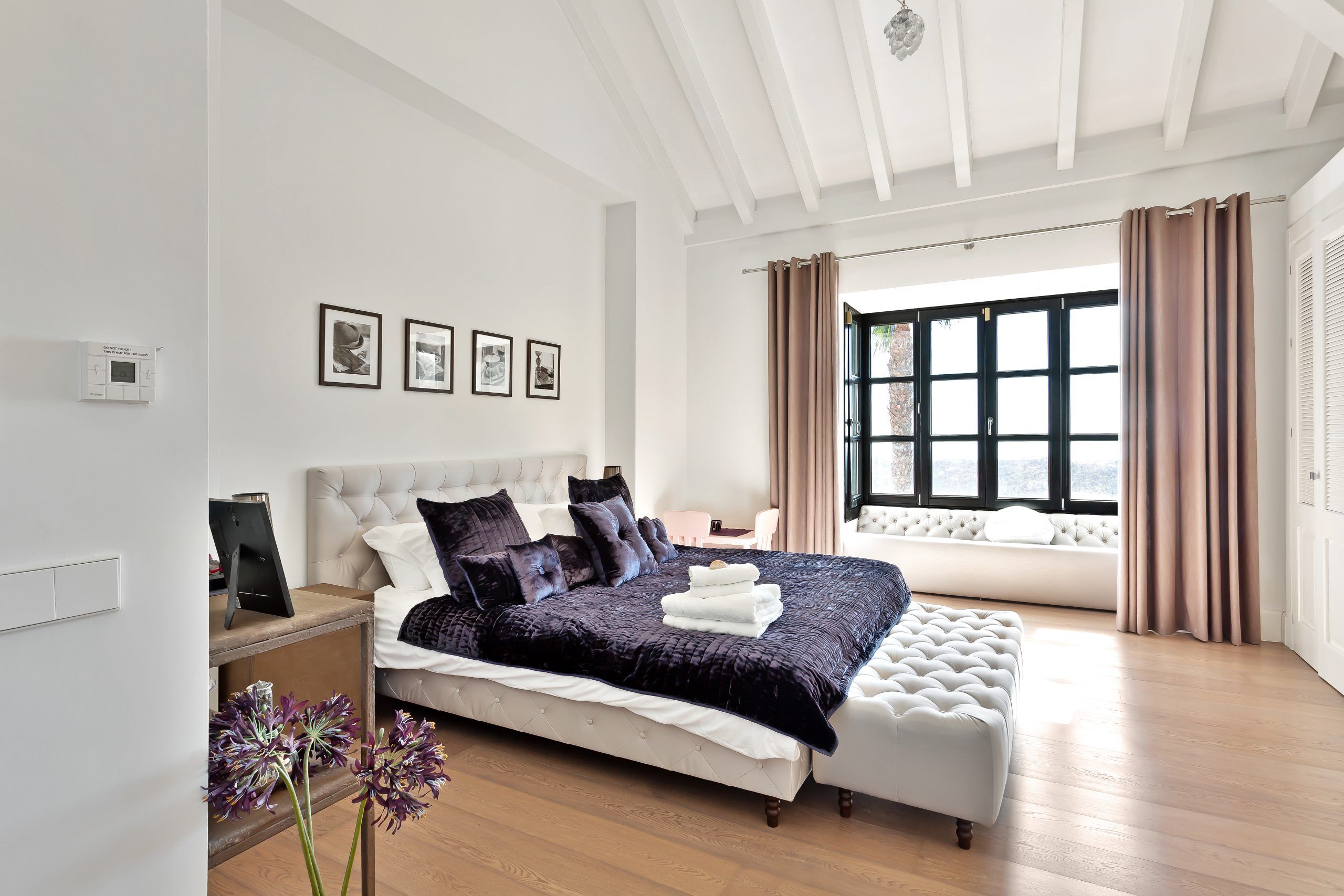 From the sea view terraces of this exclusive villa, you can see North Africa on a clear day. And in the south of Spain, clear sunny days are plentiful. It's a fifteen-minute drive to the coast for beaches and the glitzy centre of Marbella is twenty-five minutes in the car. This villa has so many luxurious touches that you might just stay put. Palm-fringed gardens are home to a lagoon-shaped infinity pool looking out over the mountains to the sea and there are myriad dining spots and terraces in the shade. While the main lounge inside is a grand affair with its upright piano and open fireplace, the highlight is the lower floor. Down here, there's a Moroccan-style cocktail bar, indoor swimming pool with a Jacuzzi, sauna and a yoga and fitness room. The casual cinema room with day beds just tops it all off.