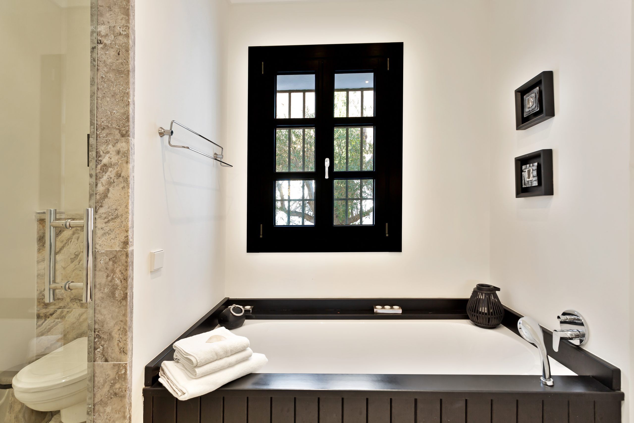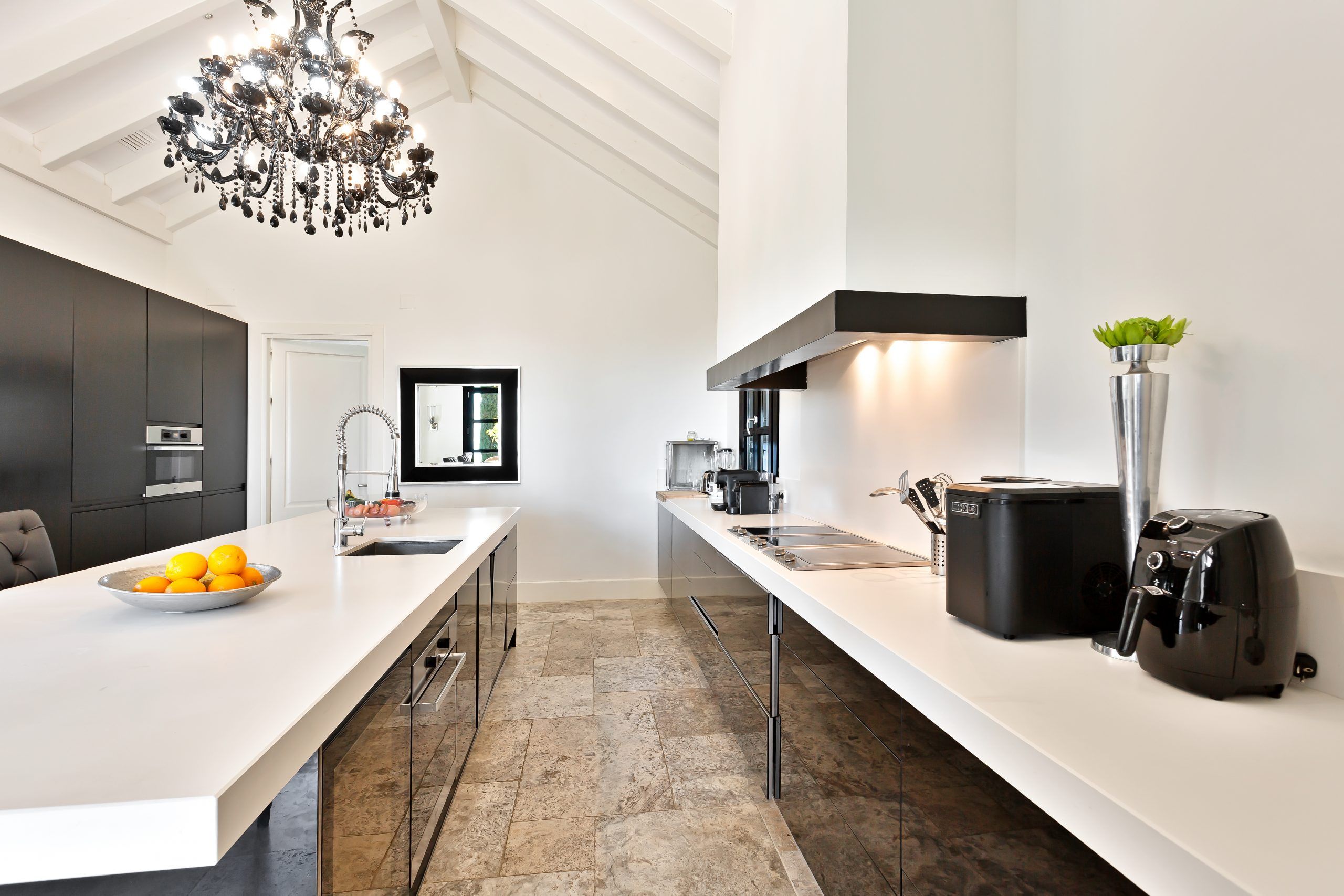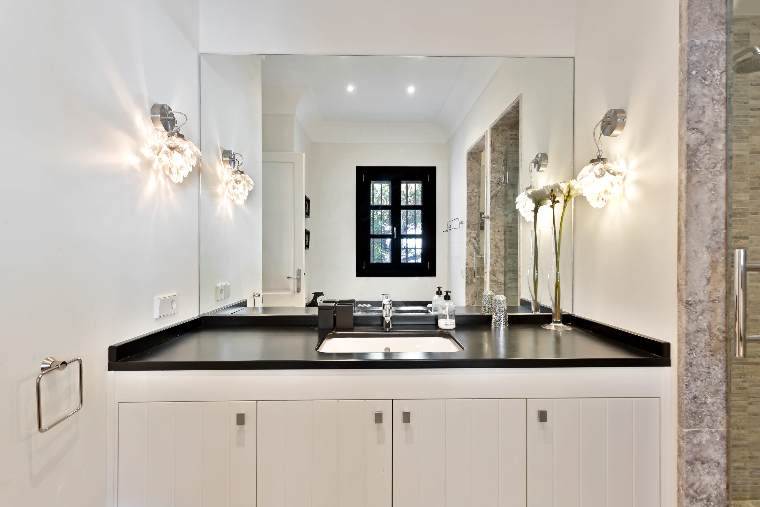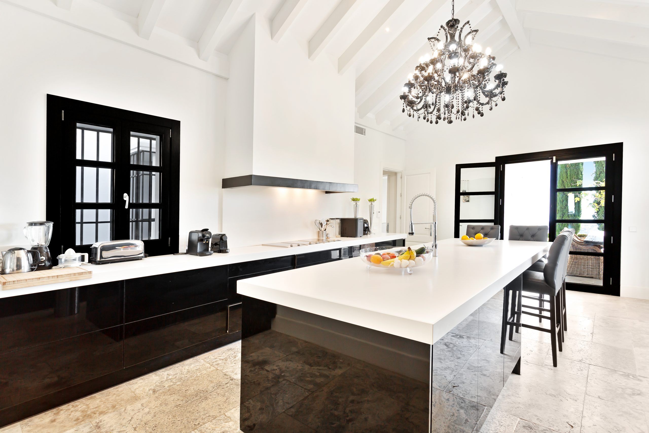 From the sea view terraces of this exclusive villa, you can see North Africa on a clear day. And in the south of Spain, clear sunny days are plentiful. It's a fifteen-minute drive to the coast for beaches and the glitzy centre of Marbella is twenty-five minutes in the car. This villa has so many luxurious touches that you might just stay put. Palm-fringed gardens are home to a lagoon-shaped infinity pool looking out over the mountains to the sea and there are myriad dining spots and terraces in the shade. While the main lounge inside is a grand affair with its upright piano and open fireplace, the highlight is the lower floor. Down here, there's a Moroccan-style cocktail bar, indoor swimming pool with a Jacuzzi, sauna and a yoga and fitness room. The casual cinema room with day beds just tops it all off.