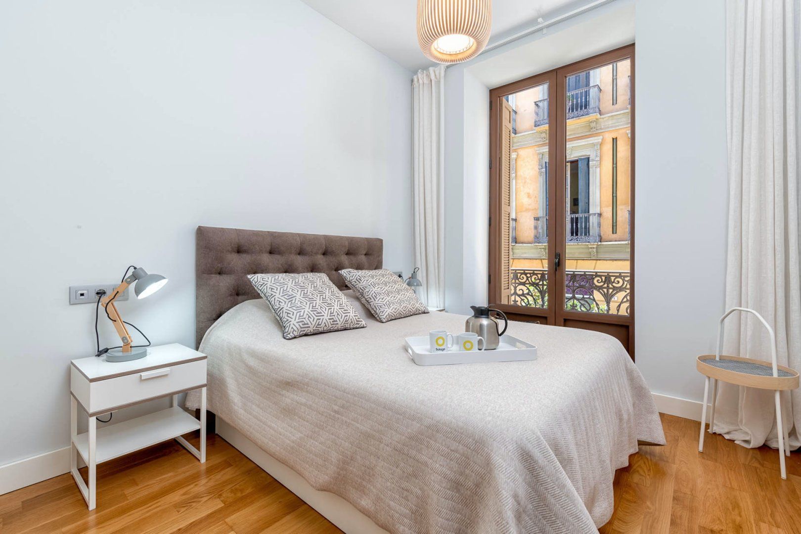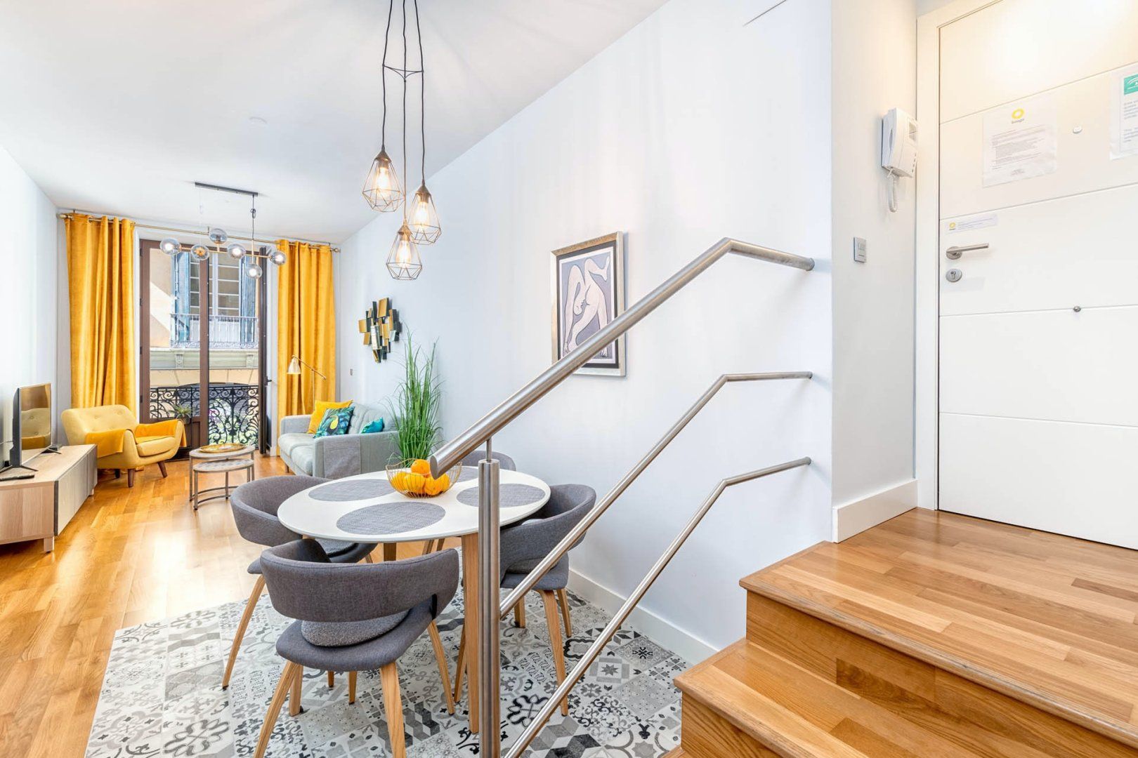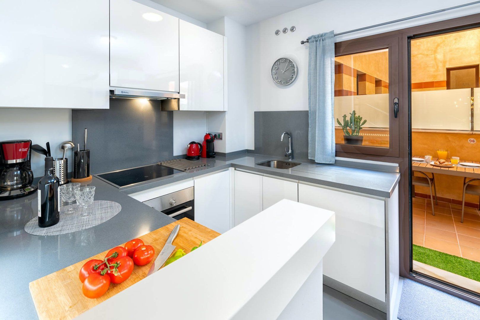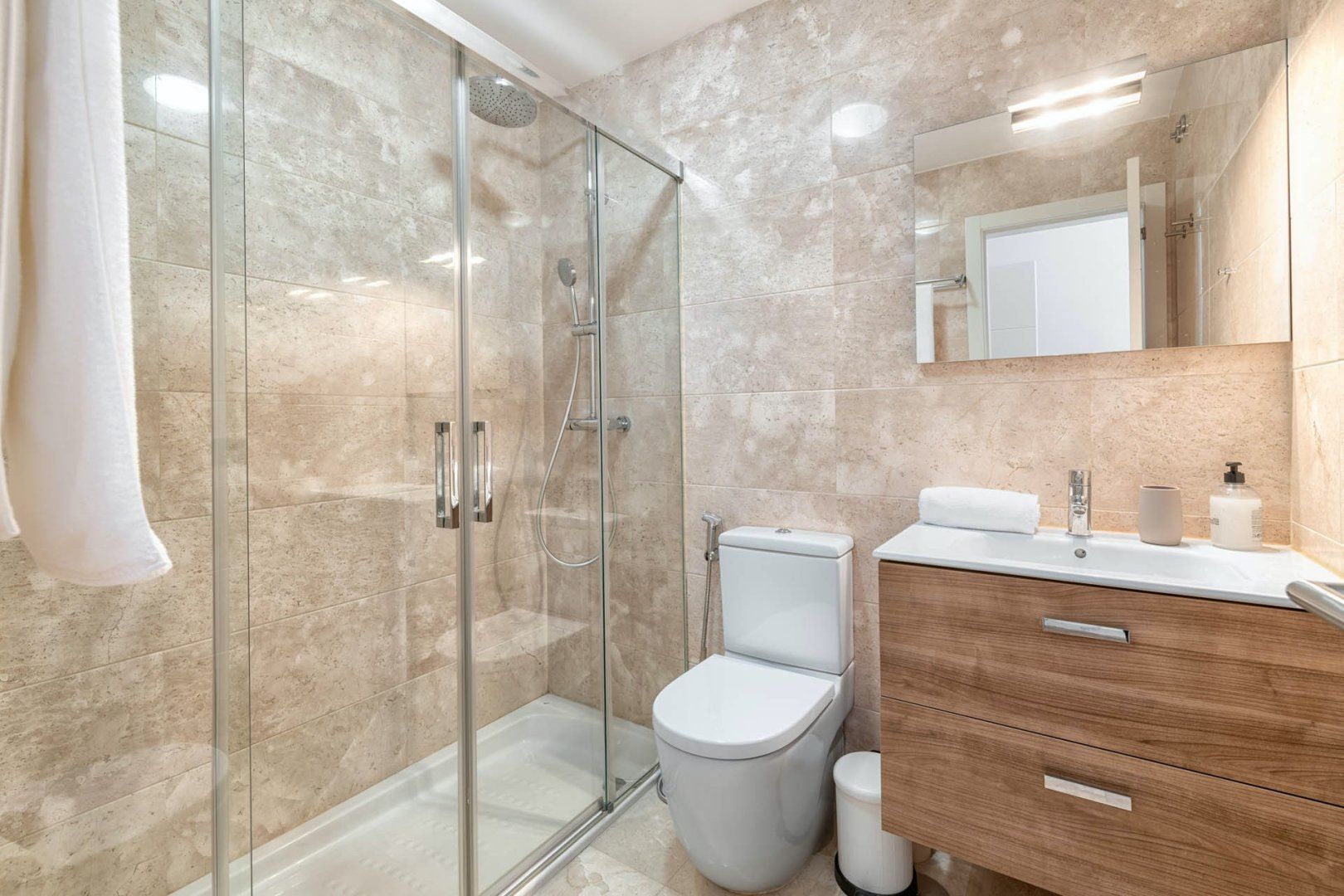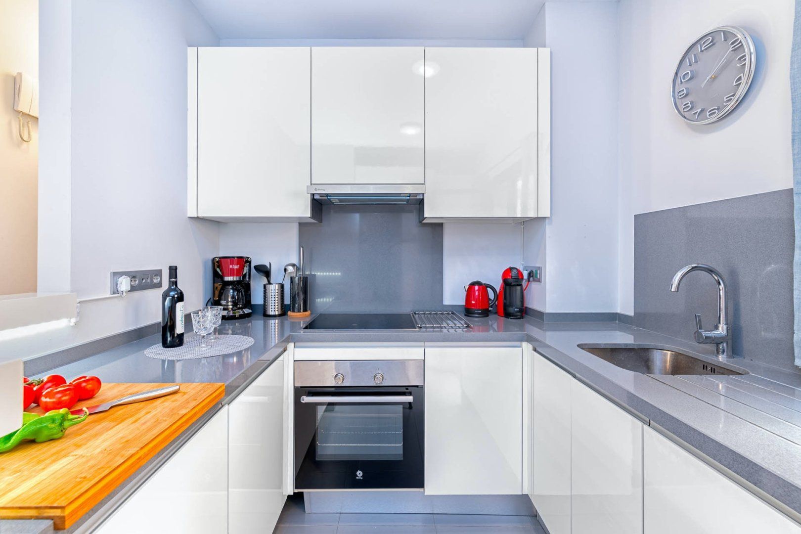 This cosy apartment adorned with vibrant yellow and stone grey furnishings awaits you for a stylish city break to Malaga. Snuggle up on the sofa with your loved ones as you watch a movie on the TV, followed by tucking into a delicious homecooked meal at the circular dining table, washed down with a glass of wine. The kitchen offers direct access to the balcony, allowing you to dine alfresco or indoors – we recommend enjoying a bite out here during the evening hours as the amber glow of the sunset shines upon the building. The master bedroom provides a charming view of the surrounding Spanish architecture as well as the local streets below.