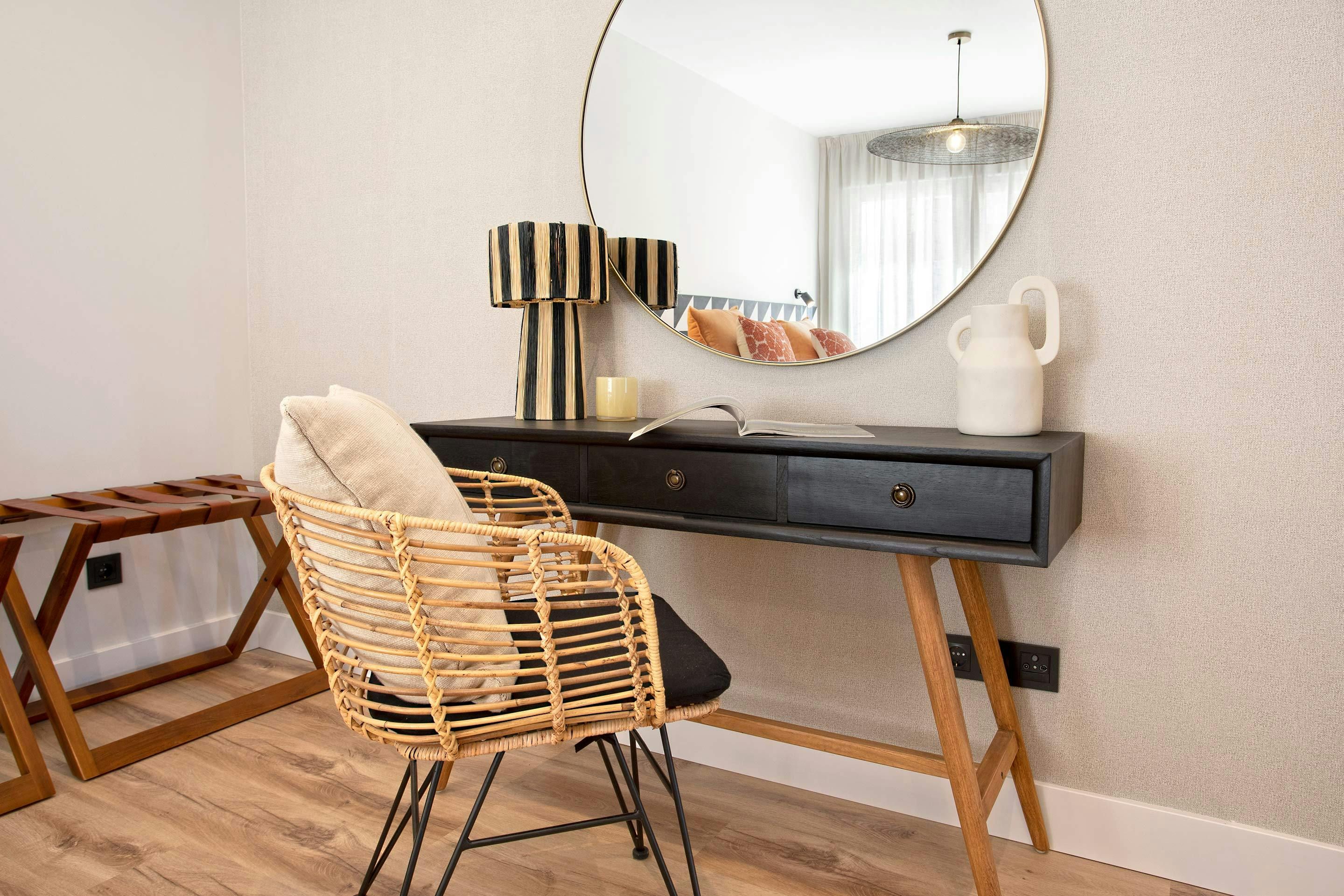 With wonderful views over Málaga and the Mediterranean Sea beyond, this apartment is a great place to stay. You can relax on the small balcony with a drink at sunset or unwind in the large and bright open-plan living space. And if you need to work while away, there are several desks here – this place has everything you need. Another highlight is the location, of course. A variety of landmarks and attractions are a short stroll away, including the Museo Picasso and the Alcazaba.
