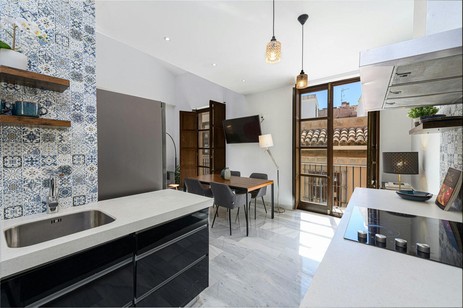 Situated in Malaga's old town, this home's street takes its name from the freshwater wells that provided water to the many convents in the area. Anyway, the location is highlight number one. The second is this apartment's roof terrace (reached via a spiral staircase) with views over the city's rooftops and churches – the perfect spot for cocktails. Inside, we love the open-plan living space with its double-height ceiling, and the Juliet balconies make the area light and bright. You're bound to hear some city noise here, but with such a great address as this, we think it's a small price to pay.