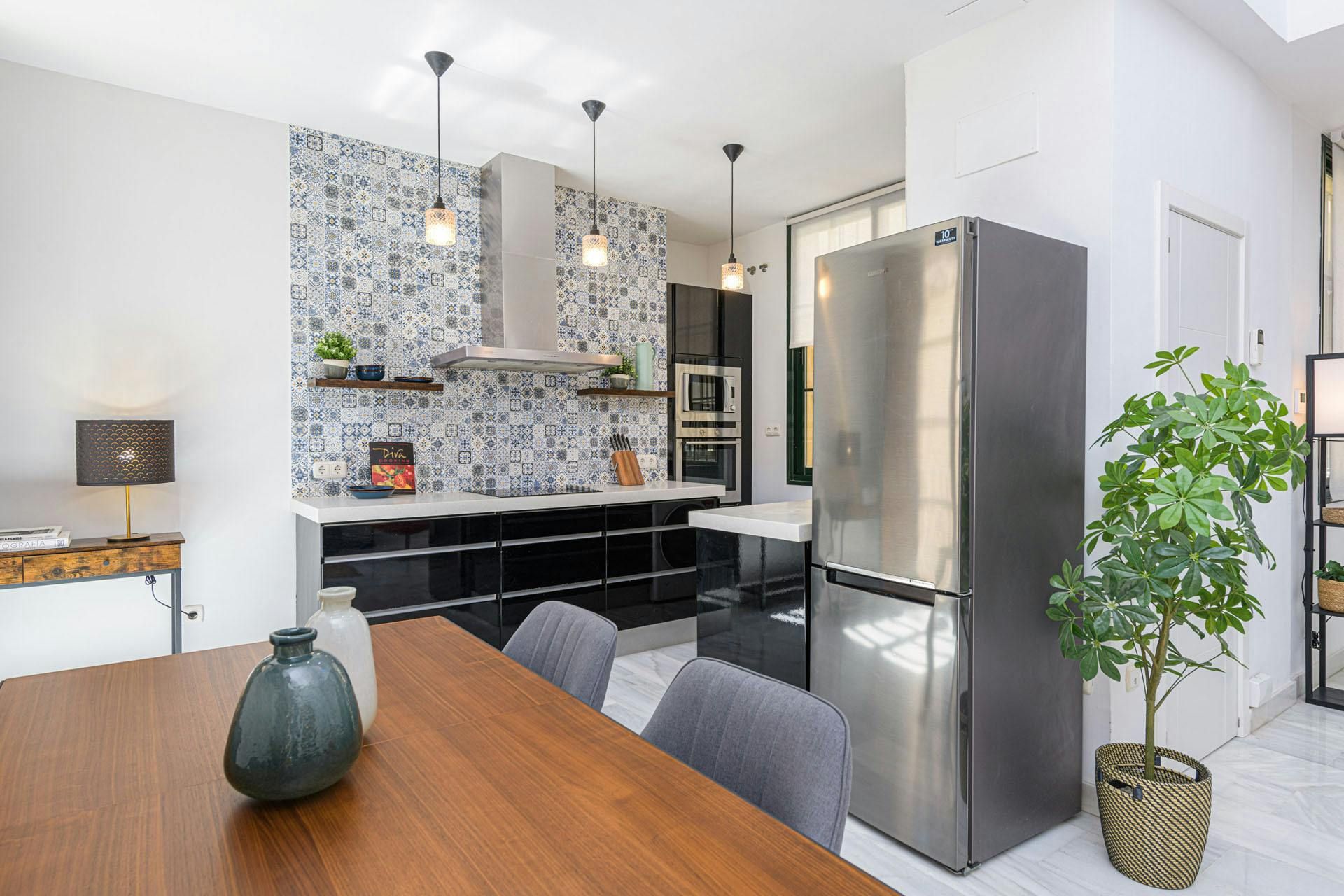 Home truths: *There's no lift here. You'll need to be able to climb stairs to reach the entrance of the home. There are also stairs to the roof terrace. *There's high-speed wi-fi here and a desk if you need to catch up on work while away. *Given the home's central spot, expect to hear some street noise throughout your stay. *The nearest beach is La Malagueta, 2 kilometres away, while the closest supermarket is 250 metres from this home. *Malaga Costa del Sol airport is 12 kilometres away. *Please note that the entrance to this home is on a narrow lane with street art. *The communal areas of this building might appear a little worn and dated in parts.