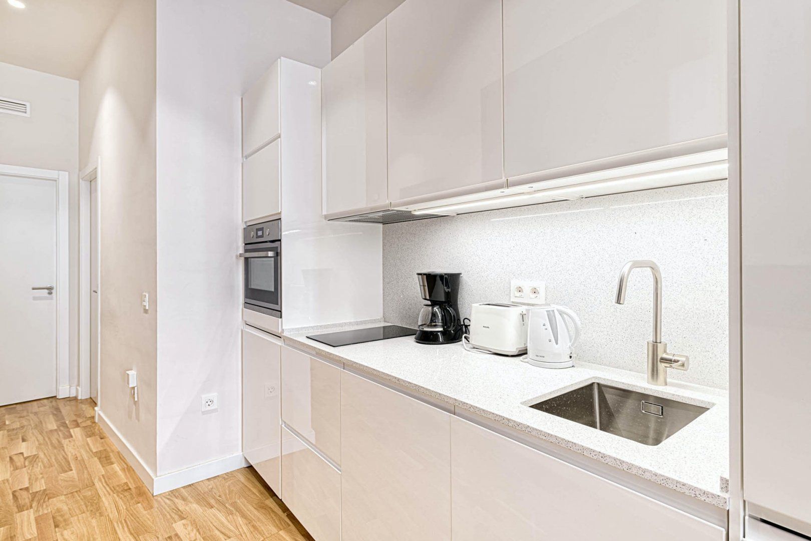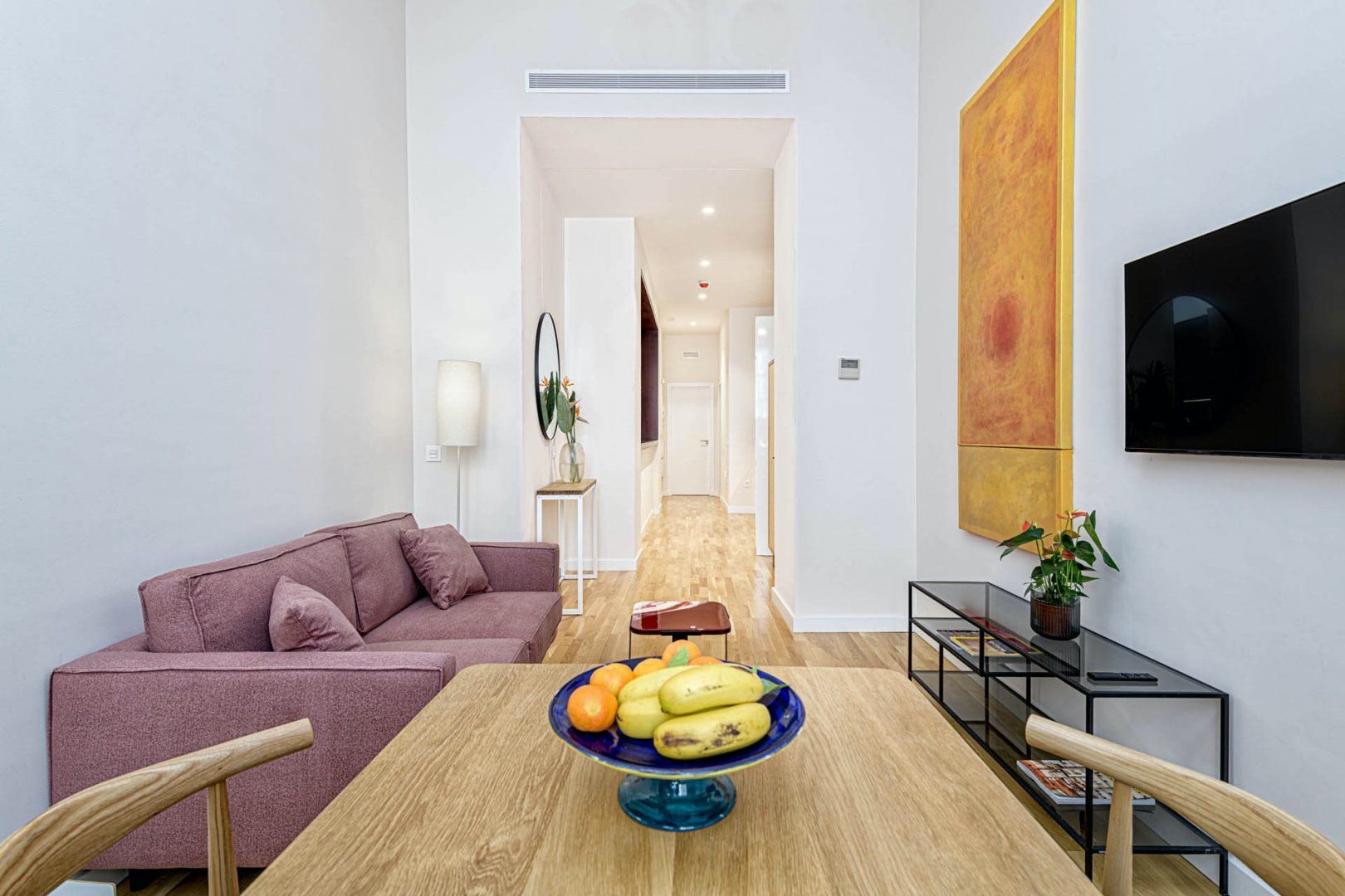 When you're not out exploring, unwind from the day's adventures in your Andalusian oasis. With the floor-to-ceiling doors open and the sun shining through, it's the definition of relaxation. Although the style is a picture of modernity, you can still spot some Spanish influences in the warm peachy hues and original tiled balconies. Our favourite room has to be the open living room – you can cosy up on the dusty rose sofa with a glass of sangria and nibble on freshly prepared tapas amongst the Rothko-inspired artwork. And as evening comes around, settle on the balcony overlooking the charming streets below.