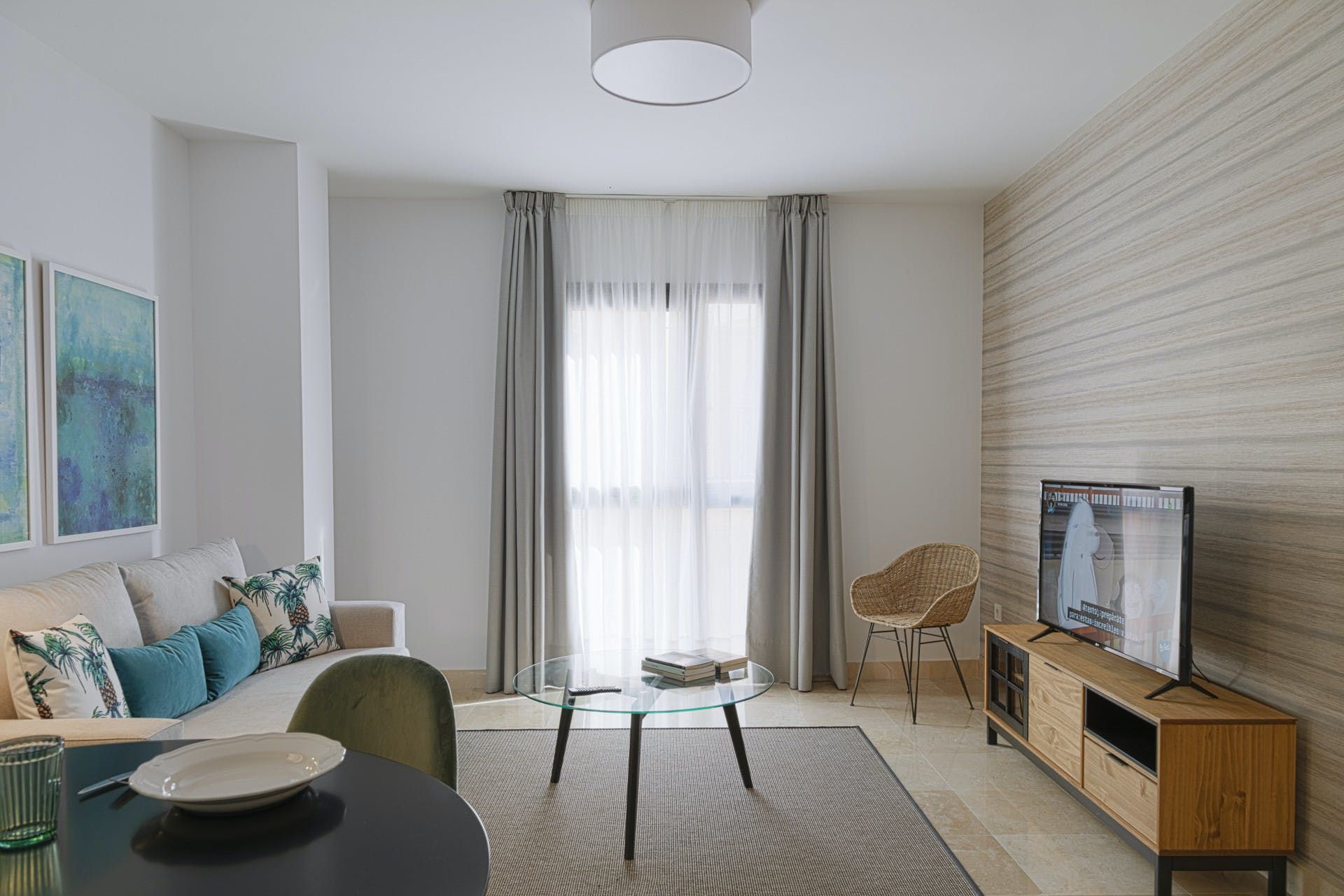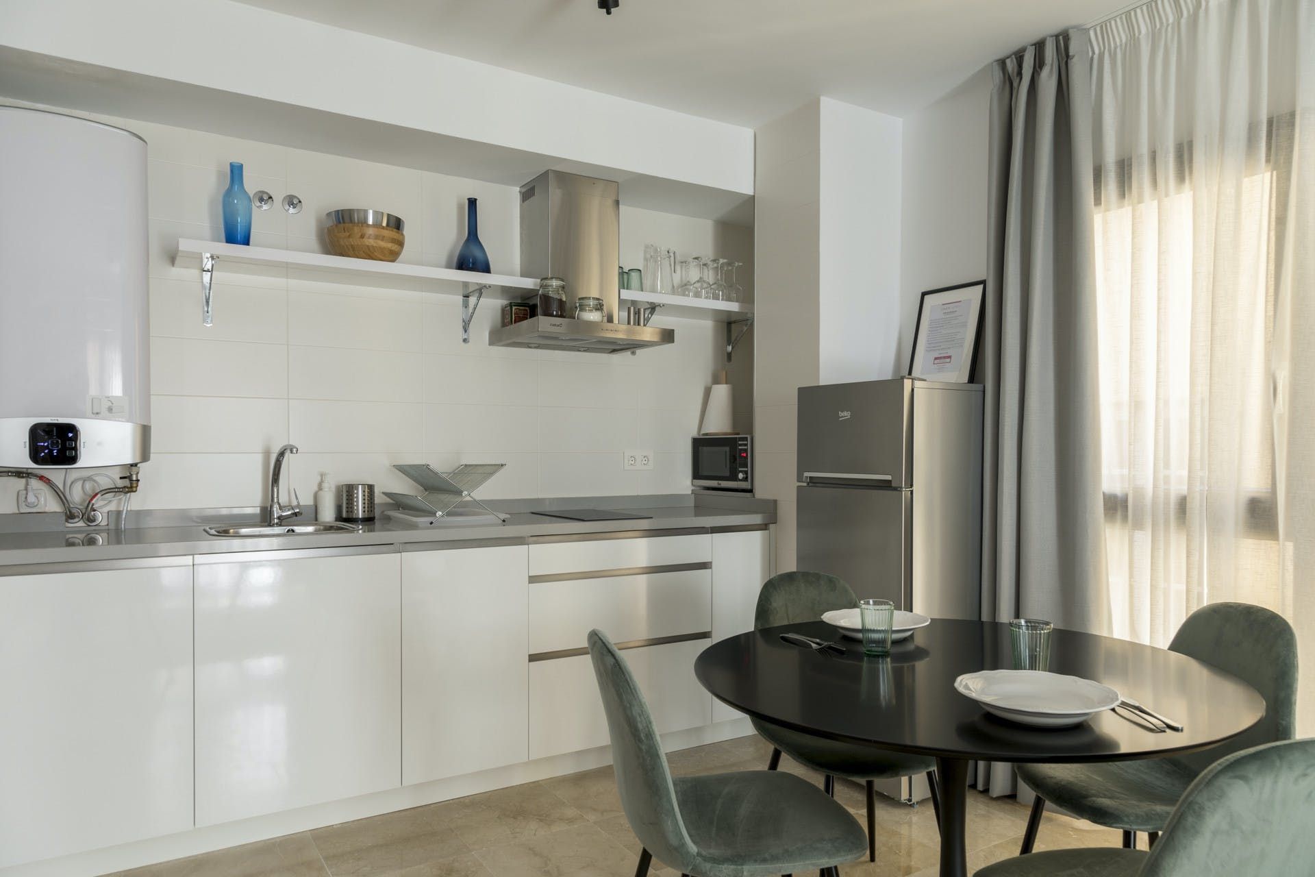 Sitting right next to Mercado del Carmen – famed for its tapas – and within walking distance of the Alcazaba de Málaga, this practical apartment doesn’t have too many bells and whistles, but its centrality and functionality tick a lot of boxes. A sofa bed in the living area offers flexible sleeping arrangements and the communal rooftop terrace is a nice touch too. The kitchen isn’t the biggest here, so you’ll want to take advantage of the many restaurants and bars nearby, and if you’re looking to explore further afield, the apartment offers handy paid parking.