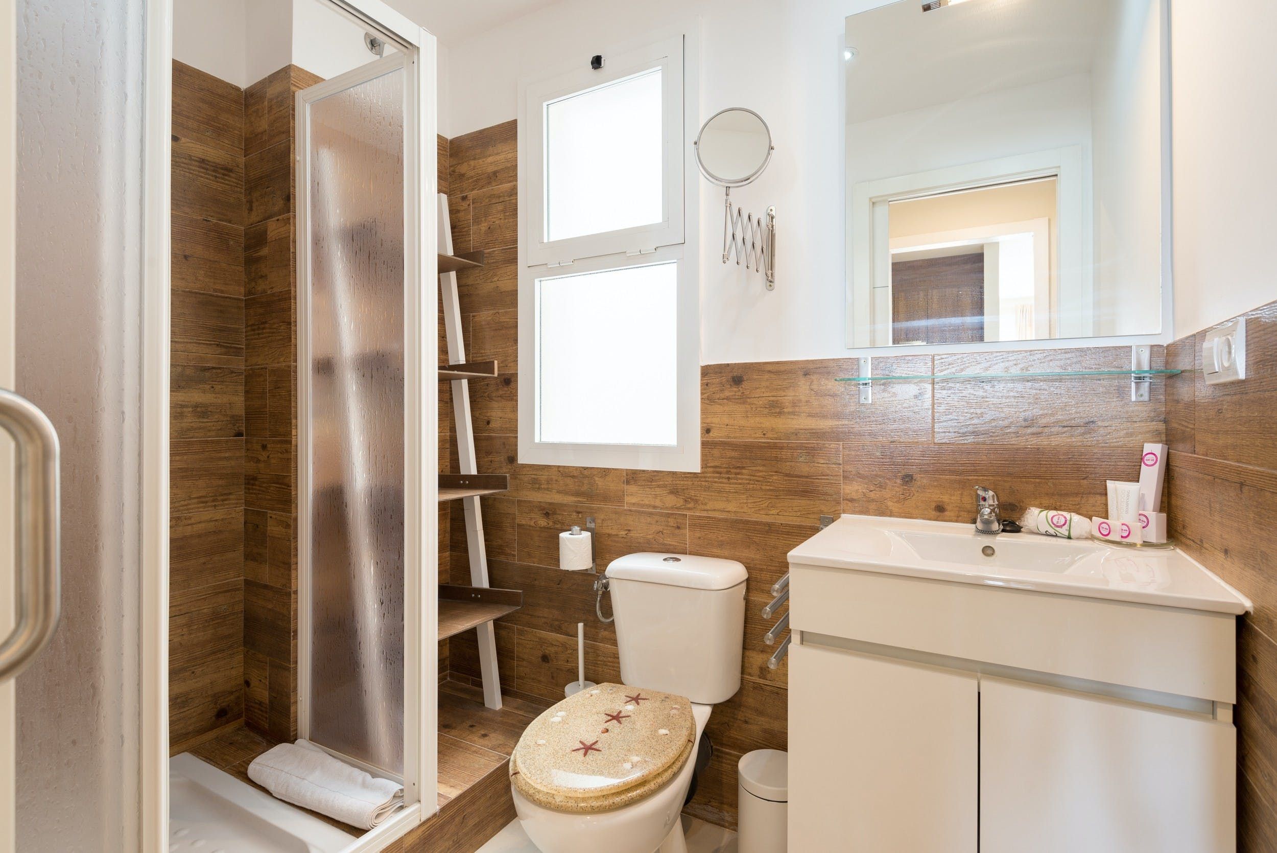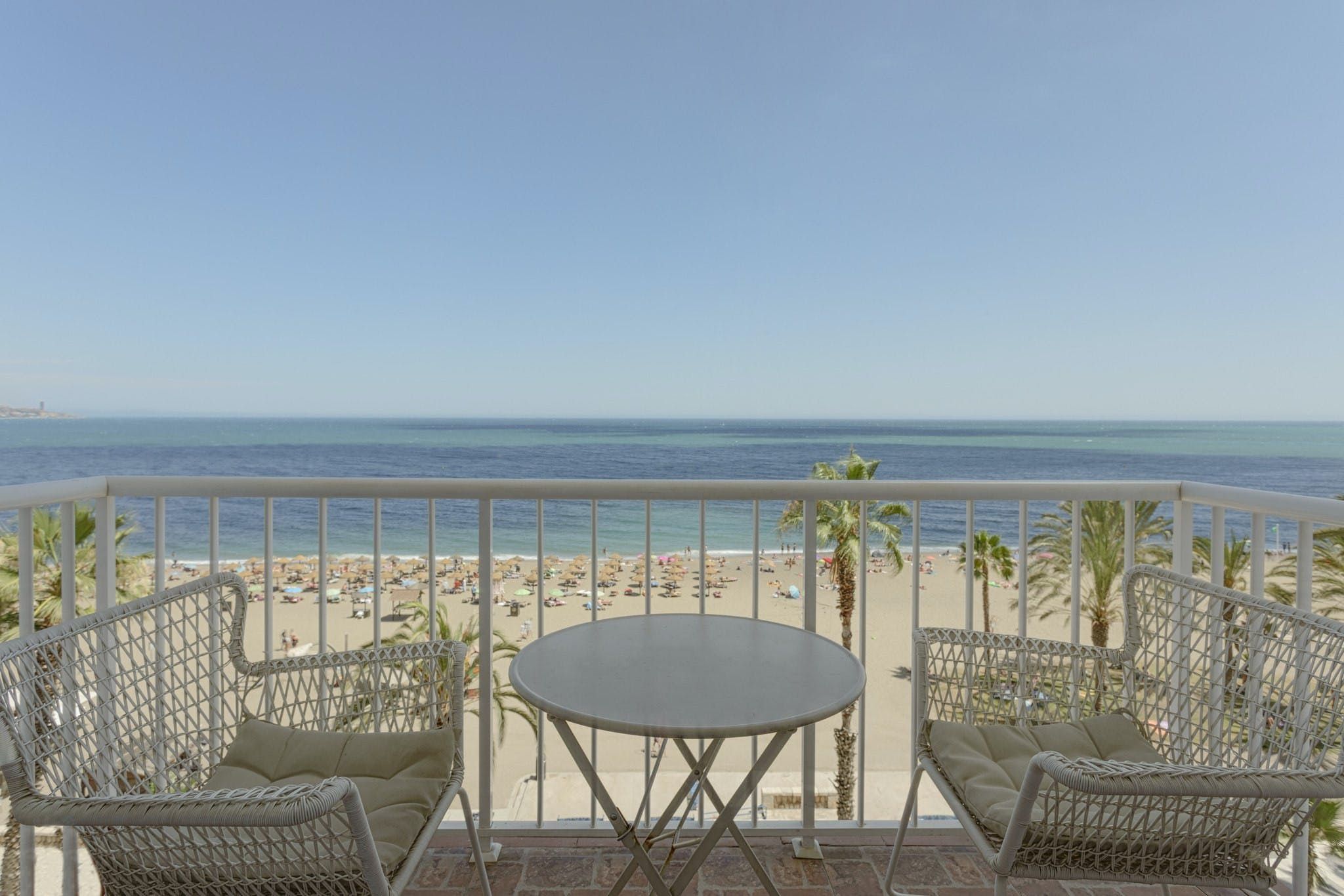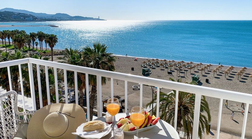 The panoramic views of the sea and Malagueta Beach from this apartment’s private balcony are wonderful. You can enjoy the vistas from the sofa in the living room too (at full capacity two guests will be sleeping on a sofa bed here). If you’re planning to cook at home, then we’d say the kitchen is a bit on the small side, as it houses the dining table too, but with all the many restaurants and beach chiringuitos nearby, will you want to eat in much? Best of all, Playa de la Malagueta is just 20 metres away and the city centre with all of its attractions is a fifteen-minute walk.
