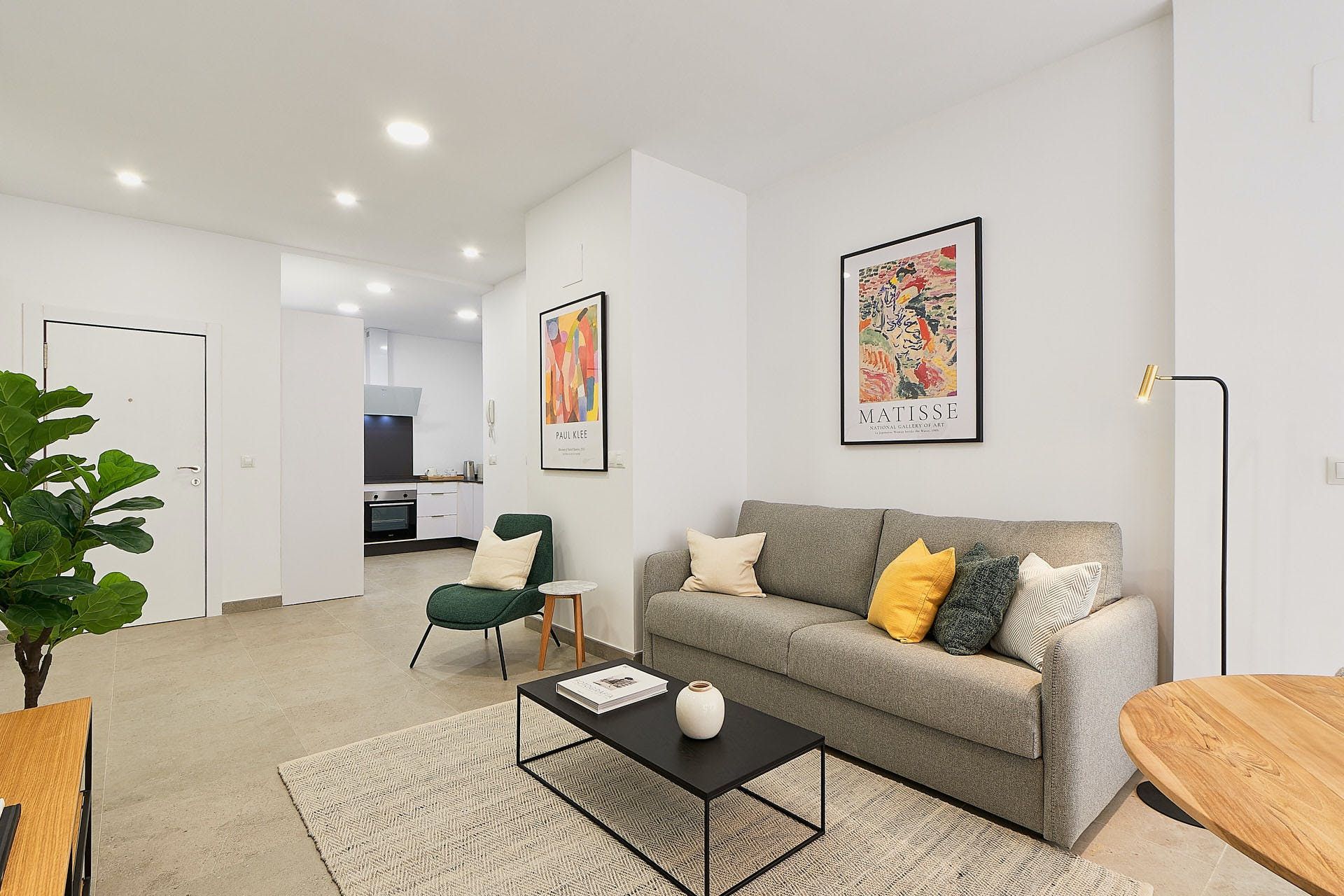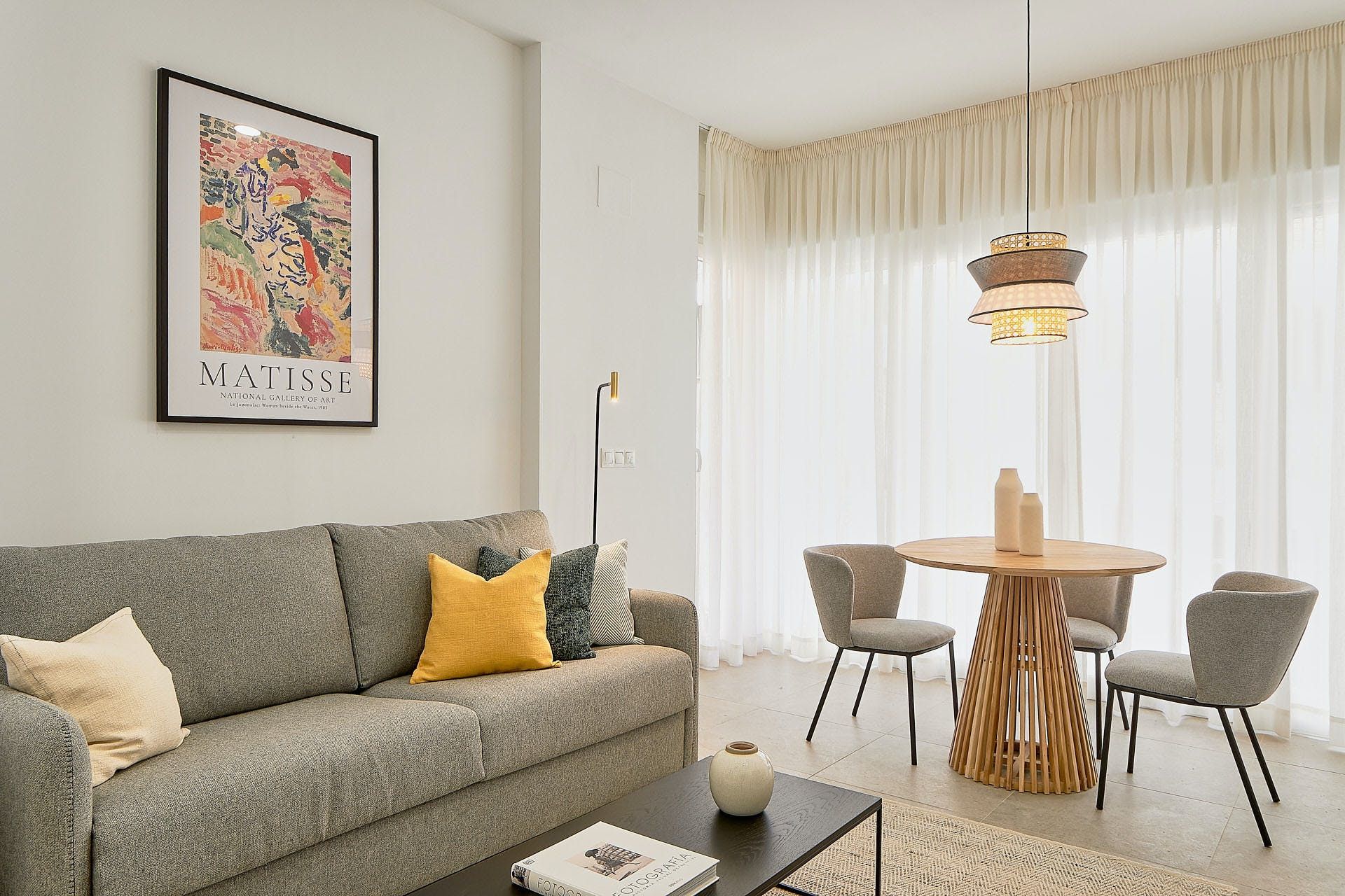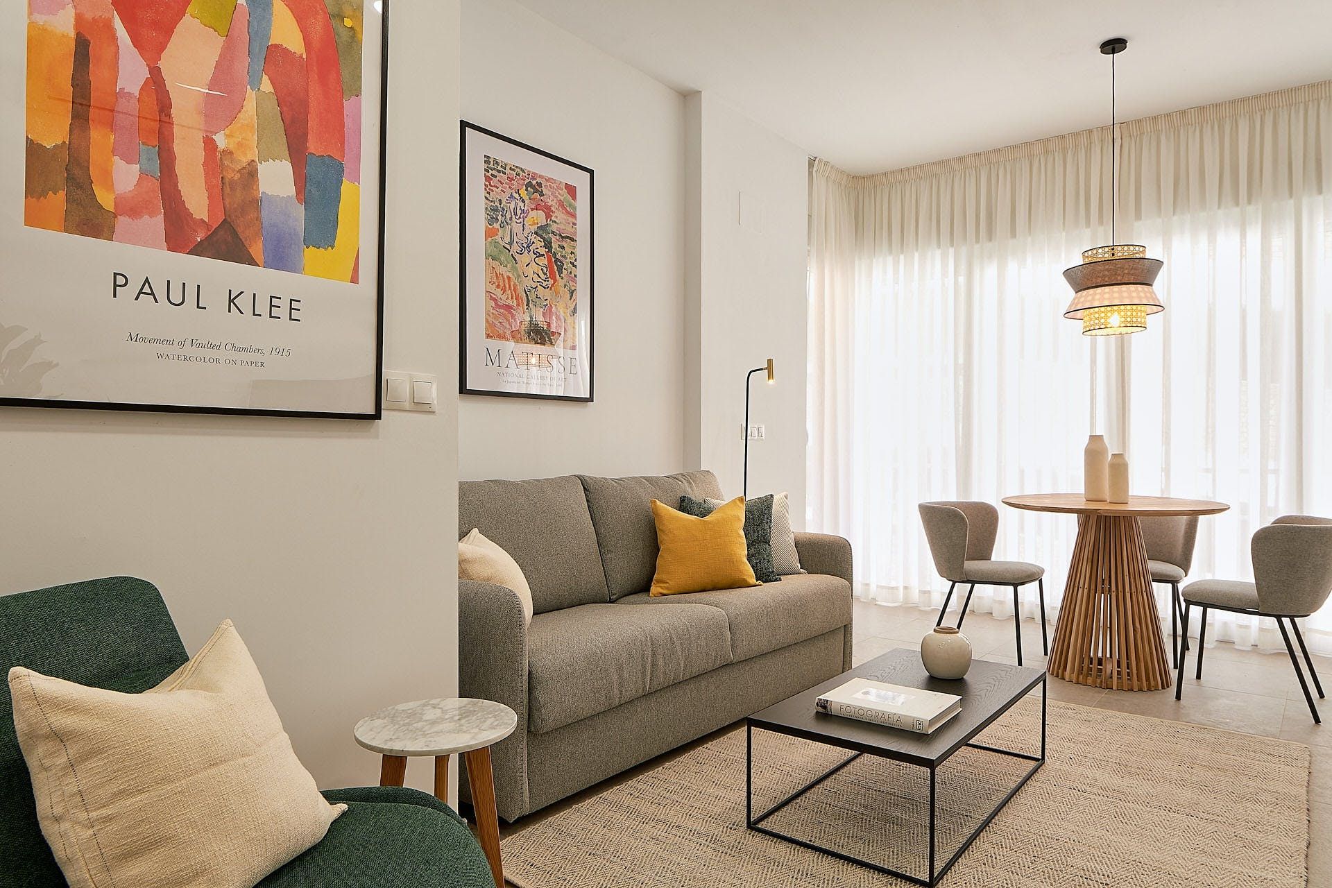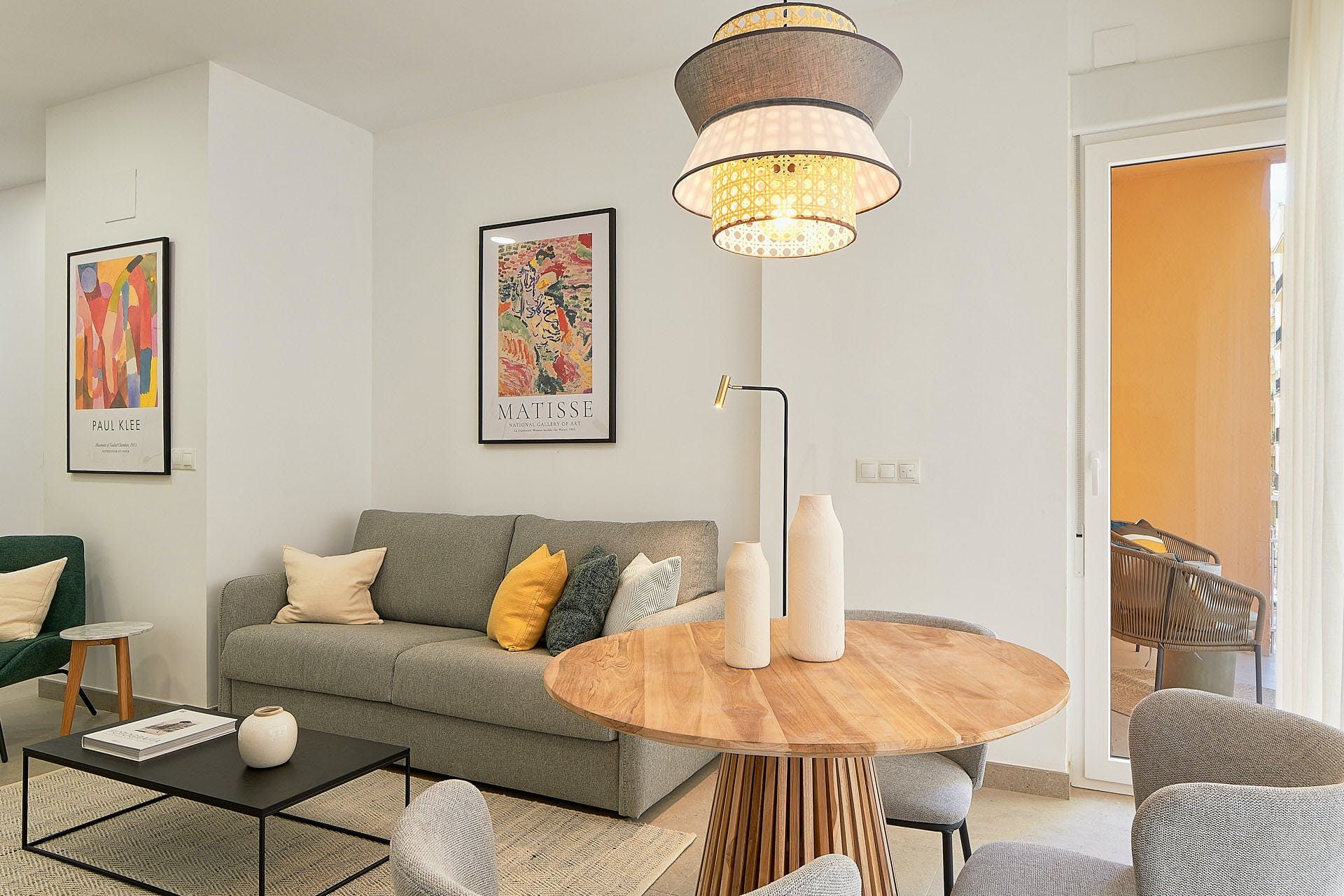 This apartment in Málaga's art district is a comfortable place to regroup after a day of sightseeing. The home sleeps up to four, although when the sofa bed’s in use, there’s not much space for socialising. You have everything you need in the fully-equipped kitchen, and the small terrace offers a place to sit and enjoy the vibrant surroundings. The heart of the city is within easy walking distance, and if you fancy giving your legs a bit more of a stretch is around twenty minutes to Malagueta Beach.