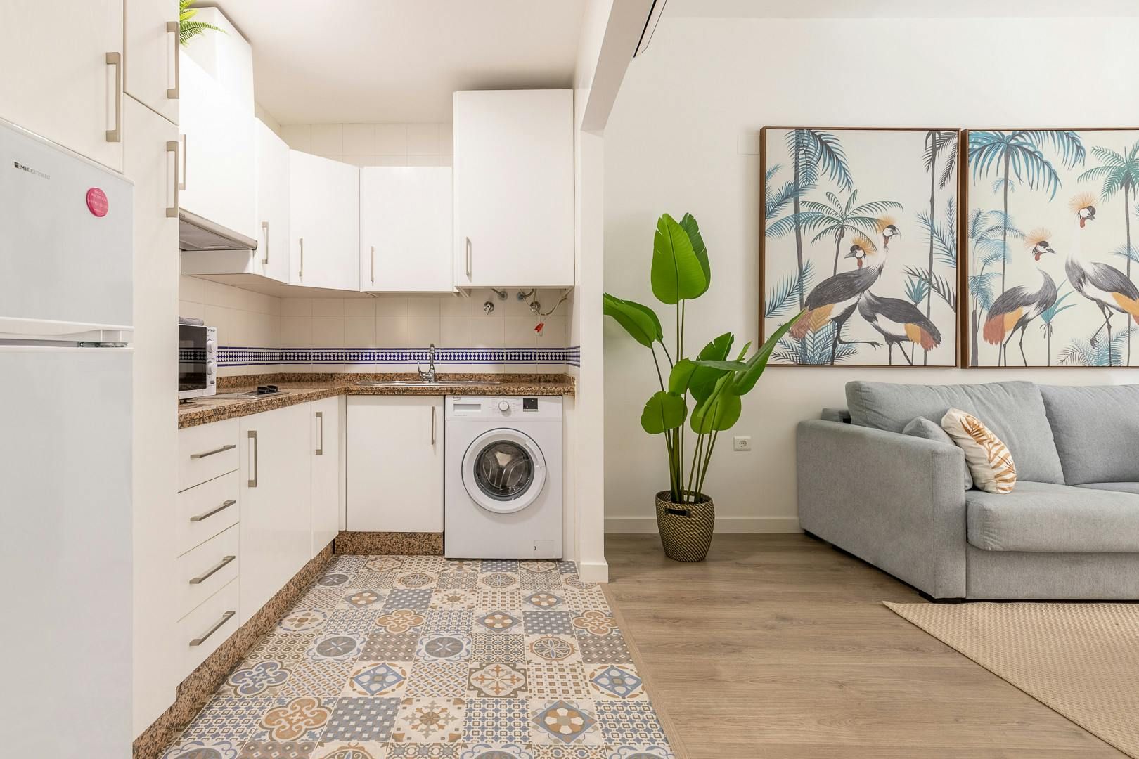 Located in the historic centre and just a few streets from Museo Carmen Thyssen, this contemporary apartment is the perfect spot for a Málaga stay. Whether you’re tucking into a quick breakfast, hitting send on that last email from the dining table, or sharing a glass of sangria in the open-plan living area, this apartment has been designed to bring a sense of ease to your city stay. There’s space for four here, though keep in mind two will be sleeping on the living room sofa bed. Outside, you’ll find Calle Larios, the Picasso Museum and the Cathedral, while Playa la Malagueta is just a short walk away.