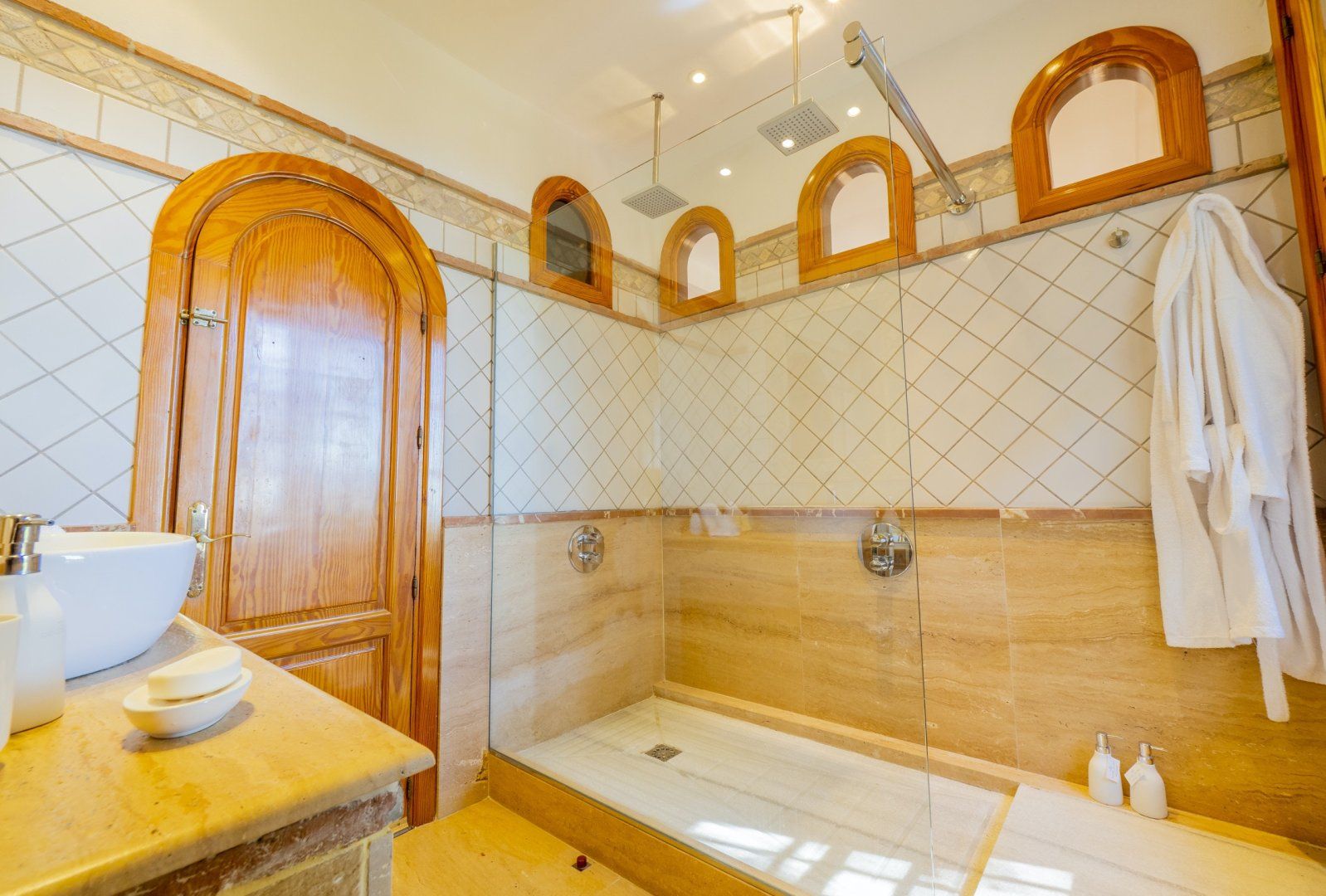 Step inside, and it's an unadulterated opulence that greets you. Marble floors, wood panelling, feature fireplaces, and luxurious soft furnishings combine to create a space that is at once supremely elegant, while also feeling welcoming and comfortable. An almost English country manor-feeling library brims with old-world charm, whilst deftly placed Moorish influences in the living areas add a sense of occasion, as well as a certain sumptuousness that really has to be seen to be fully appreciated.