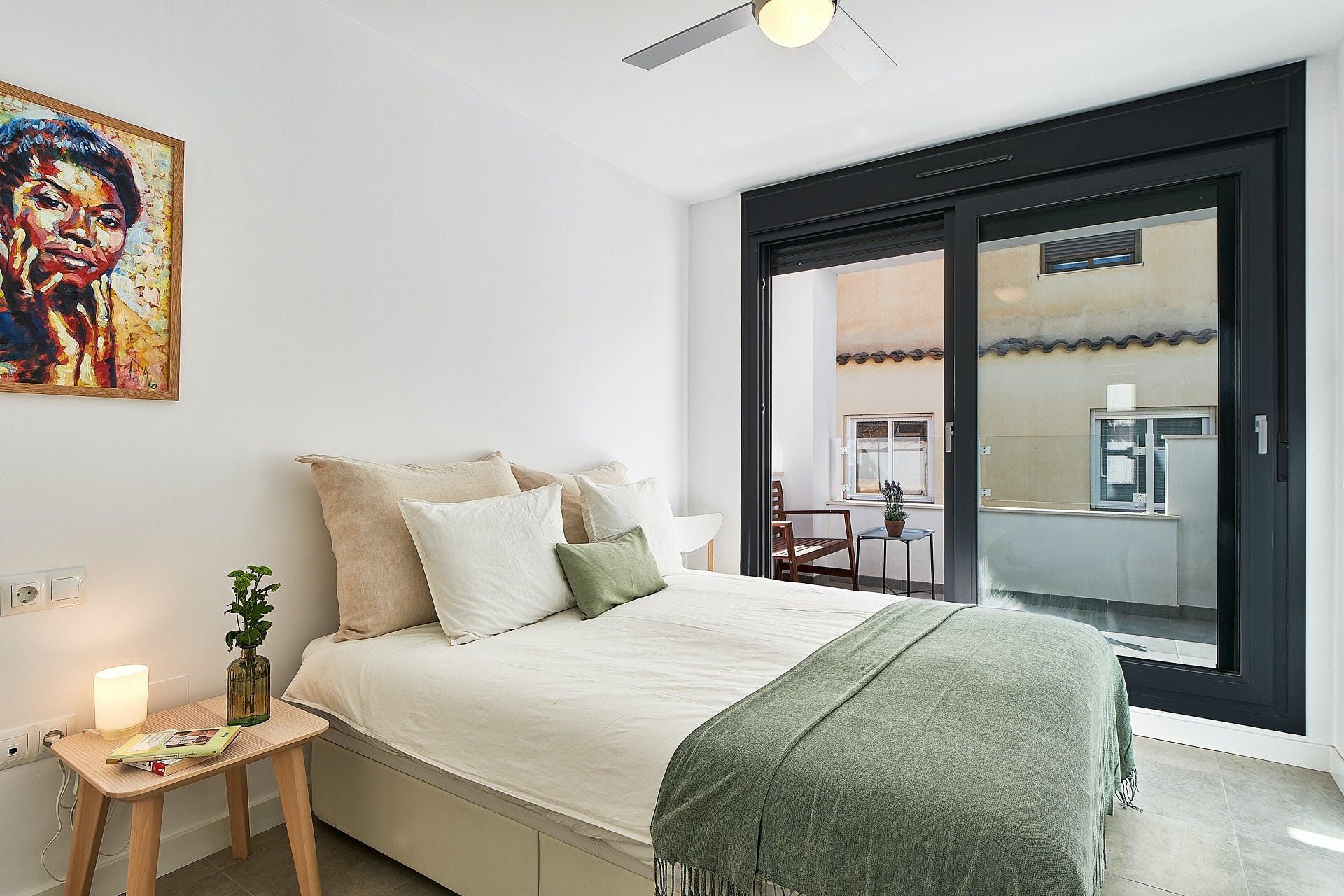 Situated in the charming fisherman's district of Pedregalejo, just 100 metres away from the beach – this apartment has a great address. Or take a ride into central Malaga and browse its shops and museums. You’ll find a range of lovely chiringuitos, cafes and restaurants on your doorstep, too, or enjoy alfresco meals on this apartment’s rooftop terrace with its dining table and barbecue. We love that the main bedroom opens out onto a balcony as well. This place is perfect for those looking for a mix of traditional Andalusian and urban living.