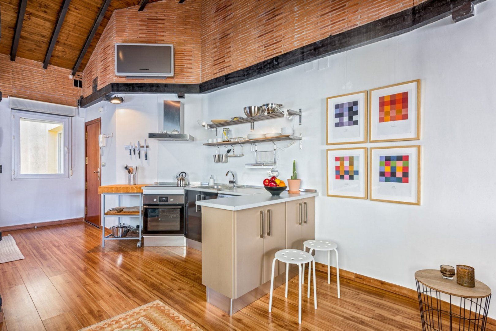 This apartment is located in sunny Malaga, right in the heart of the bustling city. Wooden features adorn the walls, making this home feel warm and cosy as you go about your daily leisurely activities. Enjoy your morning coffee on the terrace, overlooking the surrounding architecture, or head inside to sit at the handy breakfast bar as the smell of a homecooked breakfast wafts through the house.
