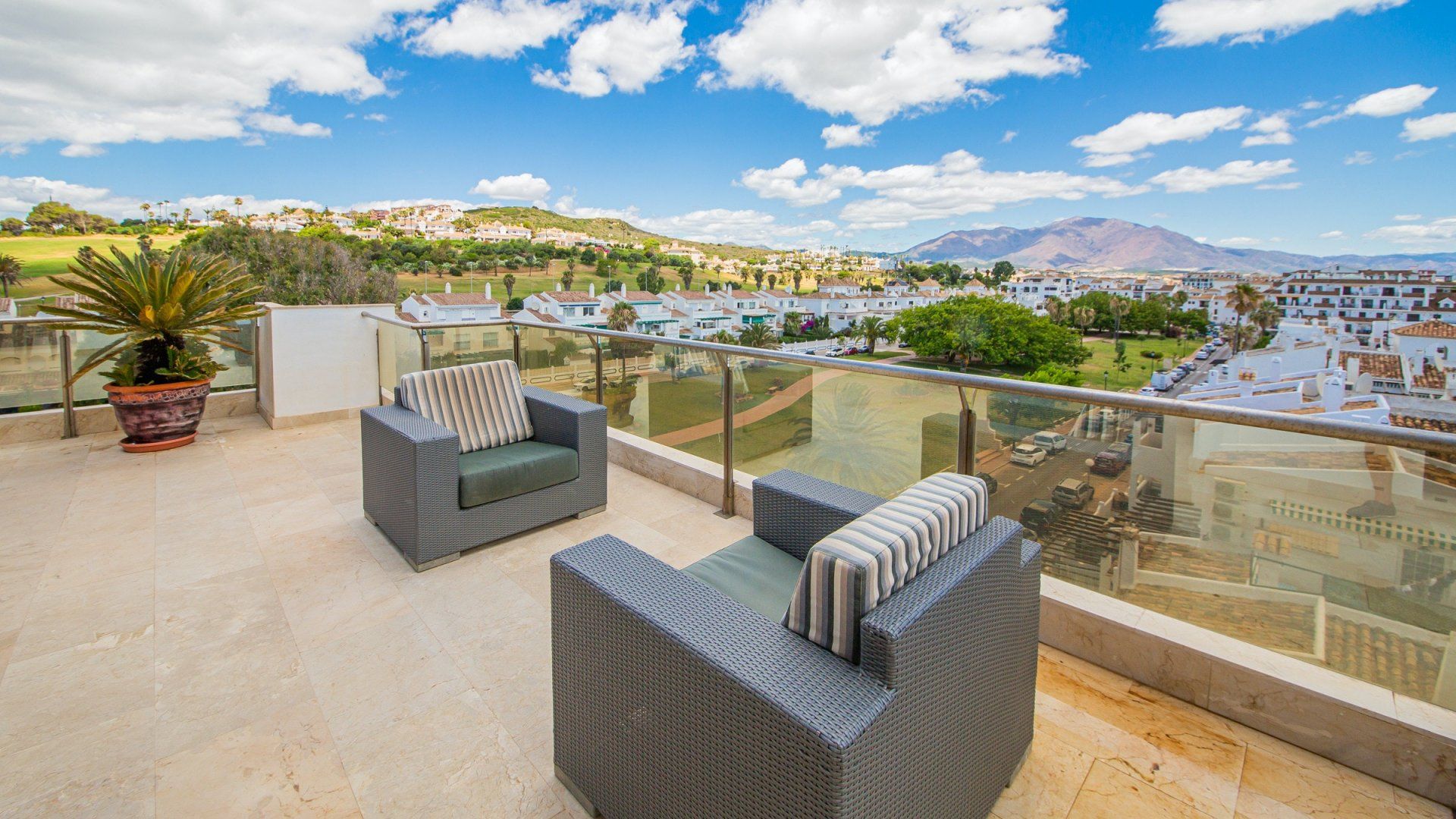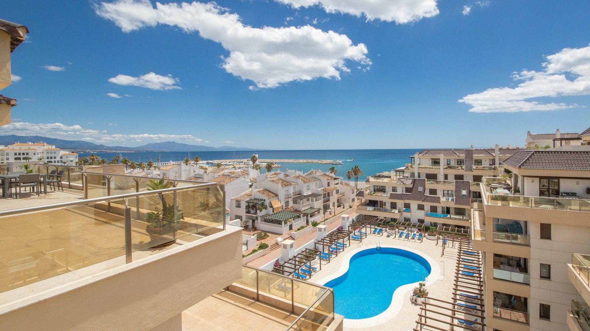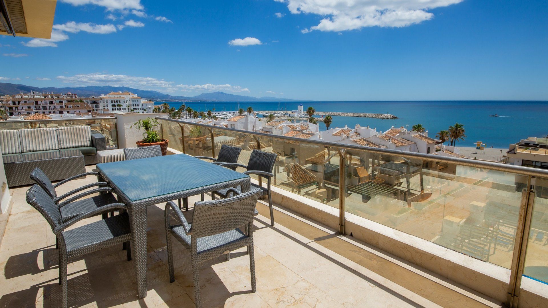 Coastal getaways don’t get much more idyllic than this. Positioned along the Duquesa Marina and moments from the sands of Costa del Sol, this penthouse apartment is a dreamy place to stay. It’s been designed carefully to ensure that its impressive views over the Mediterranean can be admired from every angle. Whether you’re waking up from restful slumbers with the sea breeze washing over you, sipping your morning coffee on the balcony overlooking the rising sun, or enjoying a tapas dinner alfresco at the golden hour, you’ll be drawn to the panoramic views at every chance.